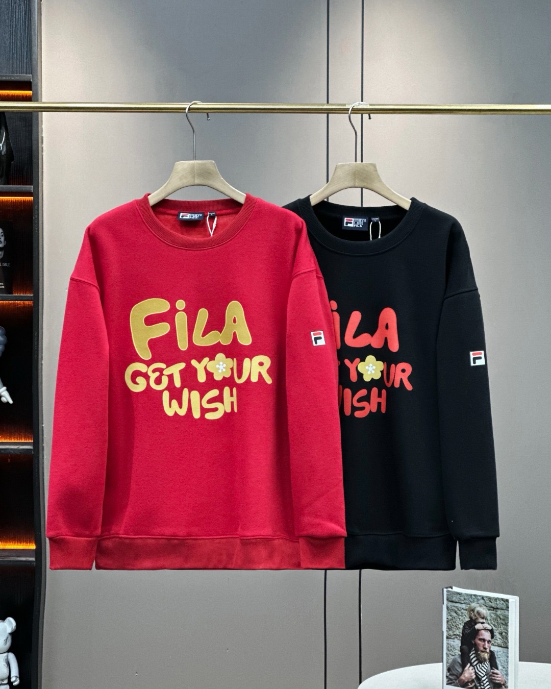 FILA斐乐黑金新年主题银狐绒圆领卫衣休闲情侣款 顶级版本