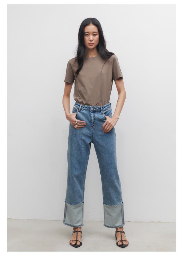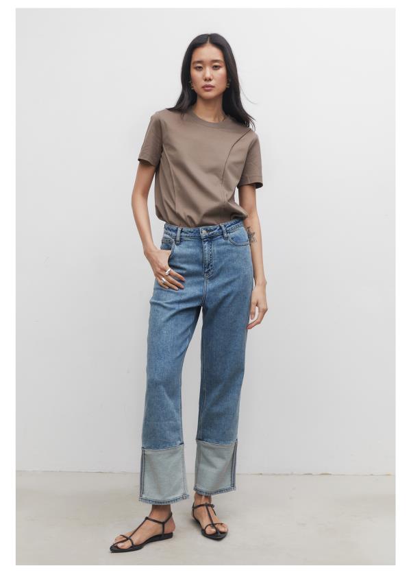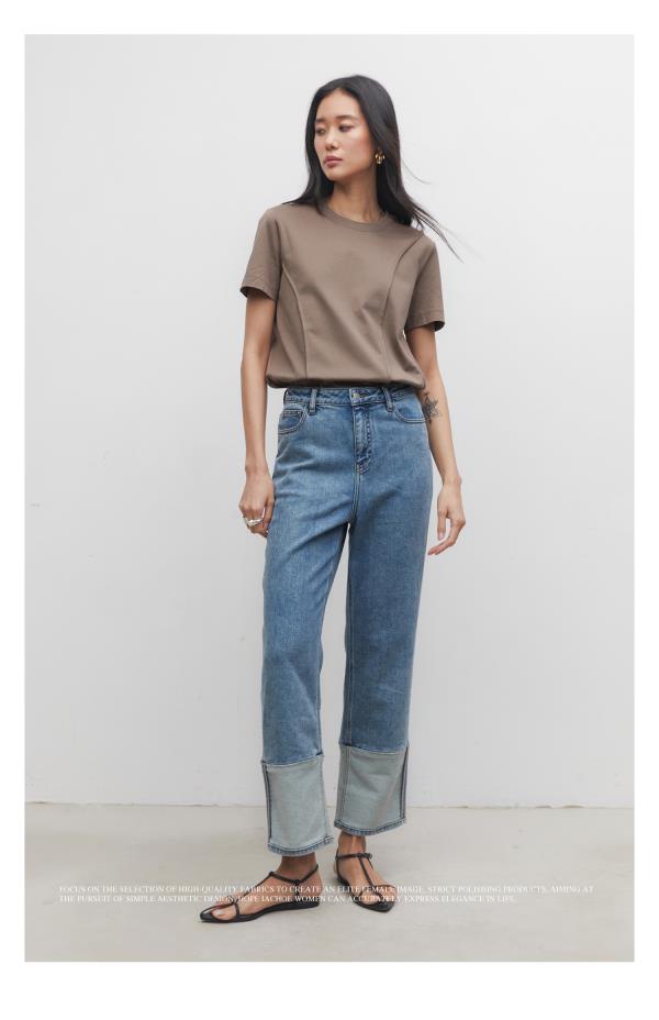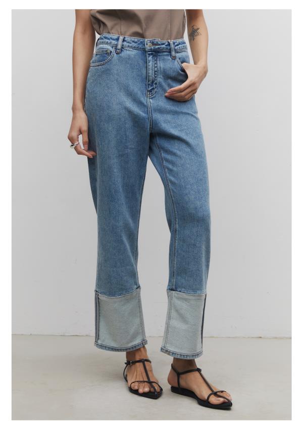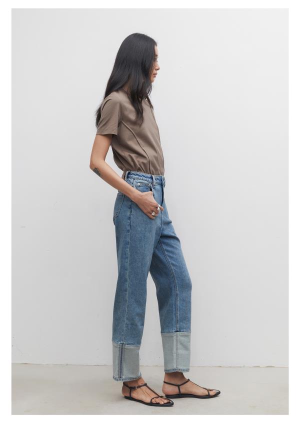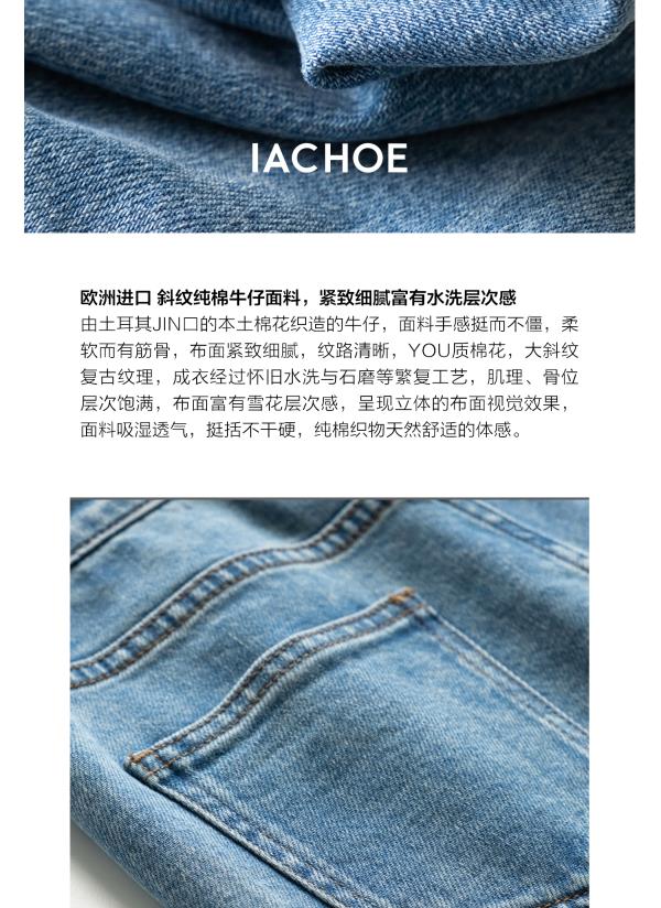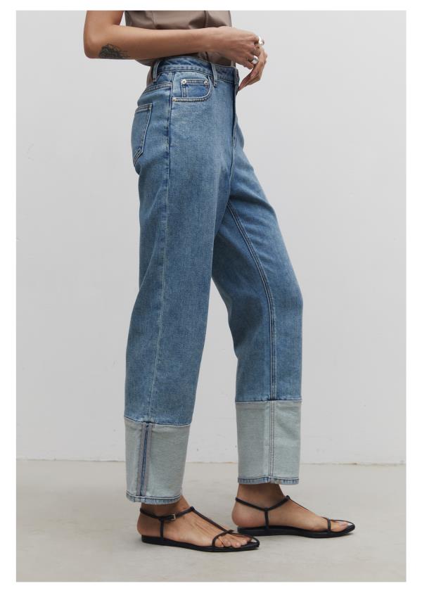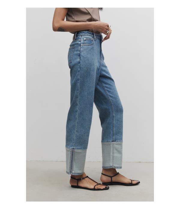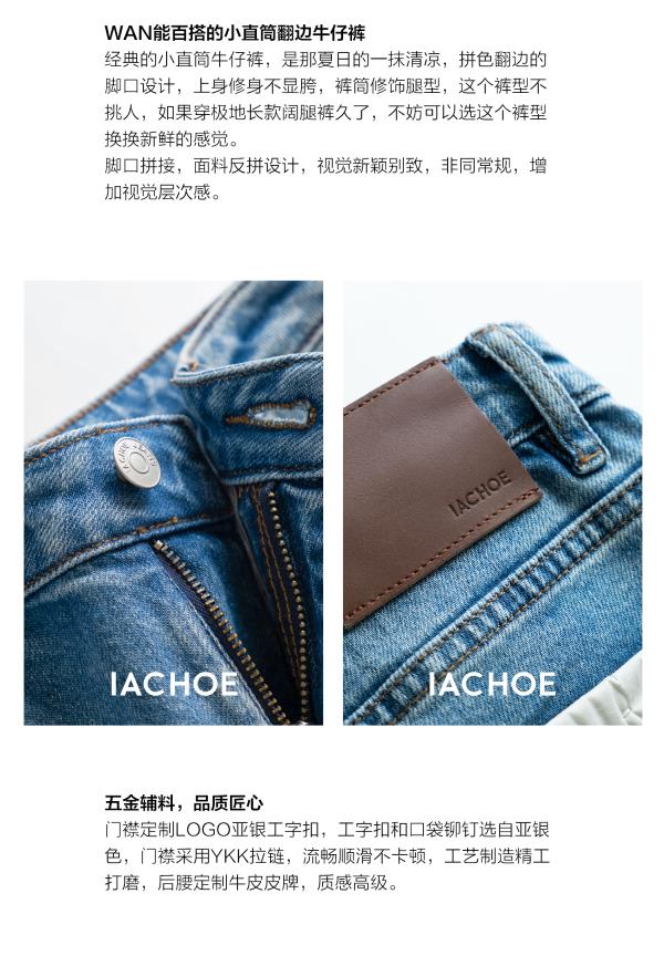 棉仓3531519006-IACHOE【夏日牛仔】九分翻边牛仔裤直筒牛仔