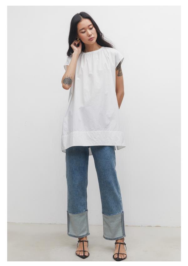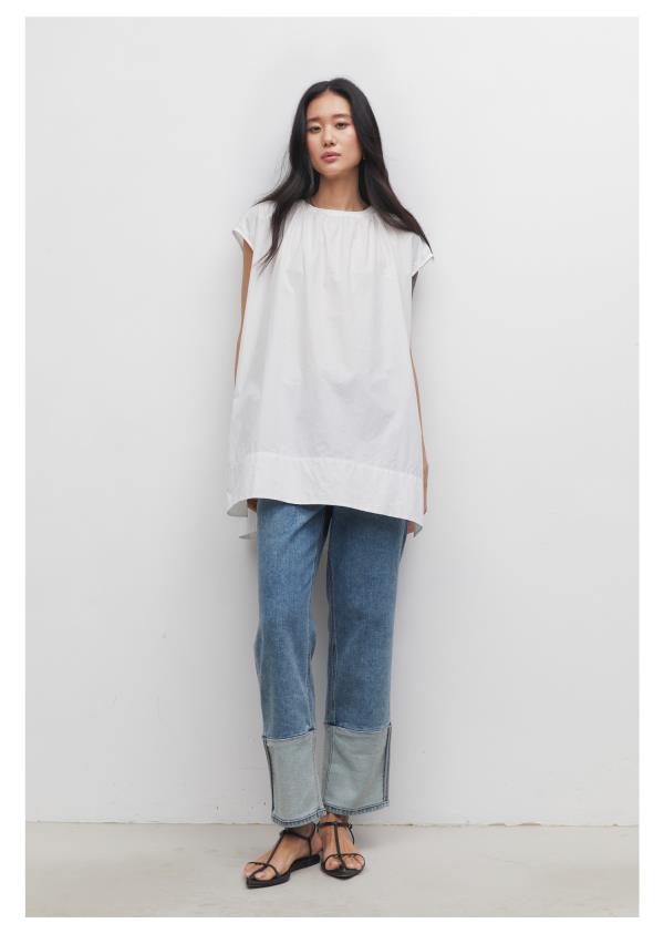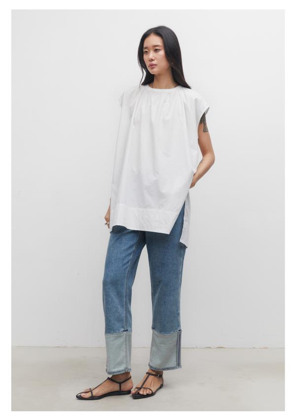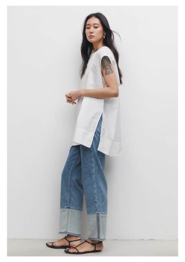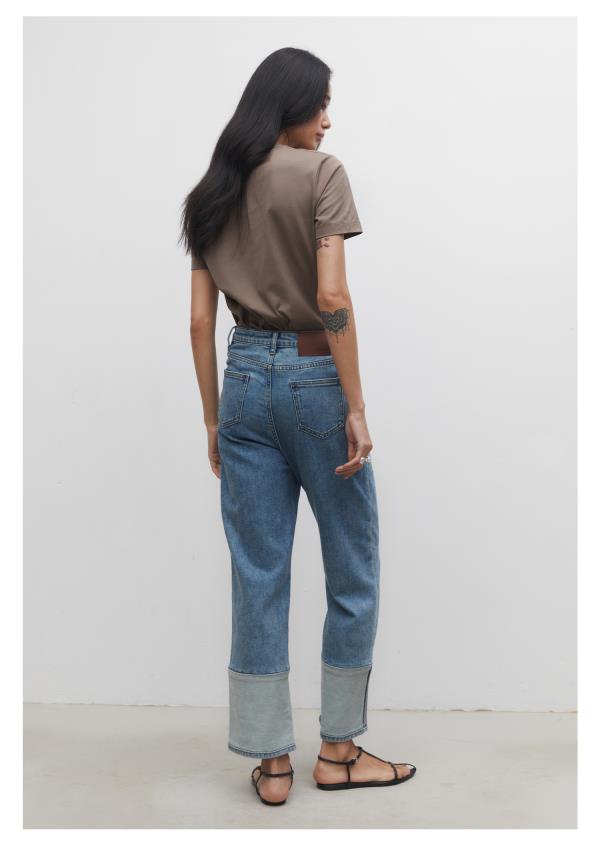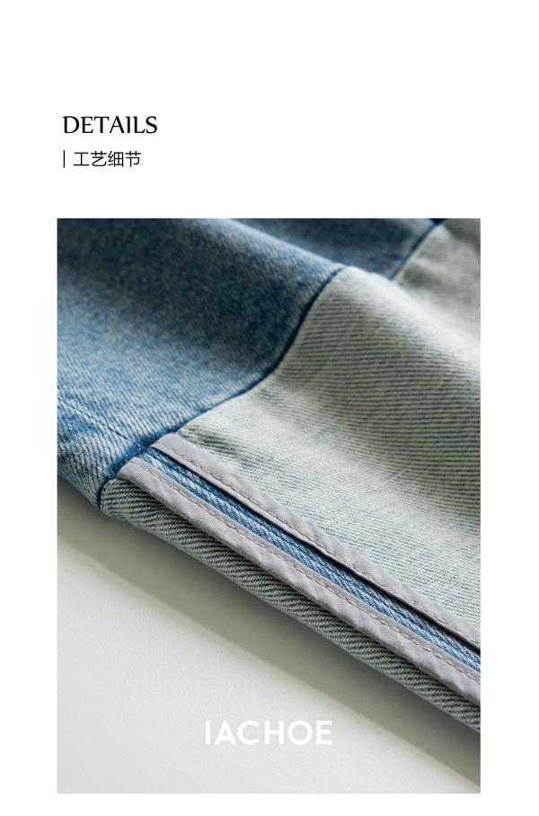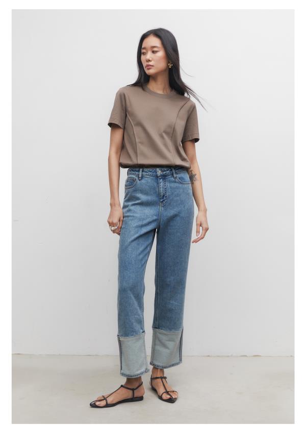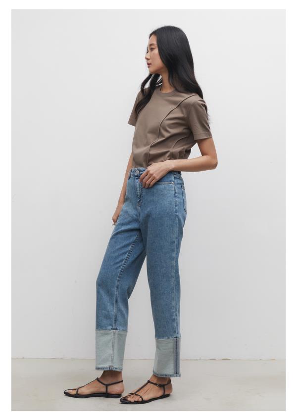 棉仓3531519006-IACHOE【夏日牛仔】九分翻边牛仔裤直筒牛仔