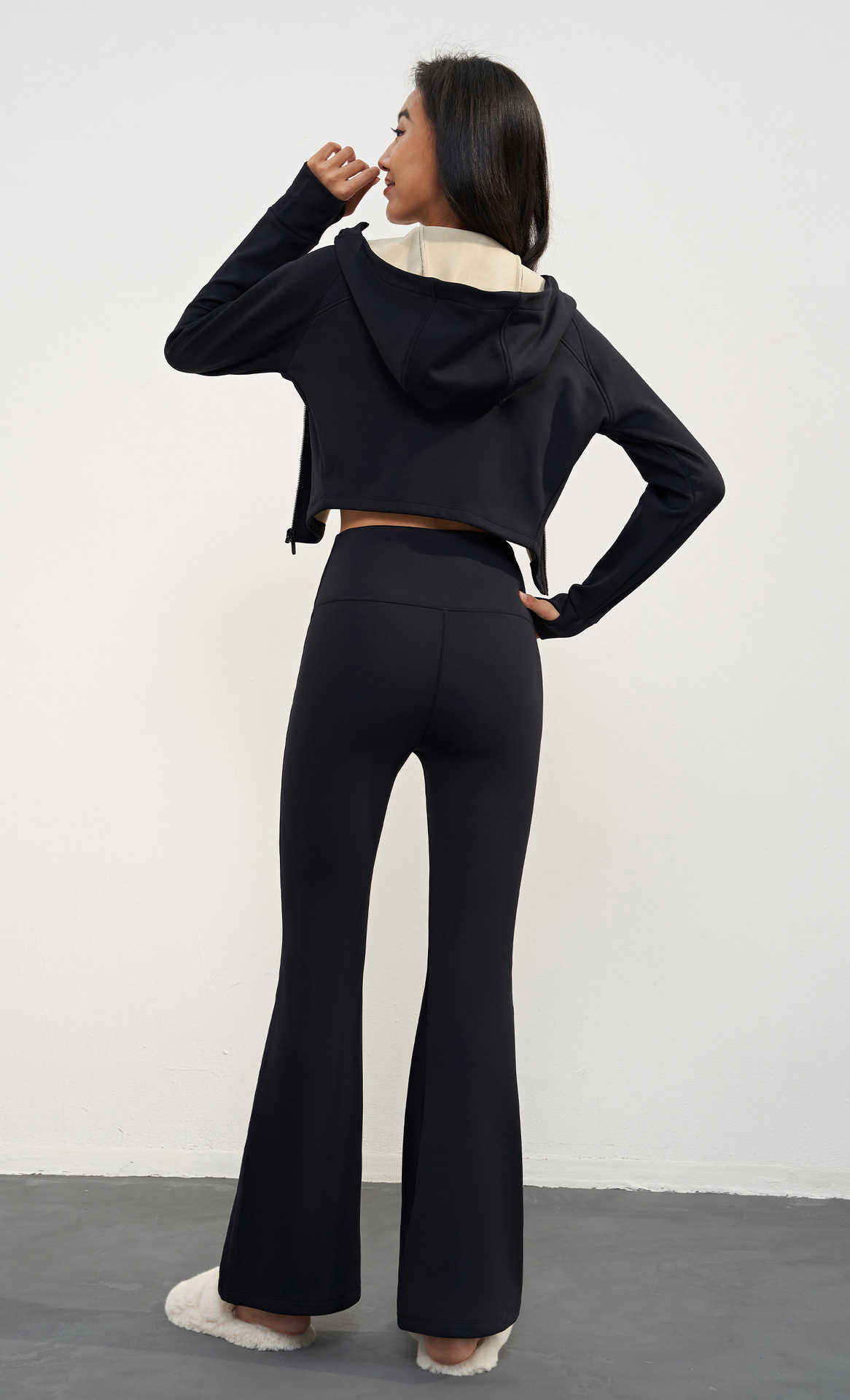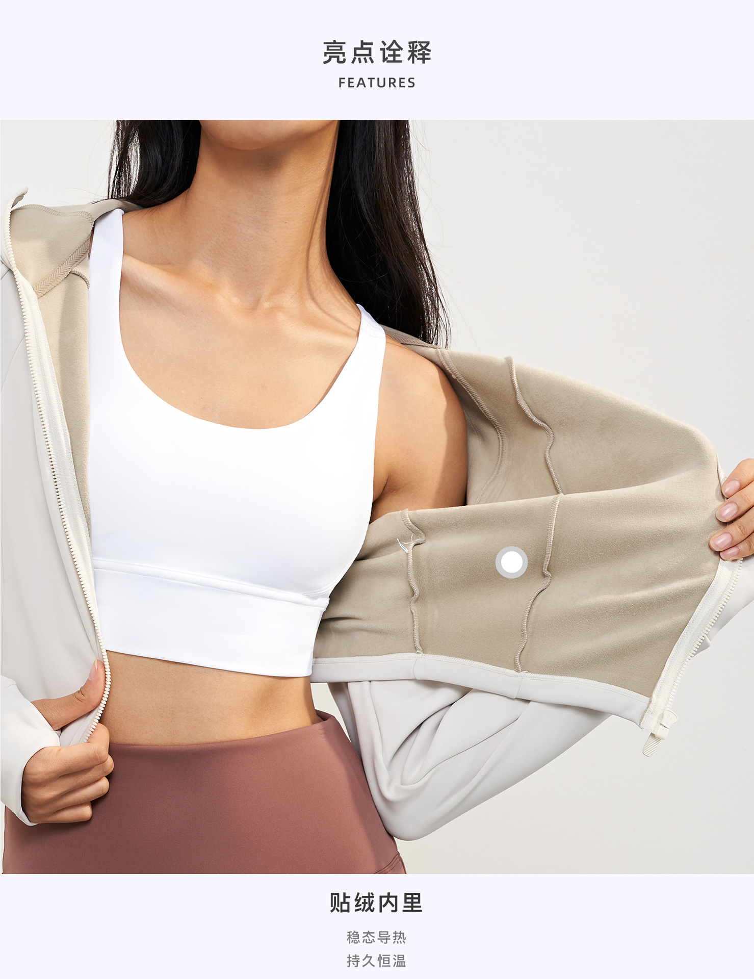 LNU贴绒连帽立领运动外套秋冬短款修身显瘦上衣女运动瑜伽健身服AD 00 WT1606