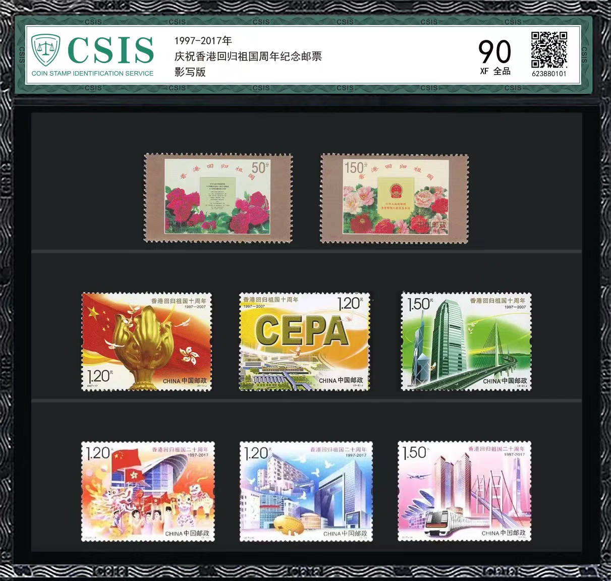 套装包含香港回归邮票、香港回归10周年邮票、香港回归20周年邮票各一套。这三套邮票发行跨度20年,今天可以一次集齐。
