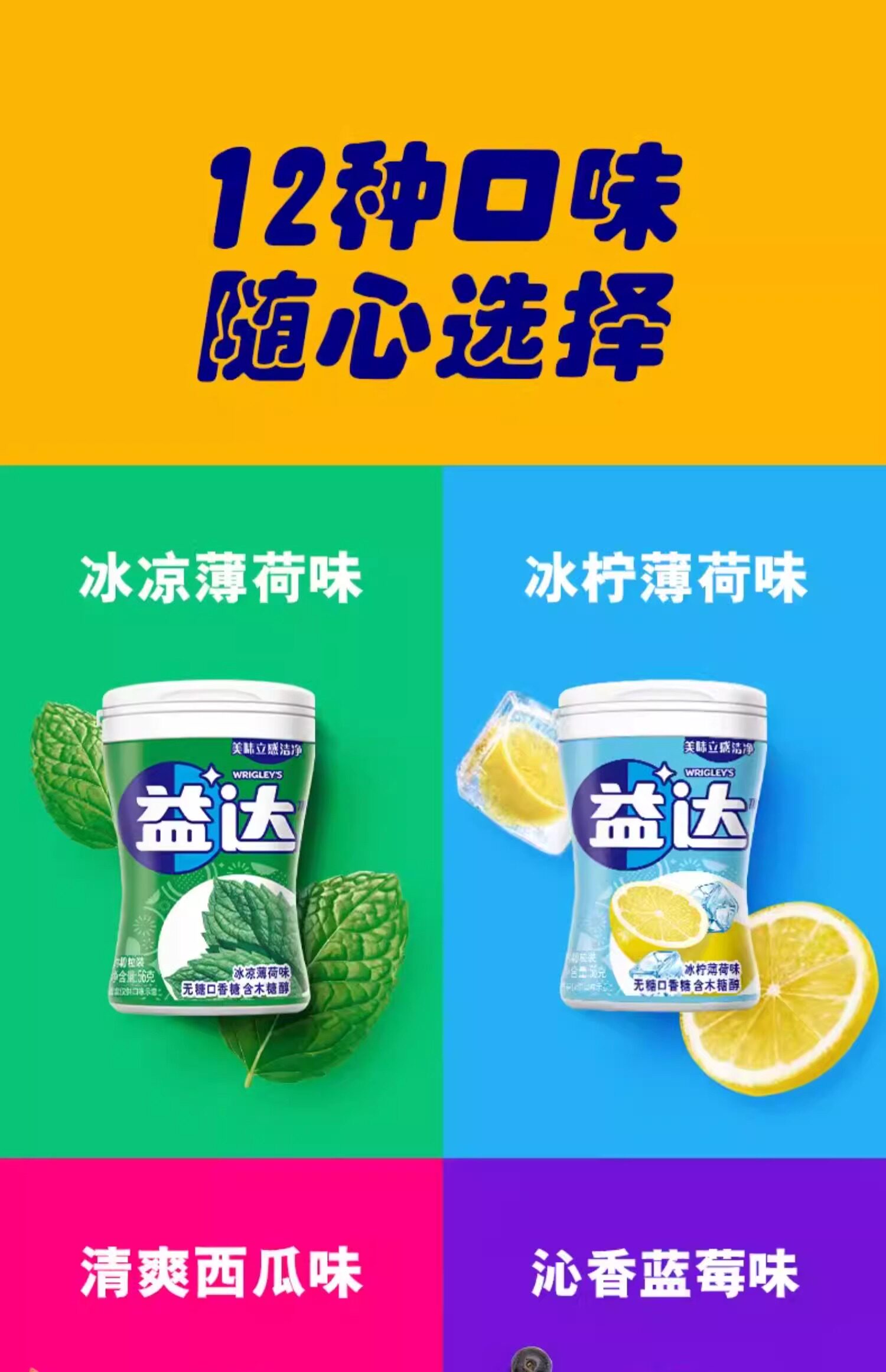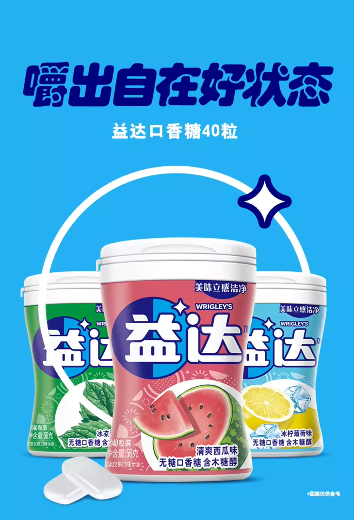 益达无糖口香糖木糖醇沁香蓝莓味56克/罐