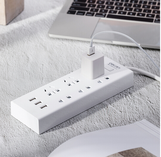 得力T18283延长线插座3+3组合孔+3USB-2m