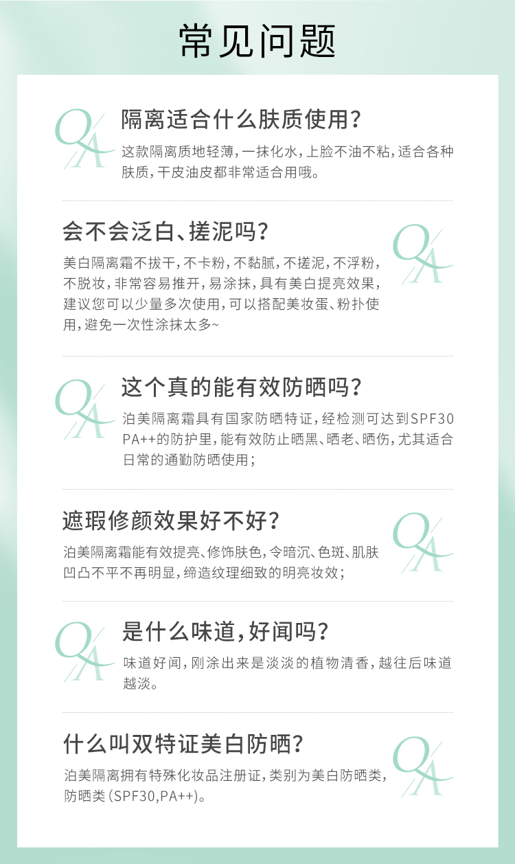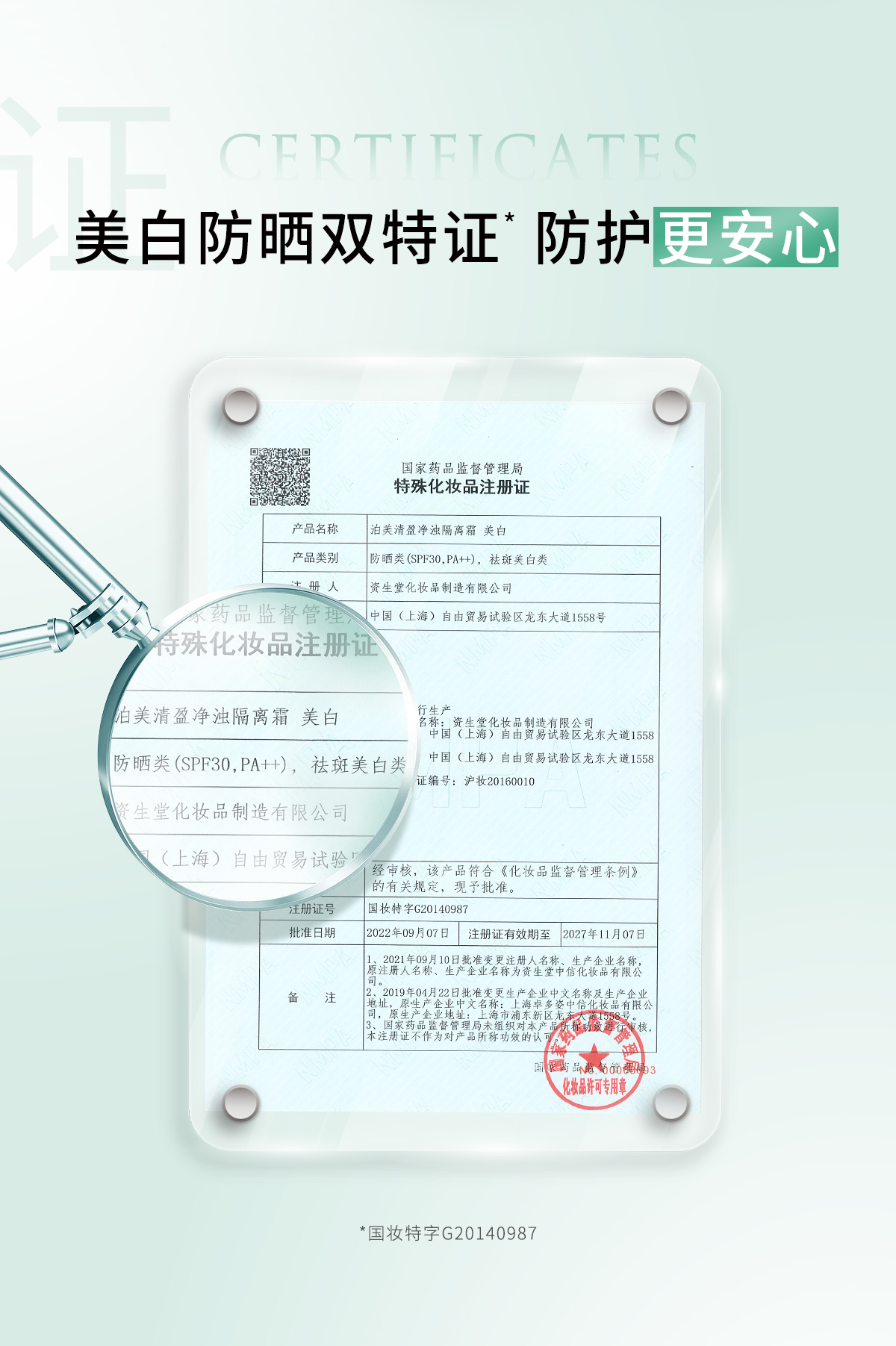 【官方授权】泊美清盈净浊隔离霜美白型40g