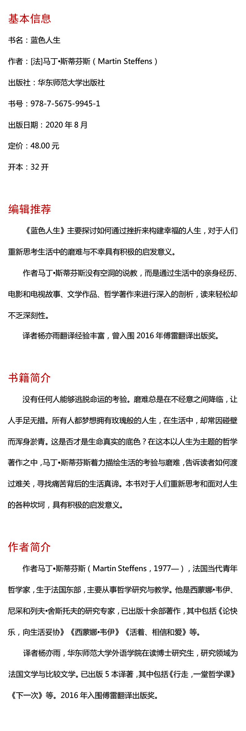 蓝色人生 轻与重文丛 马丁斯蒂芬斯著 人生哲学