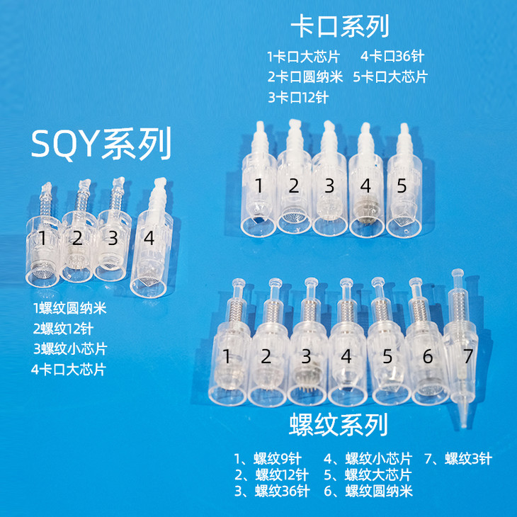 【▲ 微针全系列】螺纹卡口SQY圆纳米大芯片小芯片微针头适配