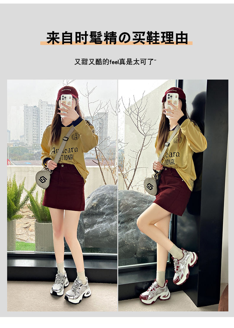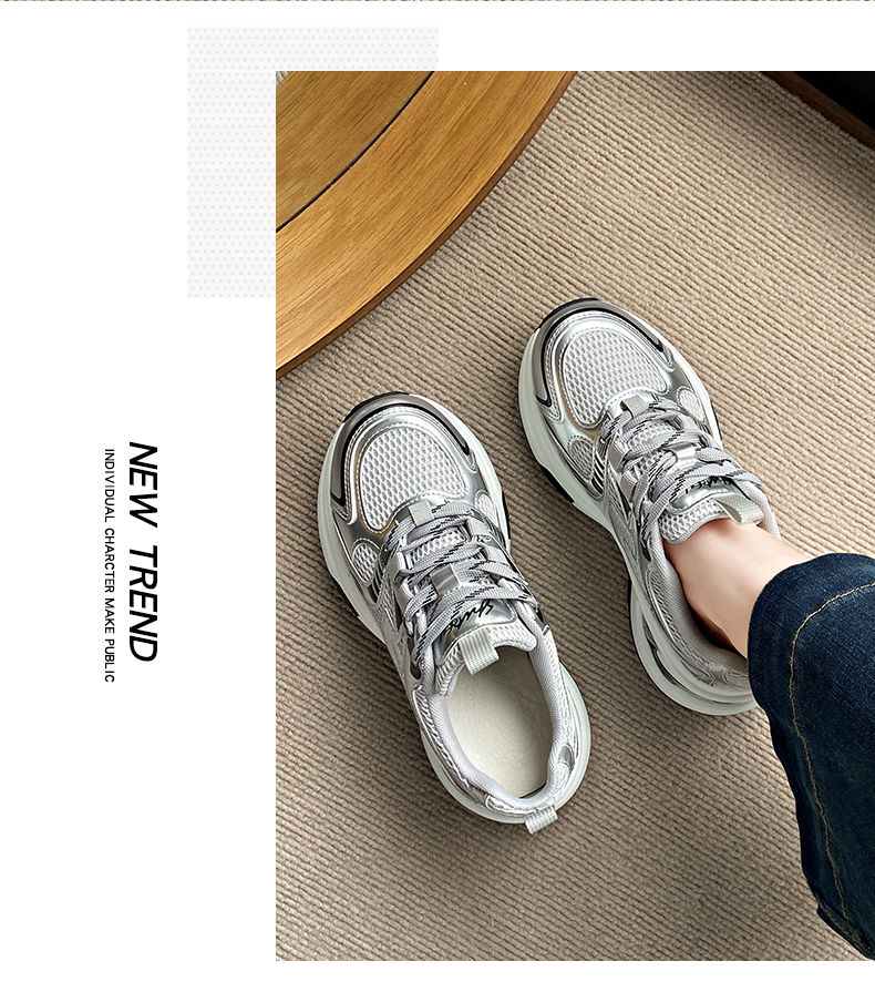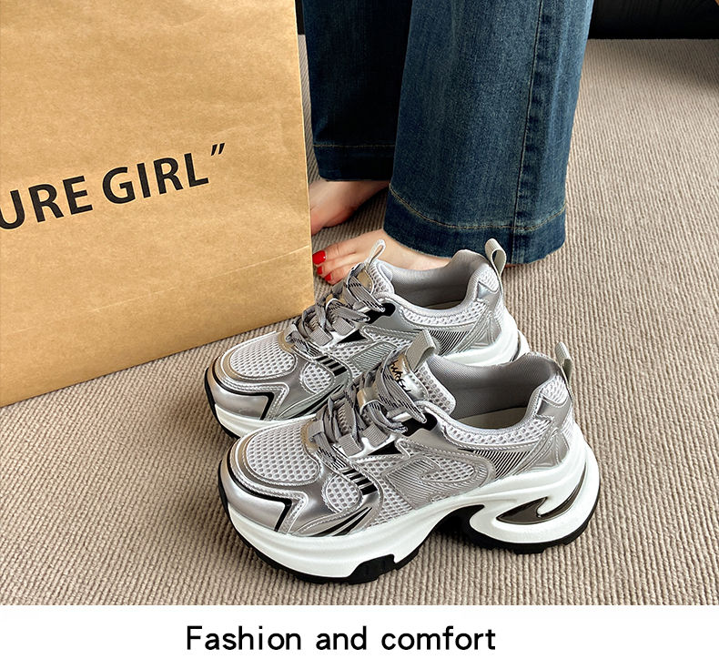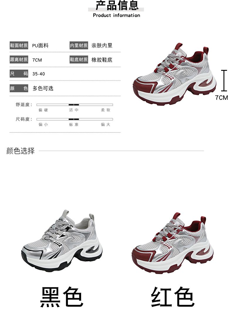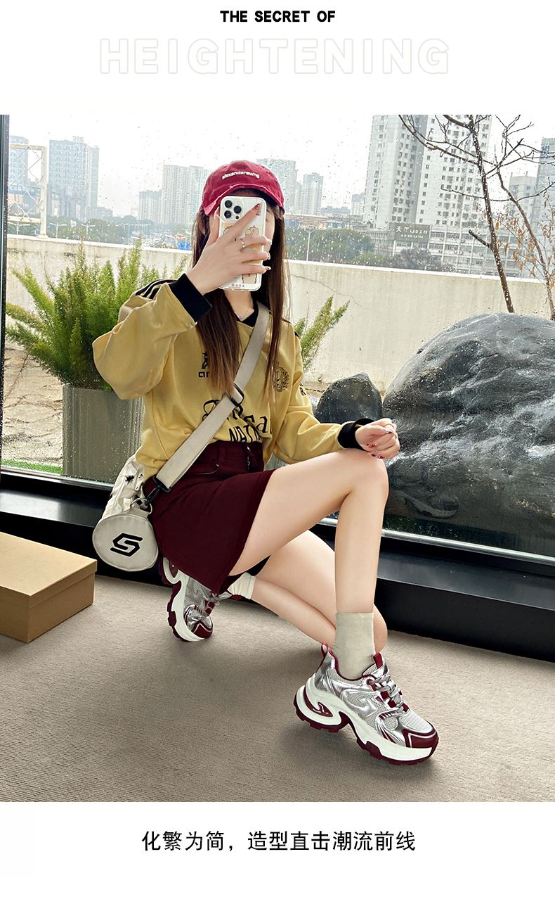 【鞋柜 达F妮旗下网面内增高老爹鞋】透气科技 双脚自由呼吸 创新透气网面材质 复古拼色设计