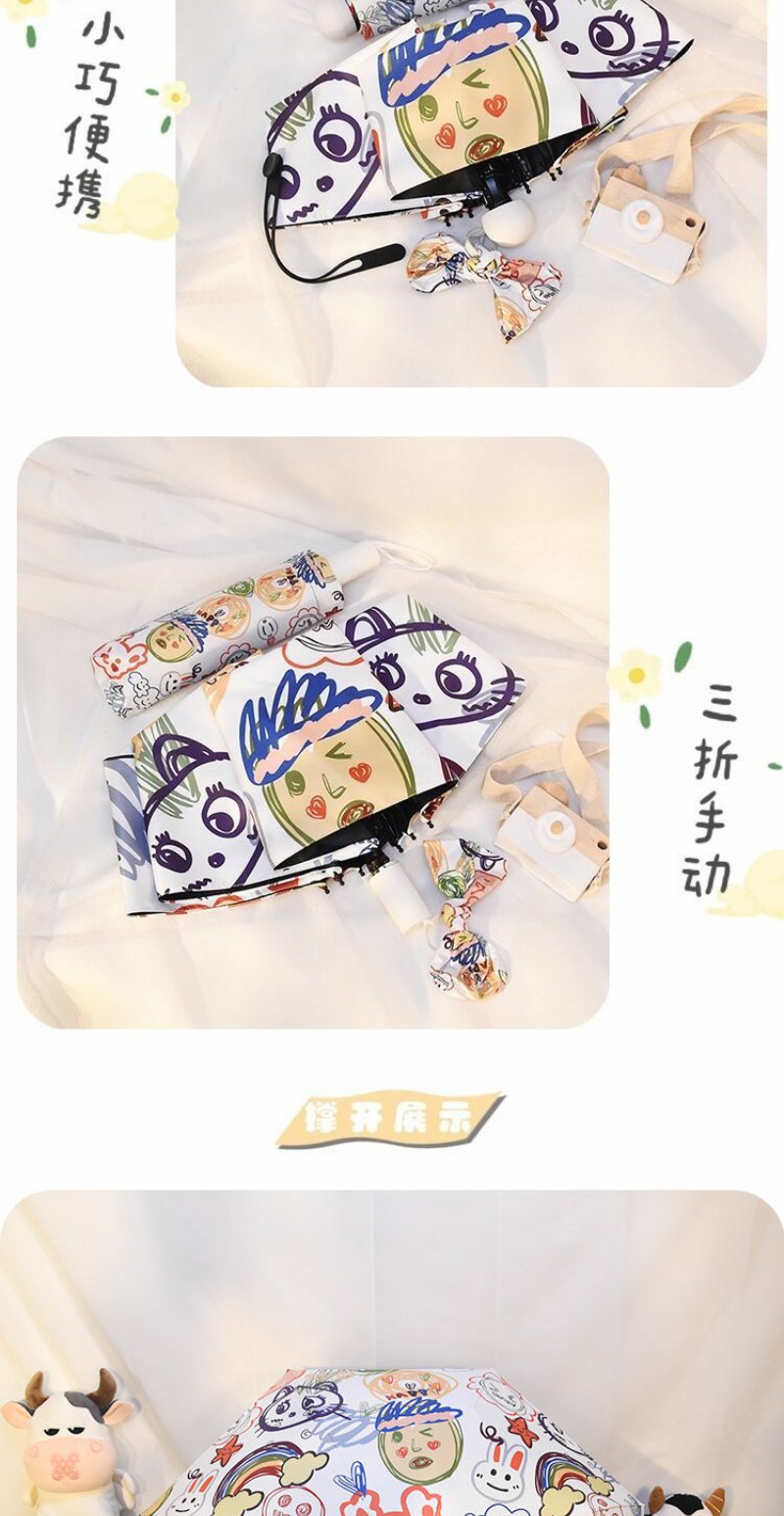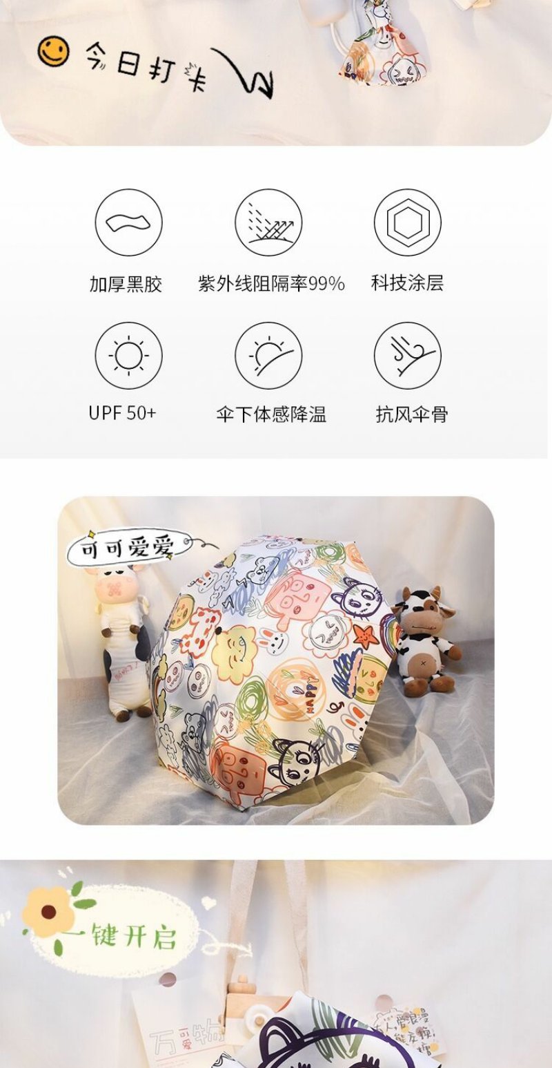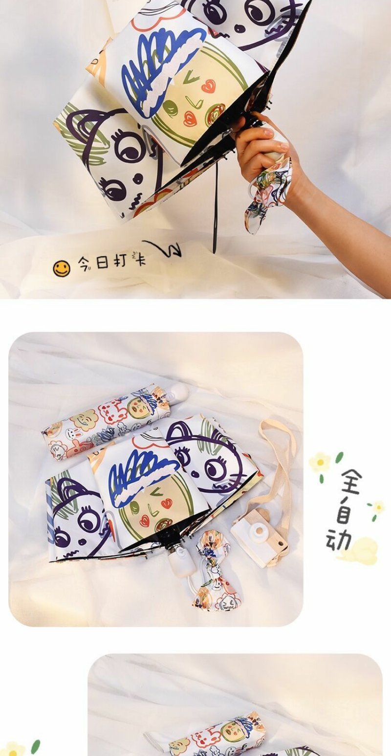 ins软萌治愈系自动雨伞晴雨两用女创意涂鸦遮阳伞防紫外线太阳伞