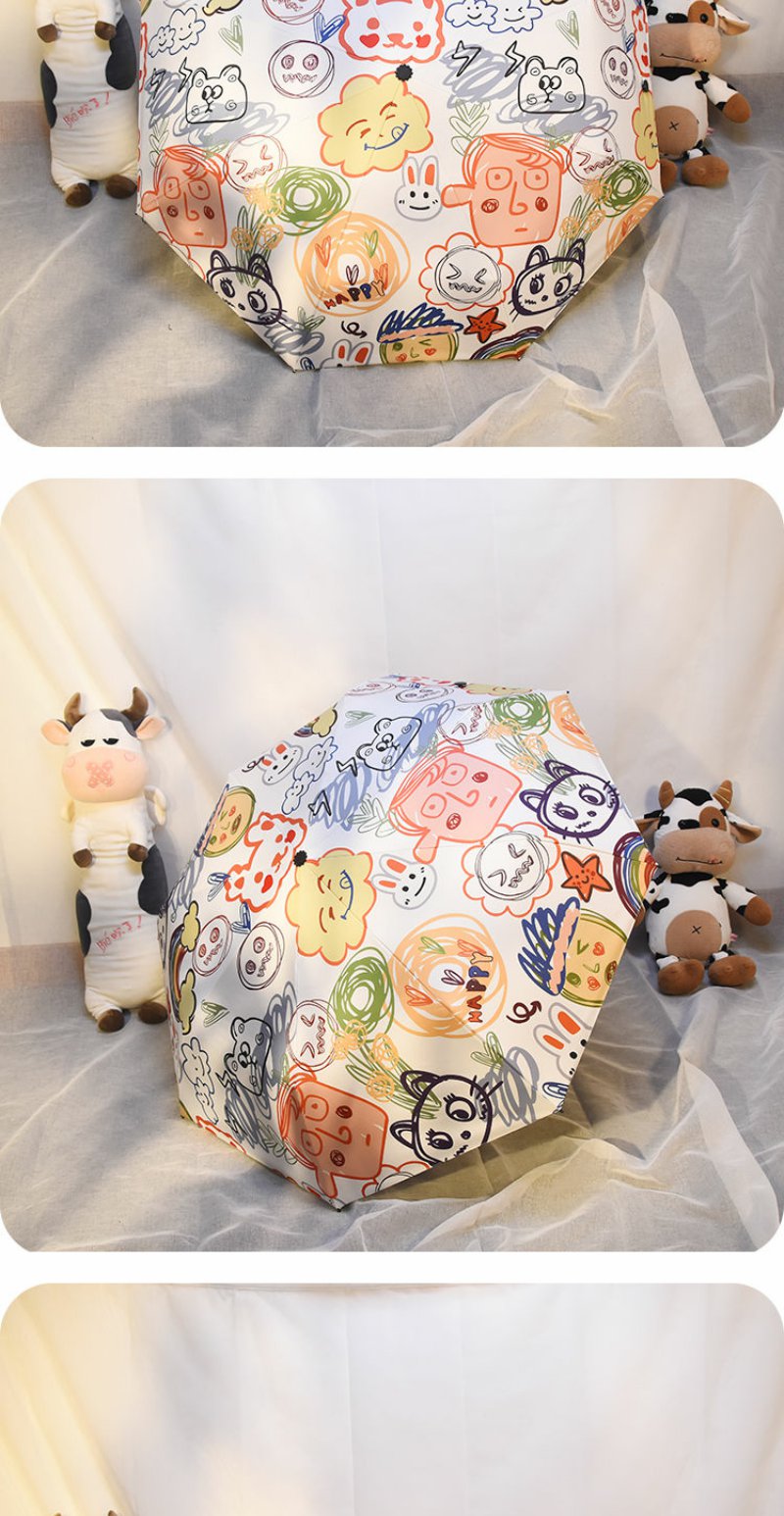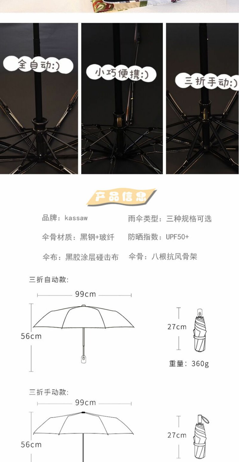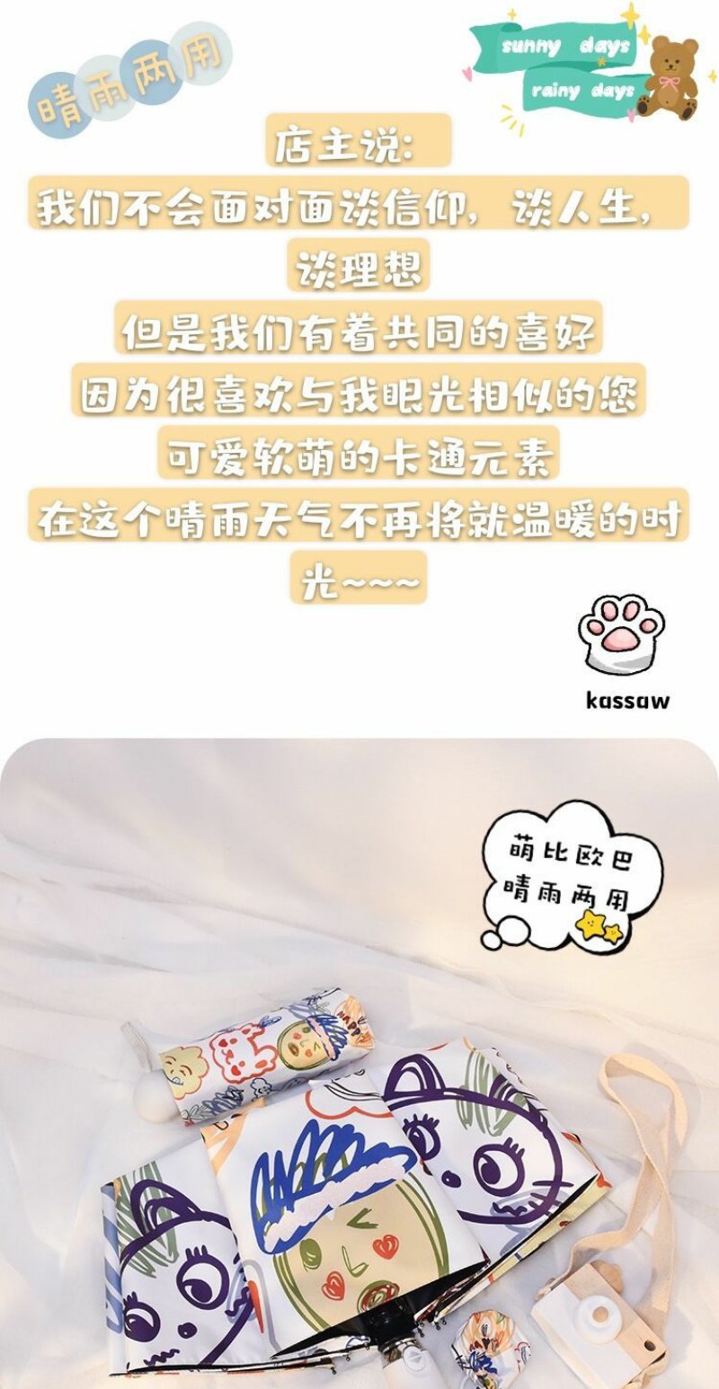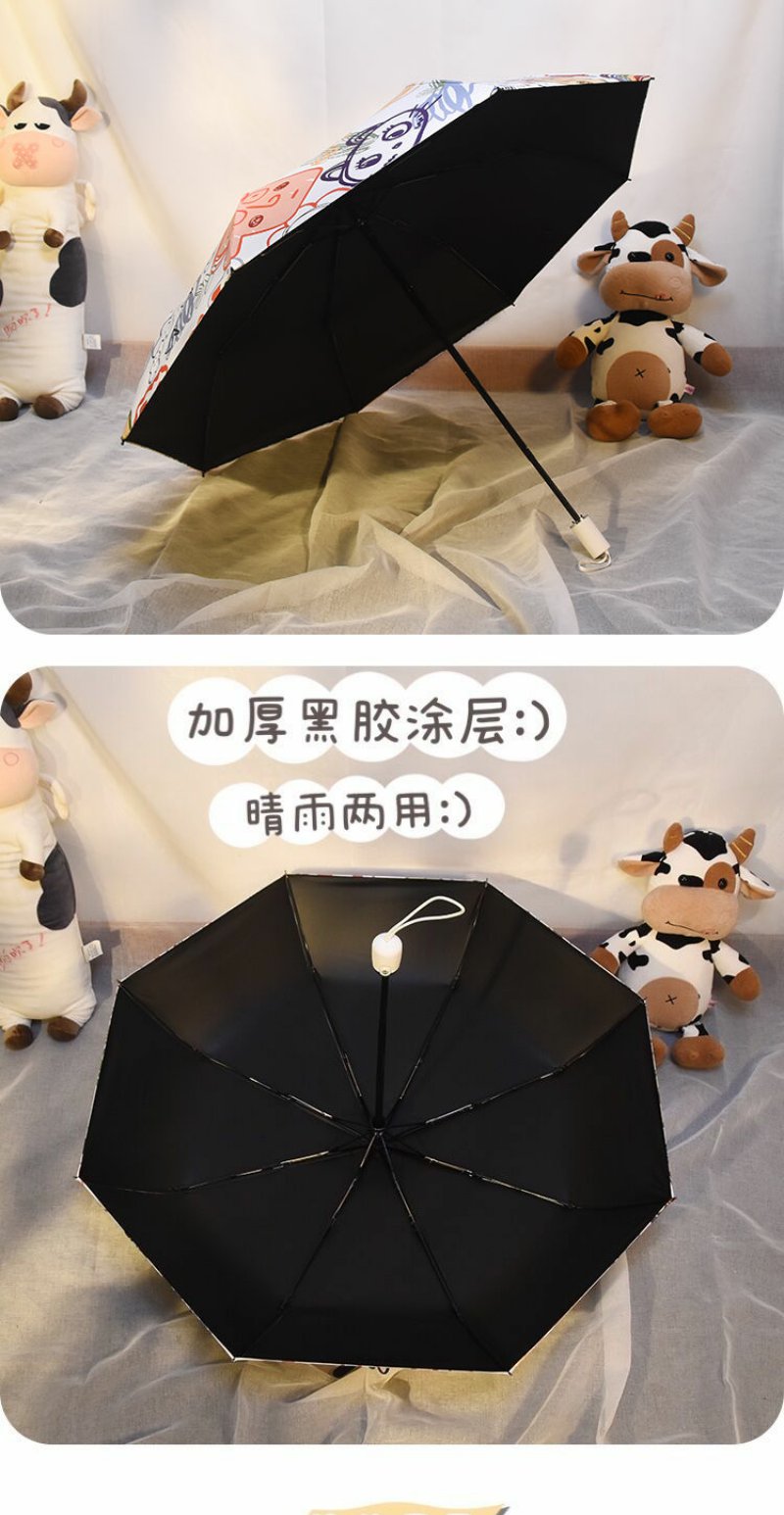 ins软萌治愈系自动雨伞晴雨两用女创意涂鸦遮阳伞防紫外线太阳伞