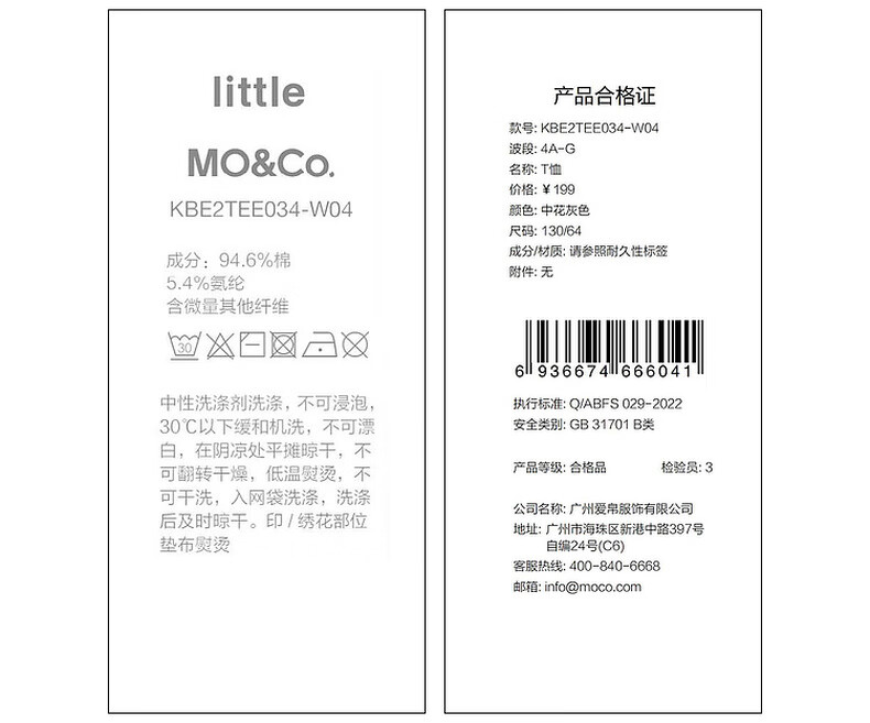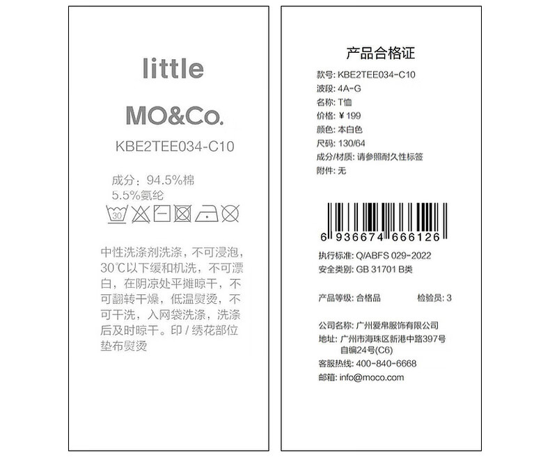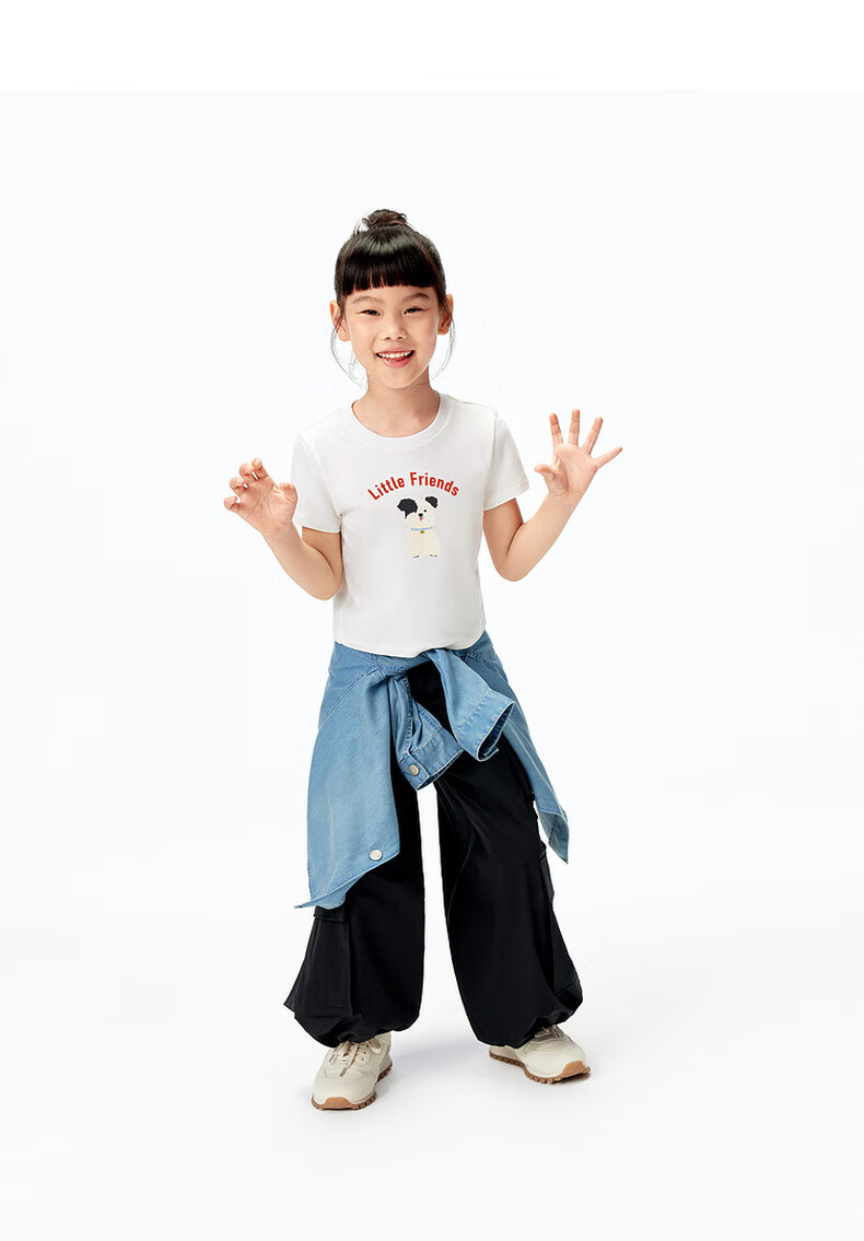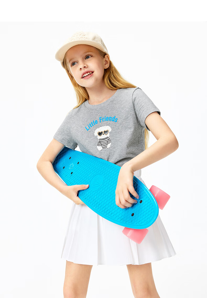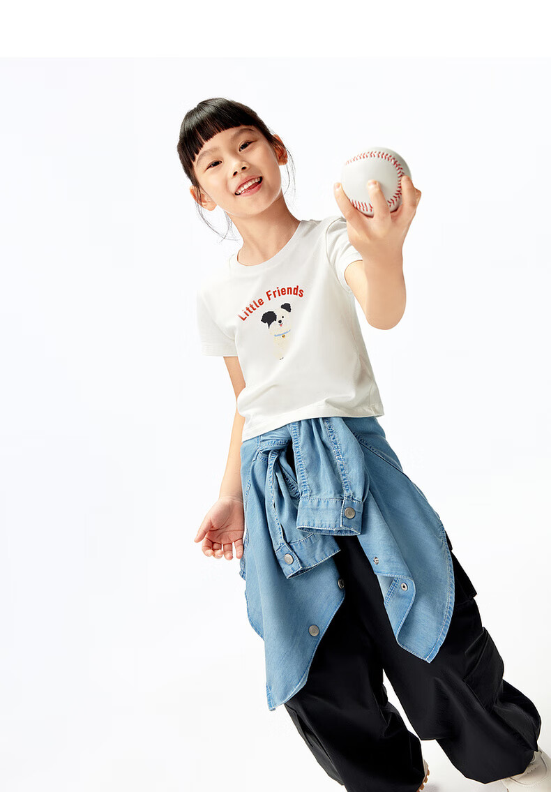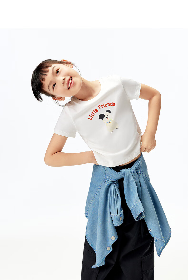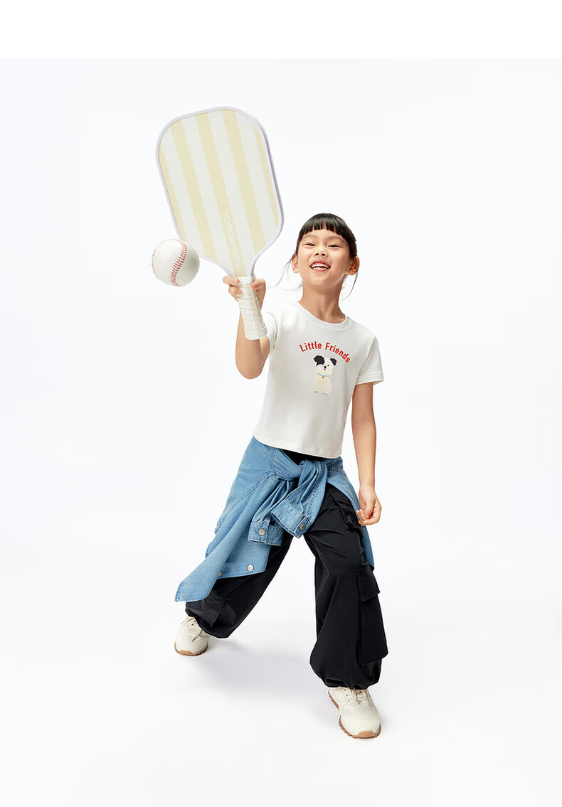 【5F】little MO&Co.抑菌 little moco童装25夏装新款女童修身短袖印花T恤