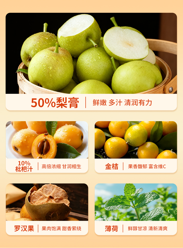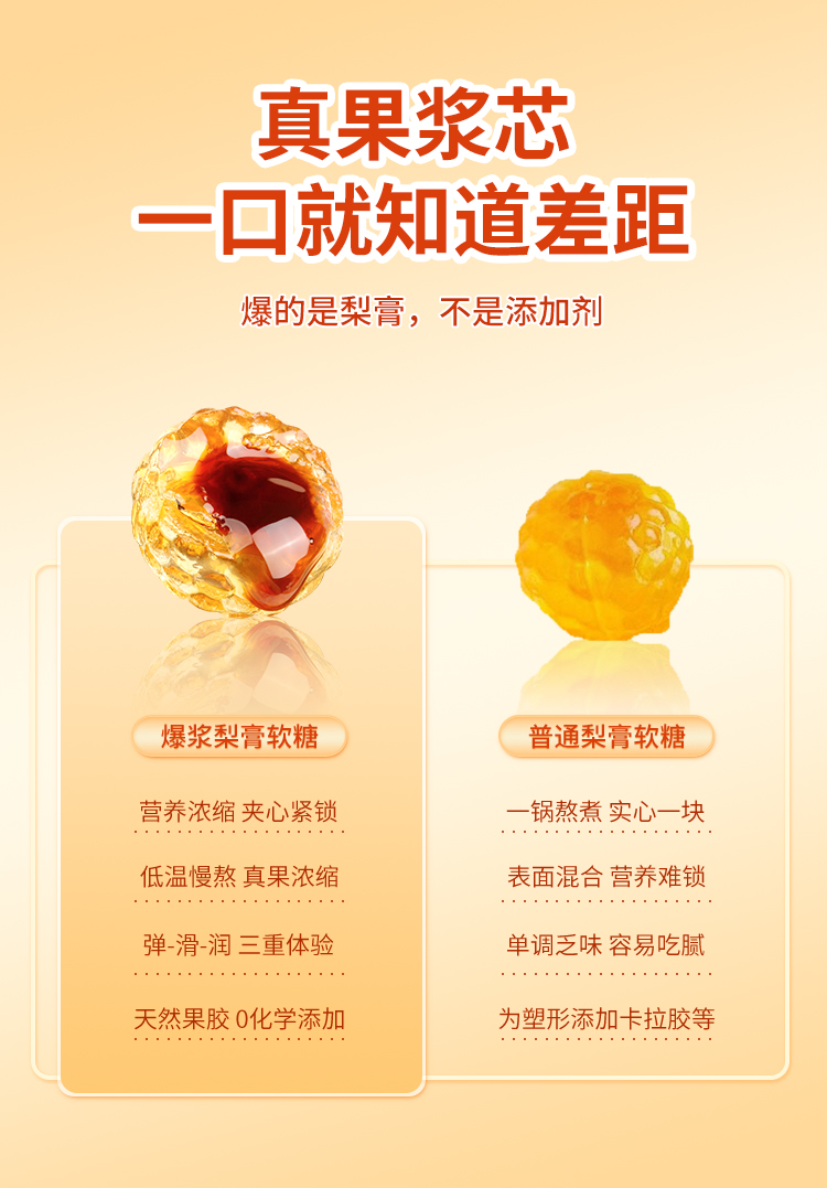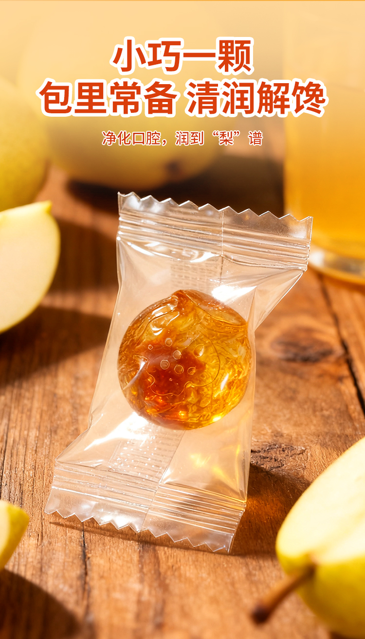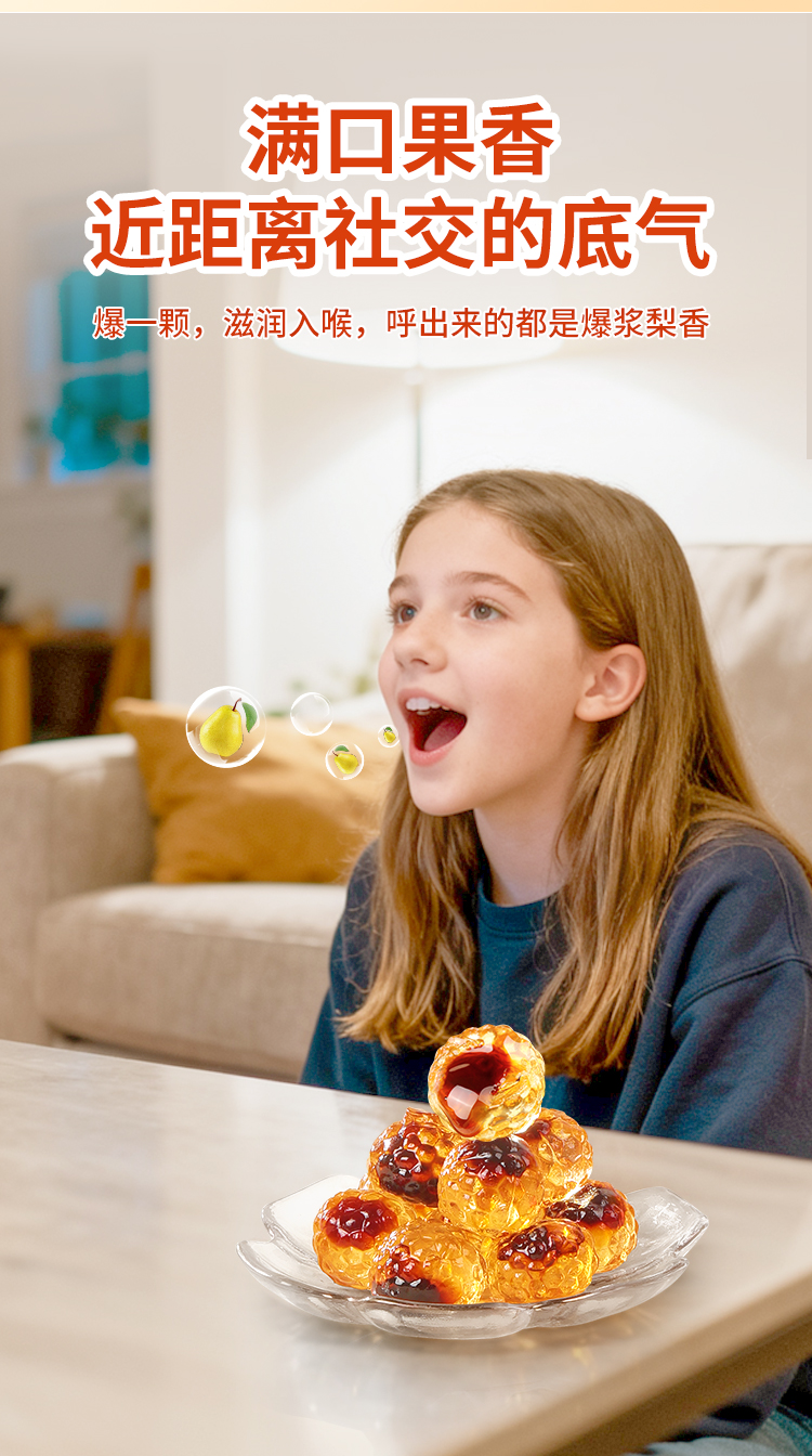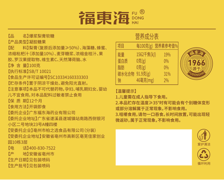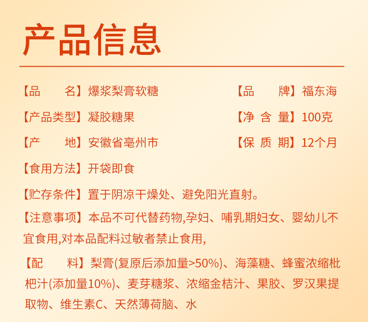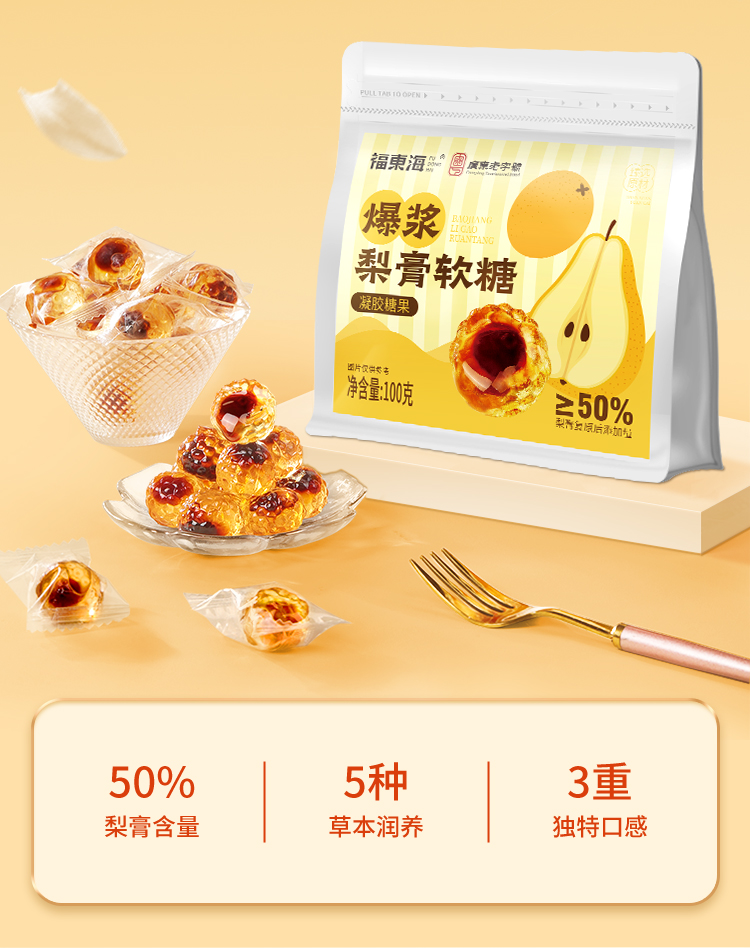 福东海 爆浆梨膏软糖100g 枇杷罗汉果润喉薄荷软糖儿童夹心休闲零食