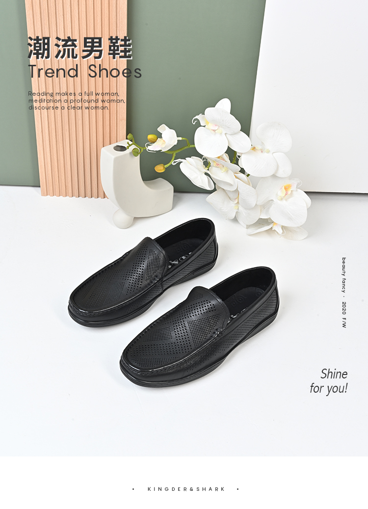 经典鲨2024年夏季新款百搭纯色男士透气平底舒适豆豆鞋KW251-D26061