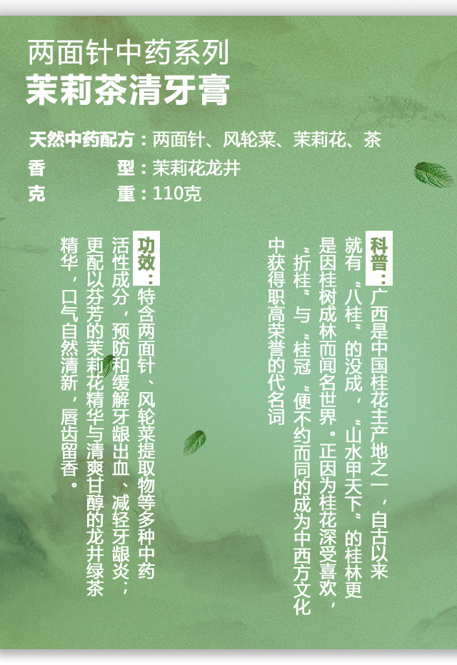 两面针 中药茉莉茶清牙膏 茉莉龙井茶 牙膏 100g+10g
