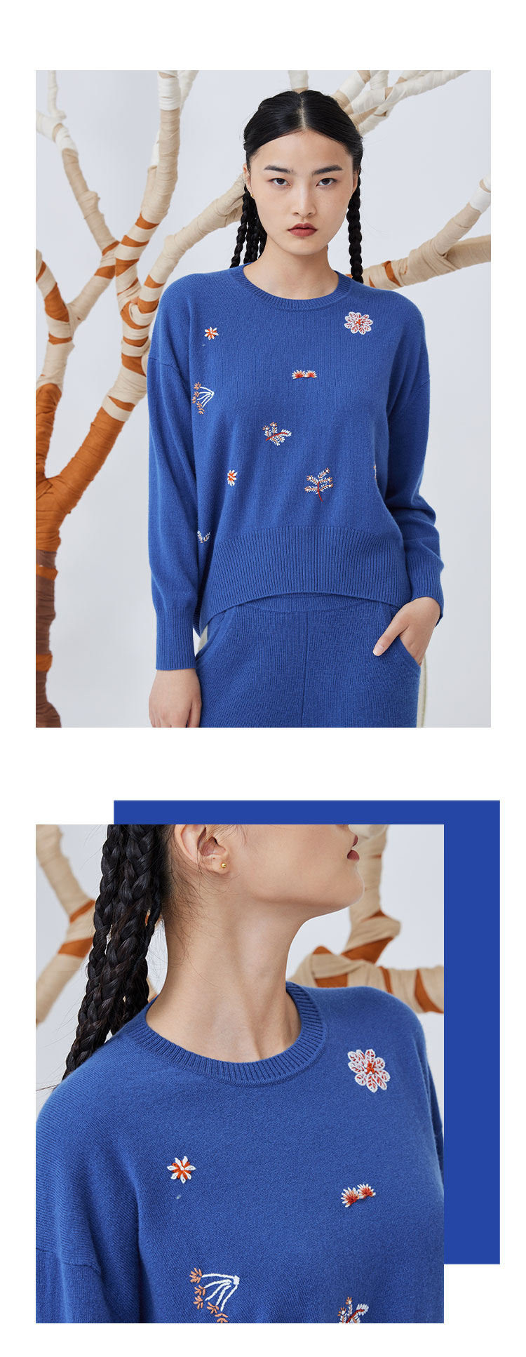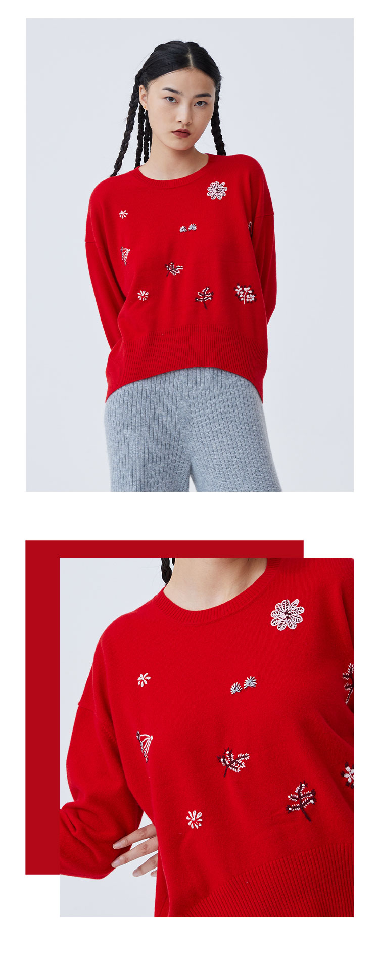 圆领刺绣羊绒针织套衫 SJF93W162N