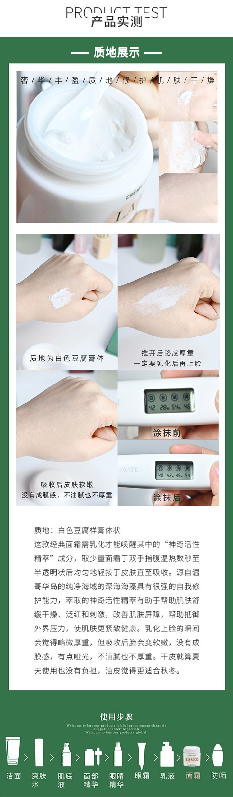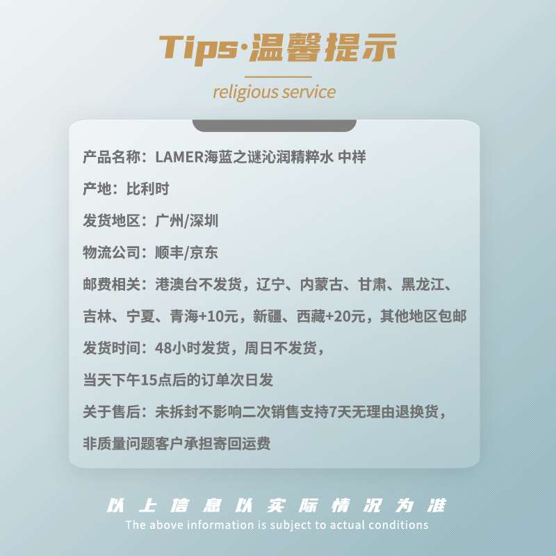 【米粒妈专属】LAMER海蓝之谜沁润精粹水中样30ml/海蓝之谜奇迹面霜小样7ml
