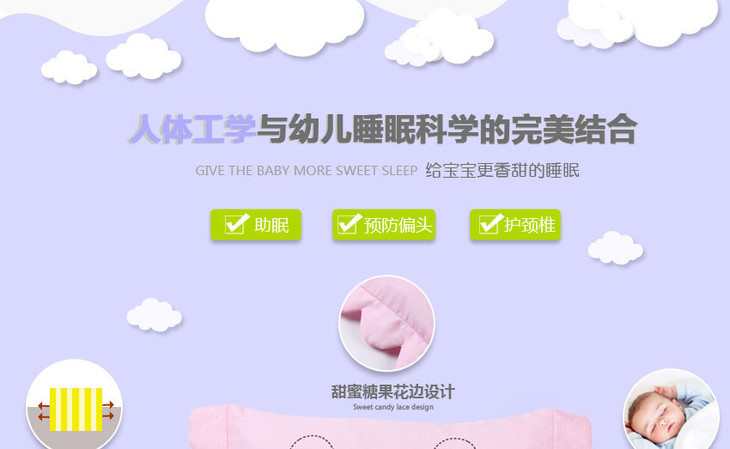 【婴儿用品】*婴儿用品宝宝枕头四季通用婴儿枕头防偏头婴儿加长枕无凹槽