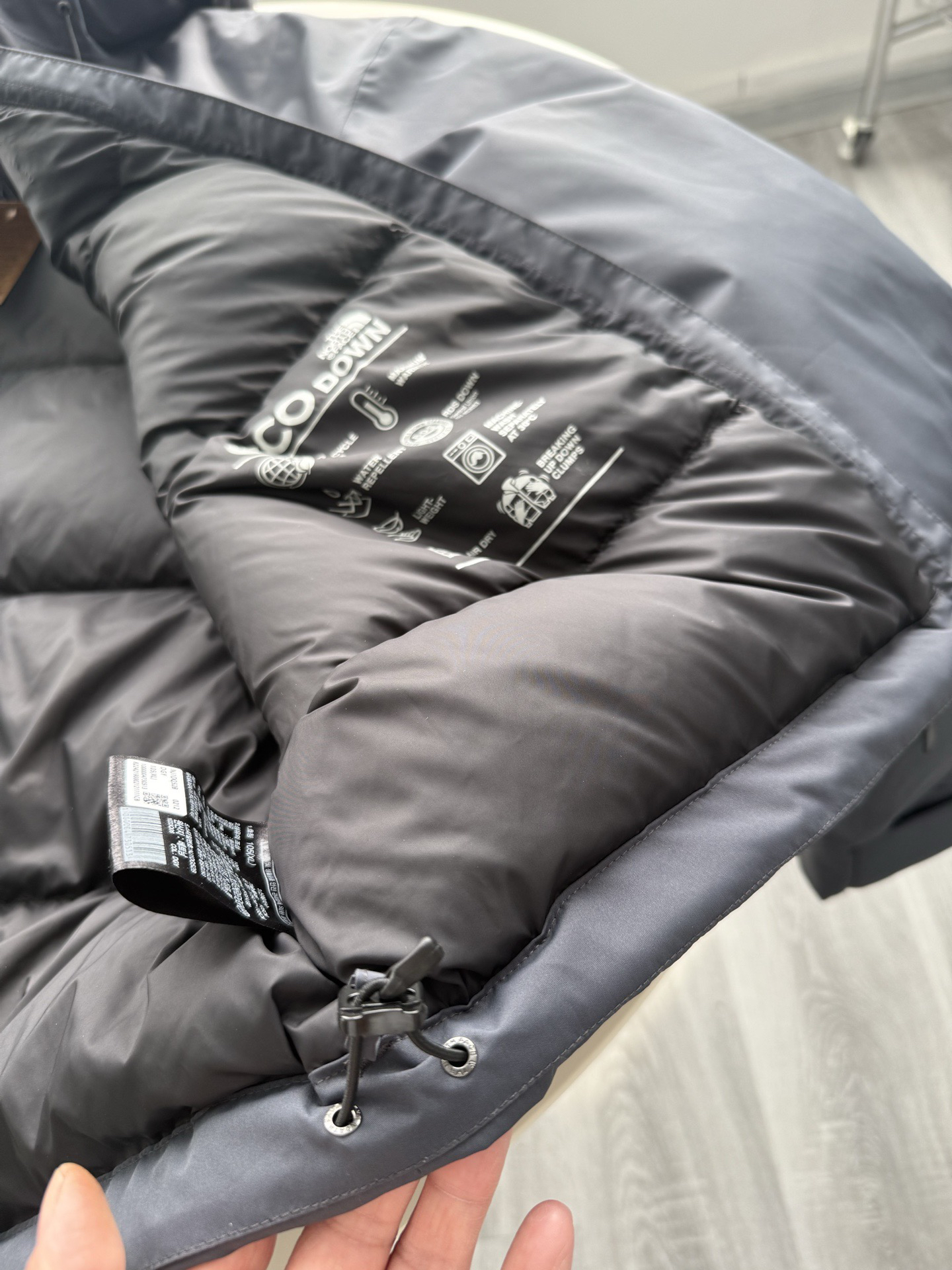 内里鹅绒保暖足够,且没有厚重感,版型是标准的宽松剪裁,便于内搭叠穿