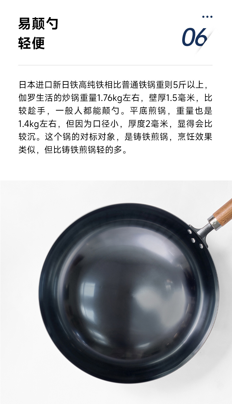 伽罗 JALO 窒化工艺手工锻打高纯铁炒锅/煎锅
