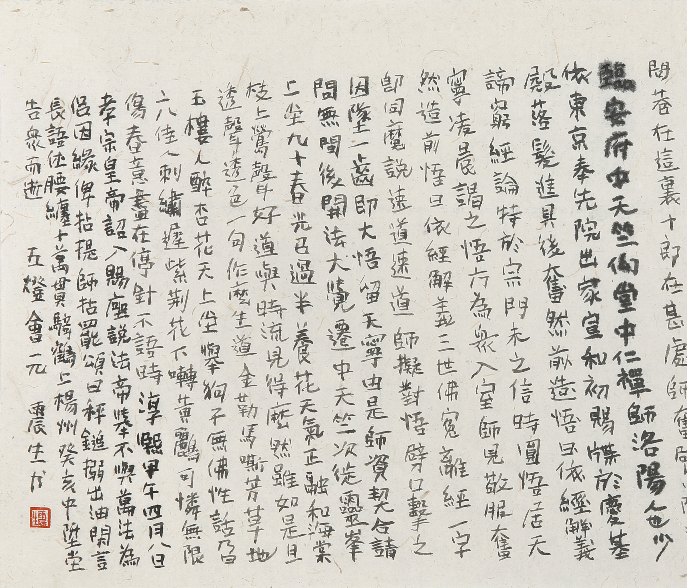 陈震生楷书横幅《五灯会元 平江府南峰云辩禅师》