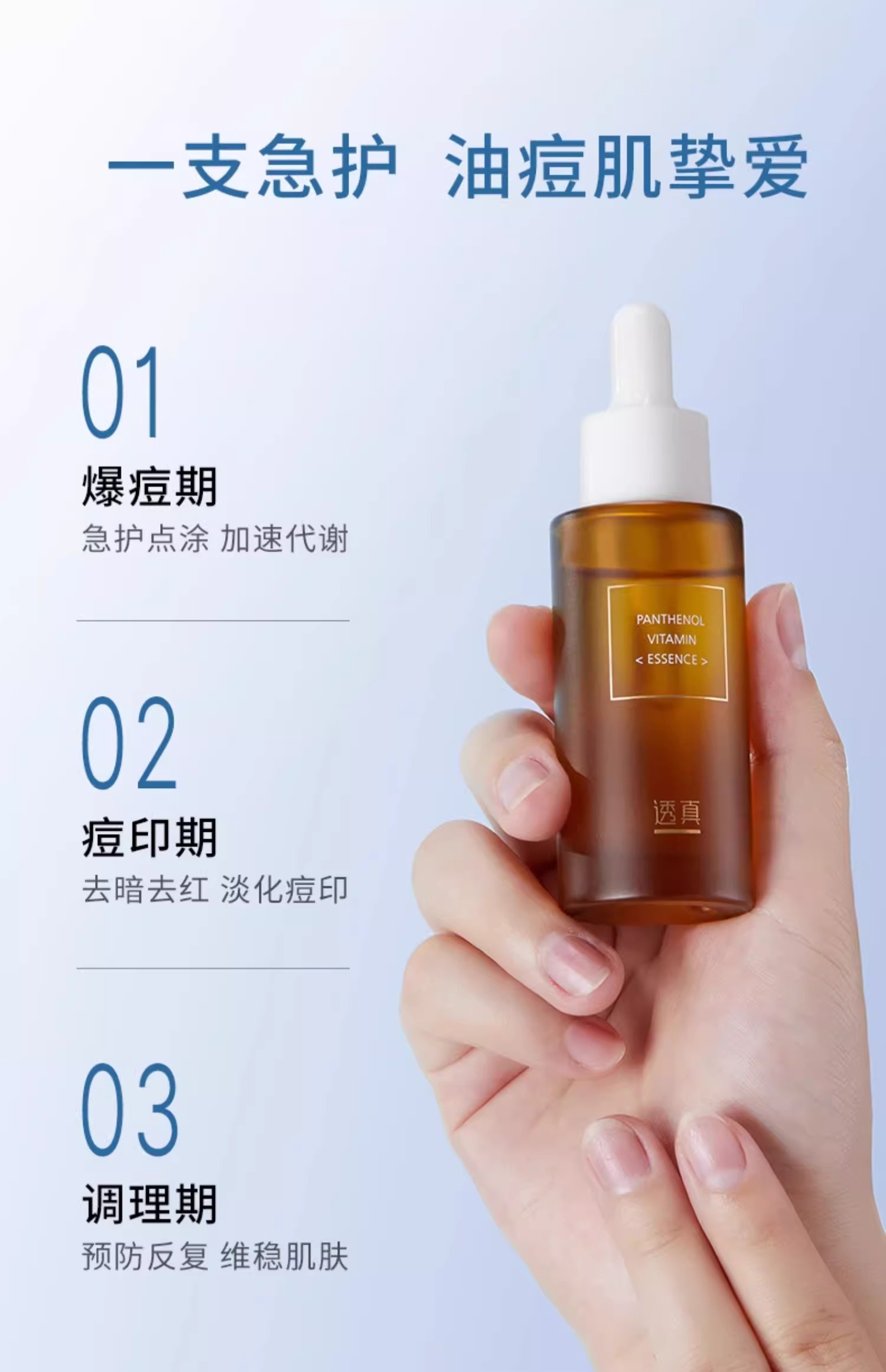 【祛痘小金瓶 油痘肌0反复】泛醇维生素精华液30ml#B56祛痘精华液淡化痘印改善黑头粉刺收敛毛孔油皮原液正品