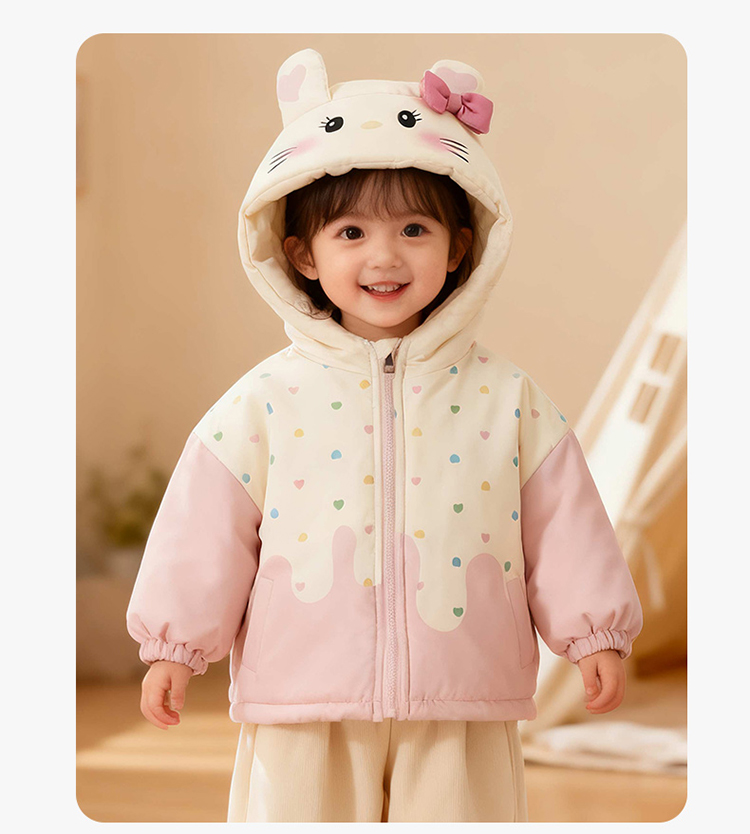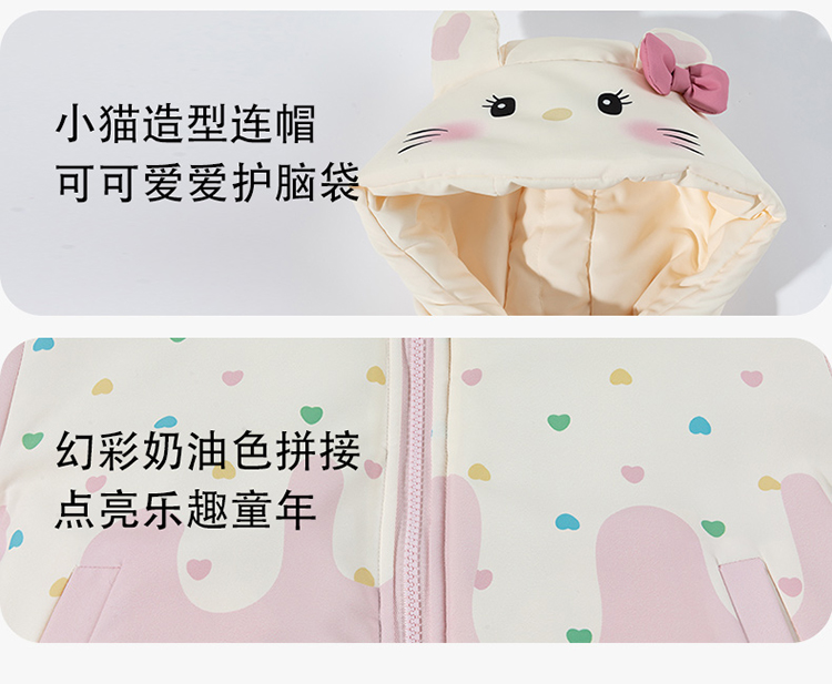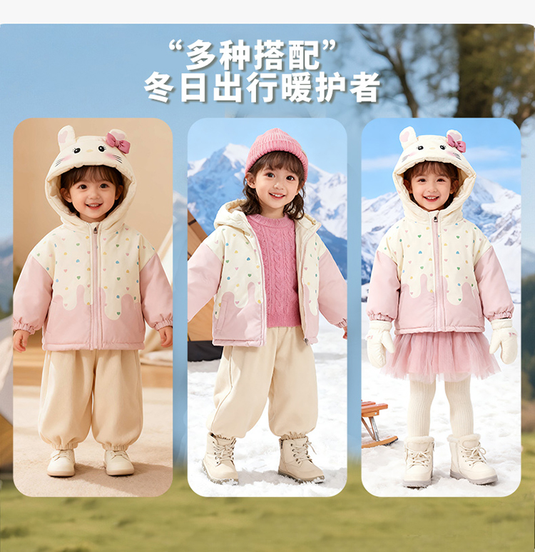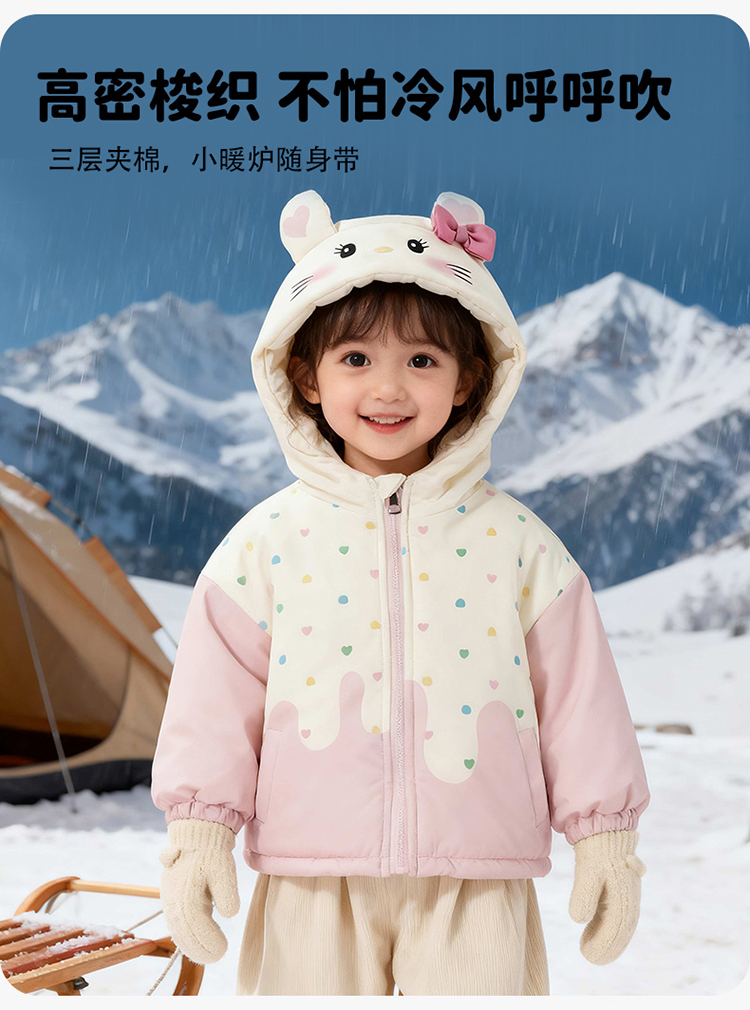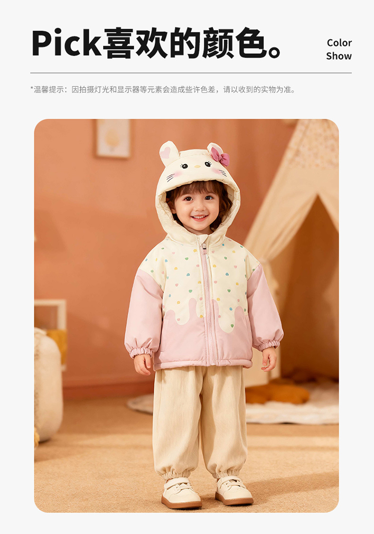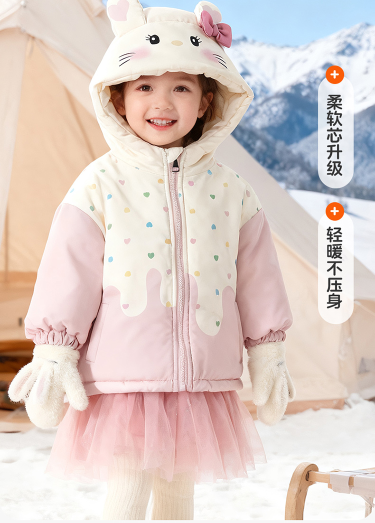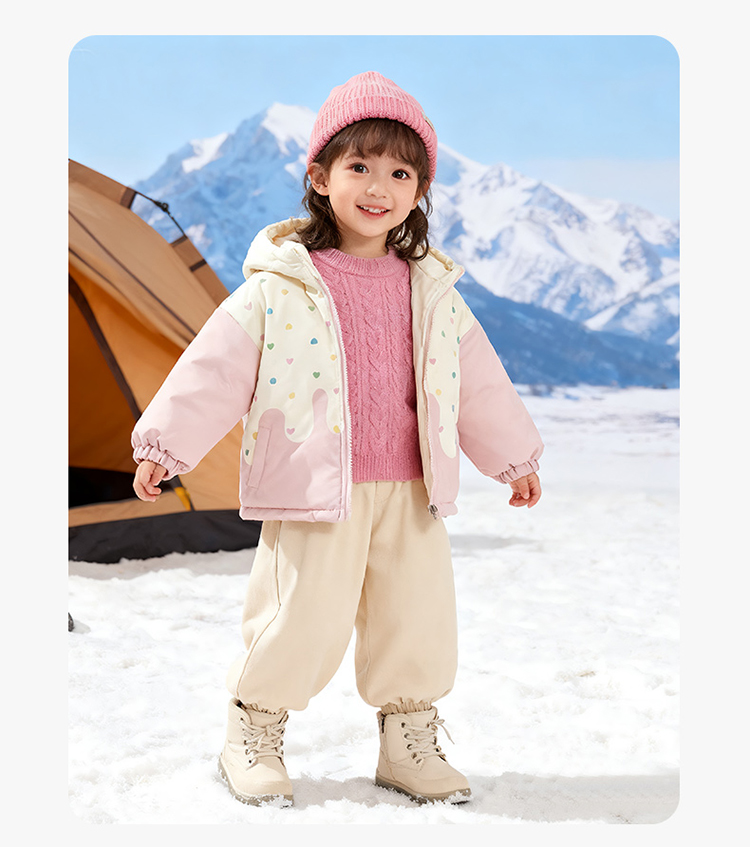 贝贝怡2025冬季新款女童夹棉保暖外套甜心撞色防风棉衣ZB4ES056