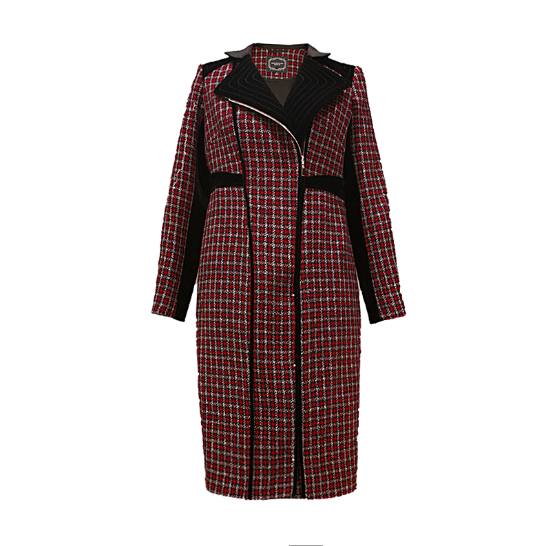 【伯妮斯茵】红色千鸟格粗纺呢料大衣-163C172-《比莫贝卡特岩画》-《艺术发轫》