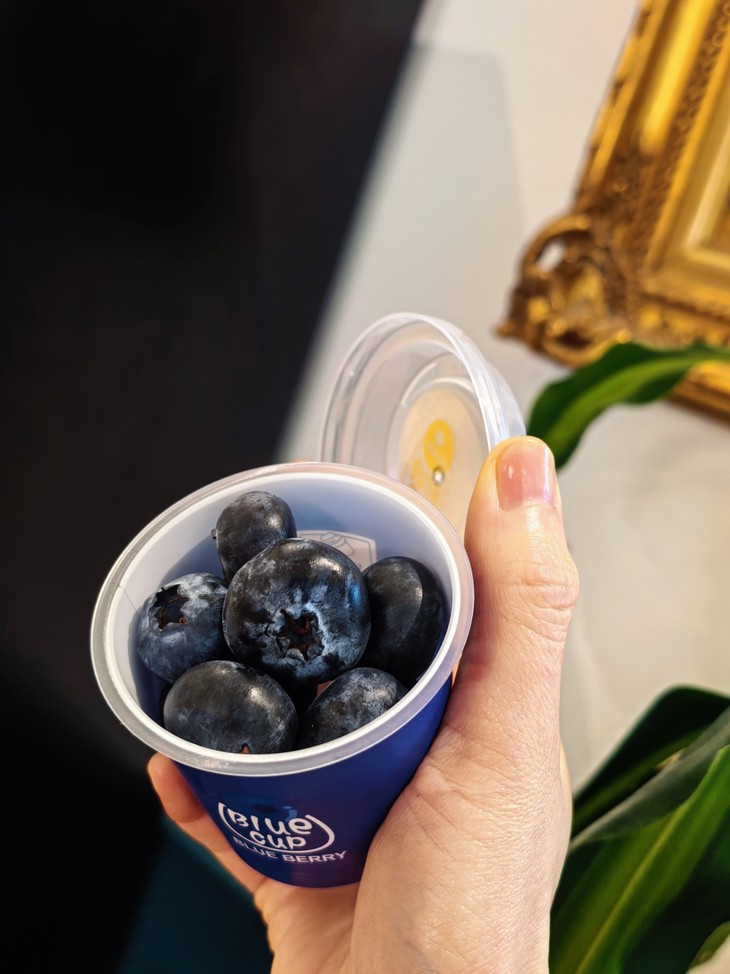 蓝莓规格很多,单果从15mm的标准果到22mm的巨无霸果子都有。包装也有改进,加厚外箱搭配分杯装,集洗水果、装水果、沥水于一体,既确保蓝莓在运输过程中保持新鲜和完整,也方便带出门吃,随时补充满满能量!打开小杯洗一洗,咬开薄如蝉翼的果皮,果肉脆嫩得像一汪果汁,瞬间在舌尖爆开,甜度直飙17+,微酸清甜在口腔打转,更绝的是咀嚼时漫开的自然花香,与果香缠缠绵绵!