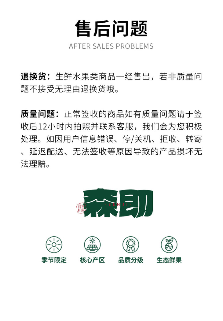 温馨小提示:运输过程中果粉有脱落情况不在理赔范围内,不接受坏几颗整盒售后;水果为自然生长,果皮黑点、果锈、小干巴等不影响果肉的小瑕疵不售后;蓝莓自然成熟且为人工挑选,不同时候蓝莓形状、大小、外观有差异属于正常哦。