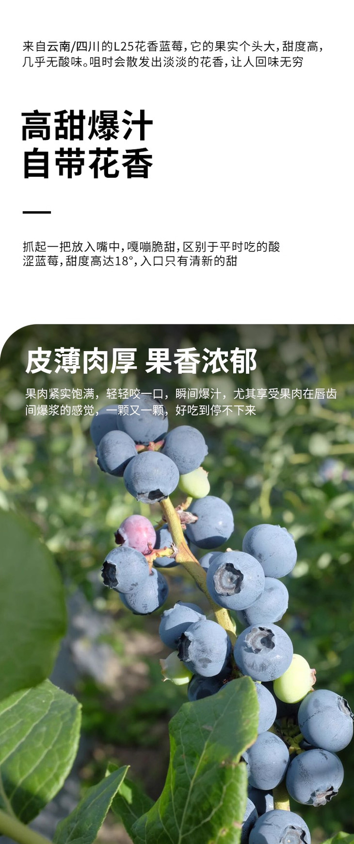 来自高海拔云端的花香蓝莓又到季啦!我真的没见过这么大的,实物比图片,更大,关键是,还很甜!尤其是今年,都又小又淡的,试了好几家都不行。。。终于,可以有蓝莓吃啦,还是小杯杯装,要给我妈也寄点!蓝莓不只是好吃哦,还富含花青素、维C和膳食纤维,抗氧化、护视力,大人小孩都多吃吃!