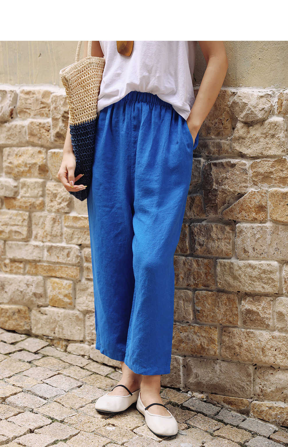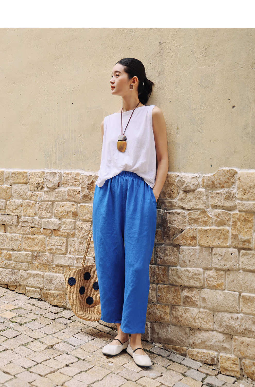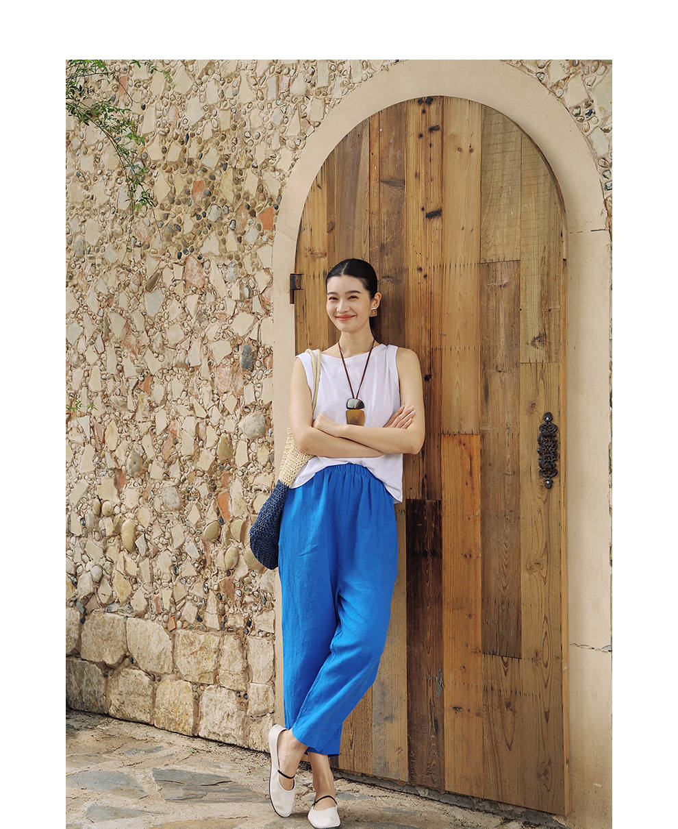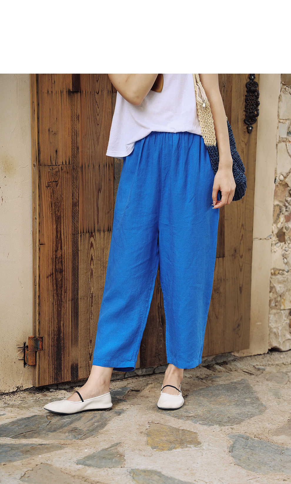 绽放404朵/【多巴胺系列·小萝卜裤】干洗亚麻松紧腰七分休闲裤女
