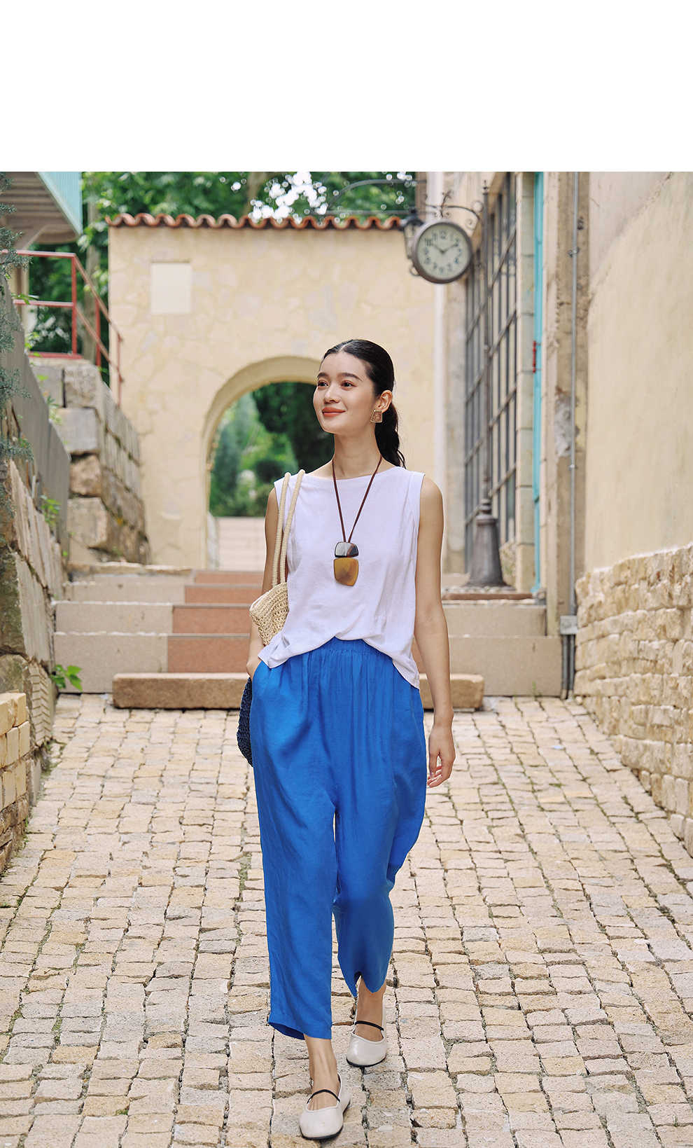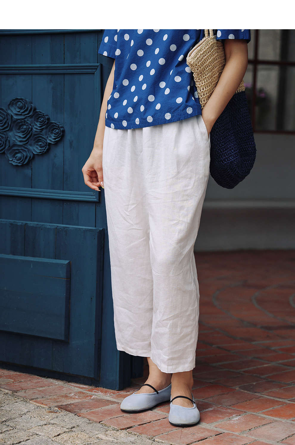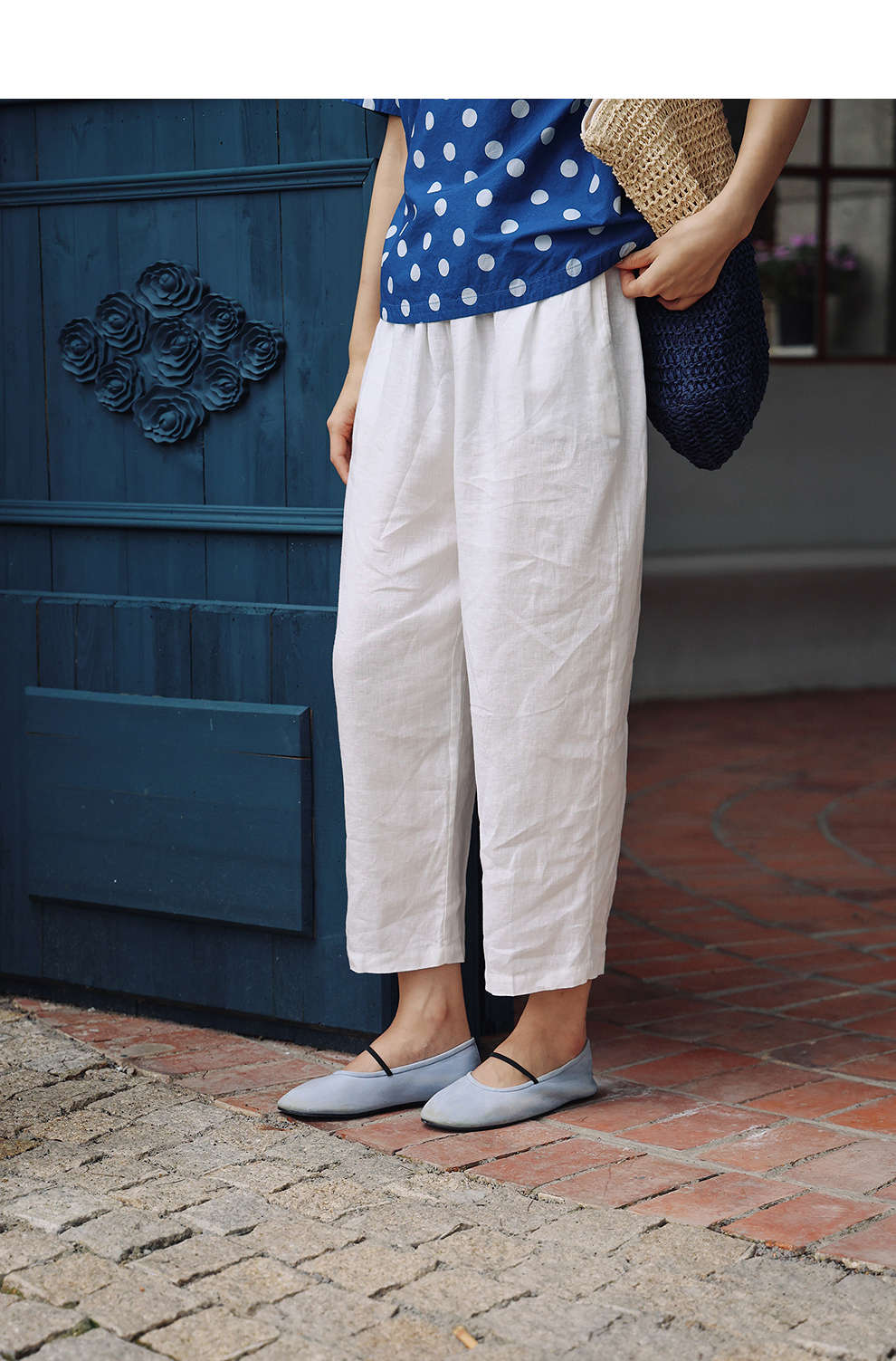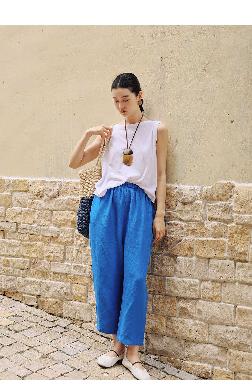 绽放404朵/【多巴胺系列·小萝卜裤】干洗亚麻松紧腰七分休闲裤女