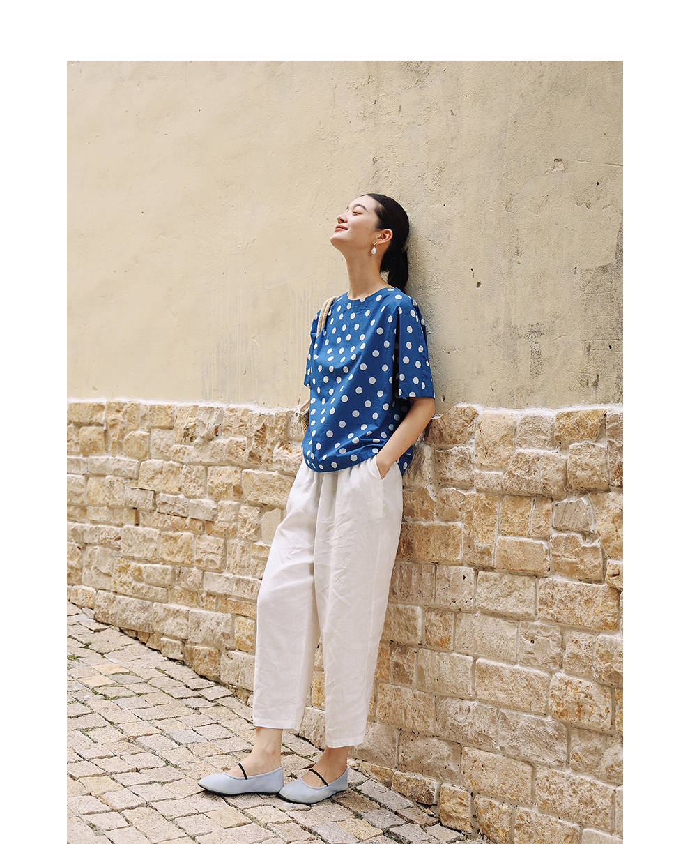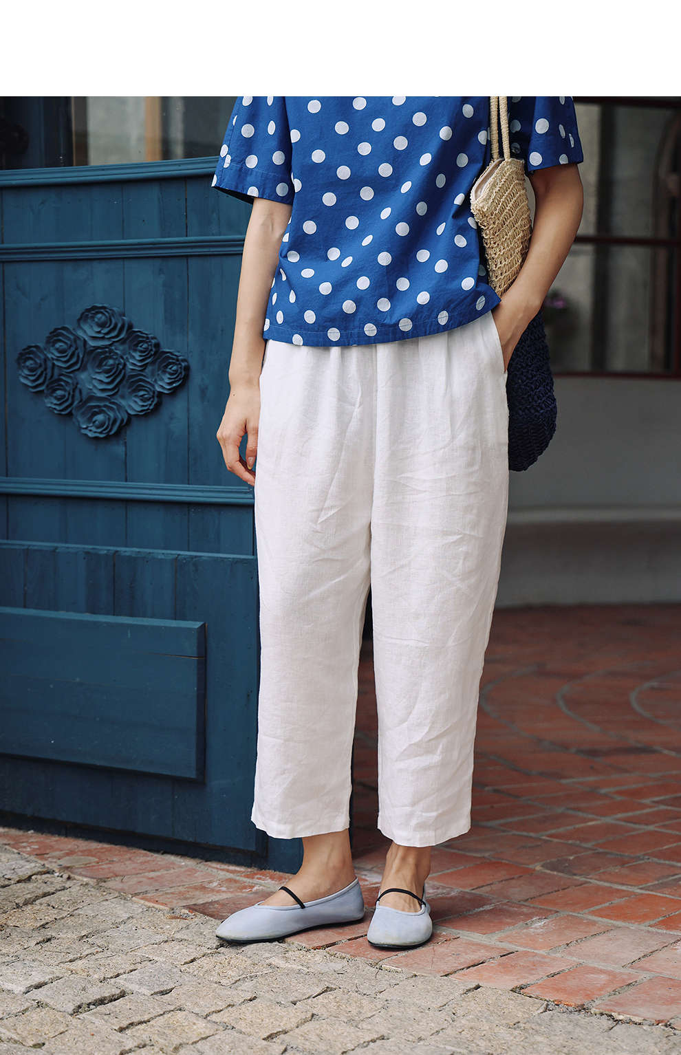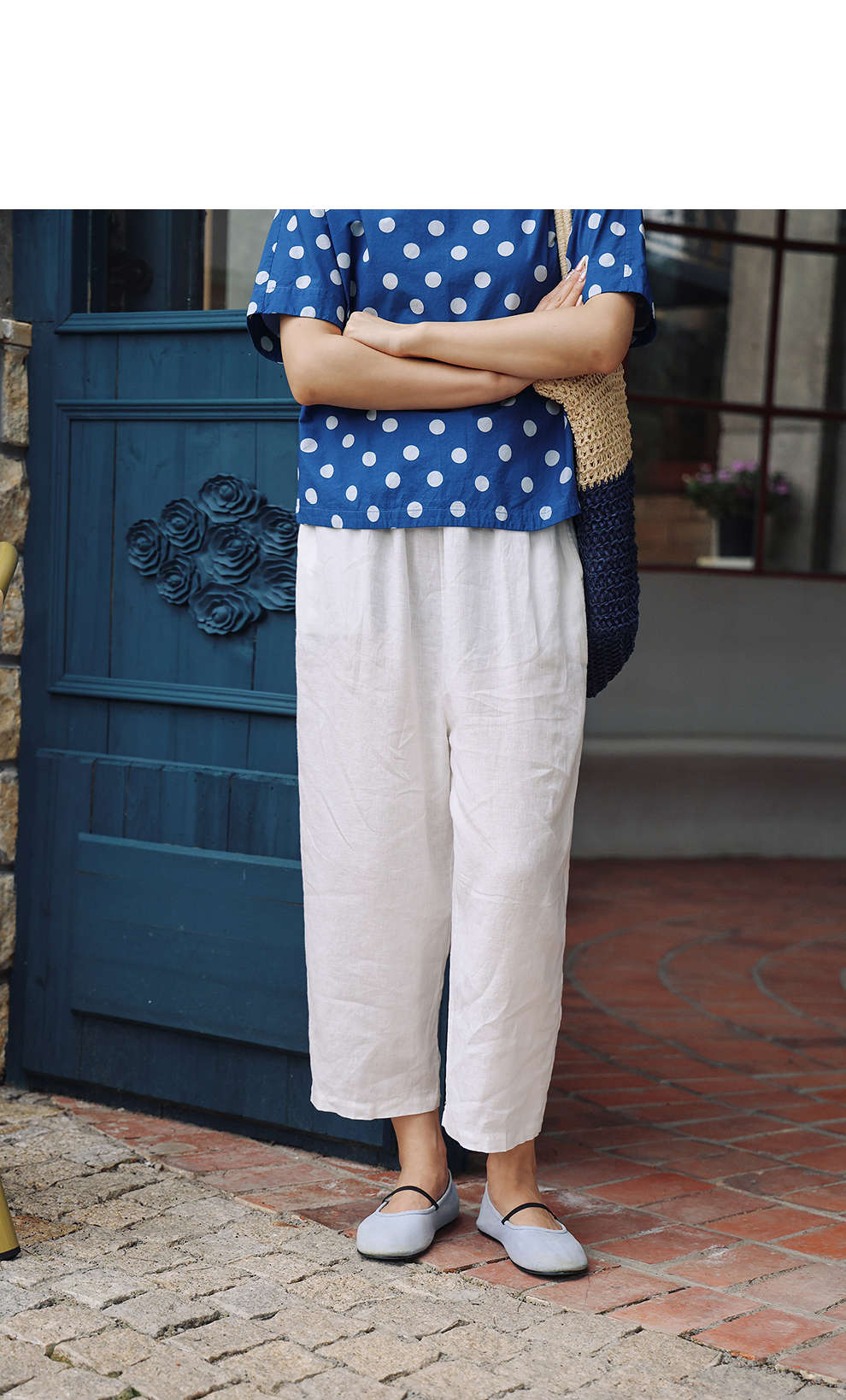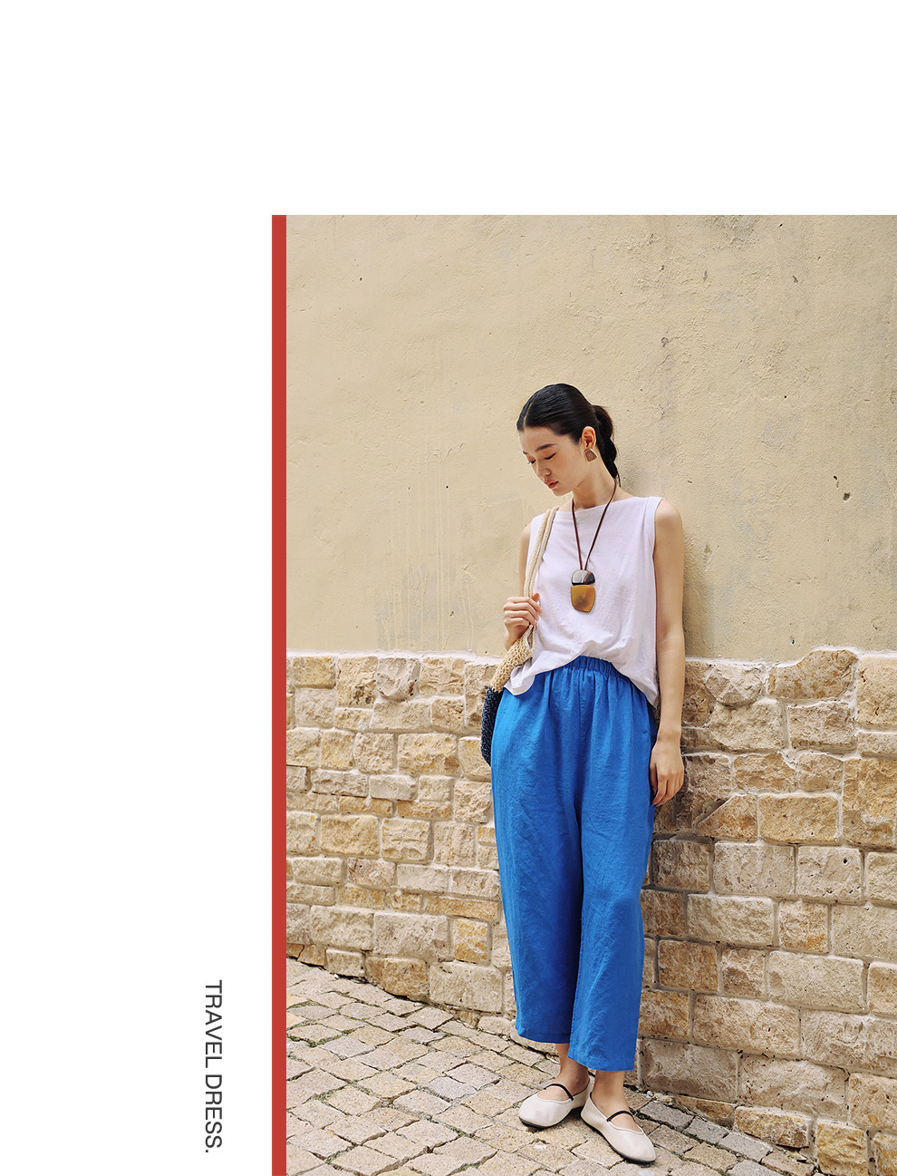 绽放404朵/【多巴胺系列·小萝卜裤】干洗亚麻松紧腰七分休闲裤女