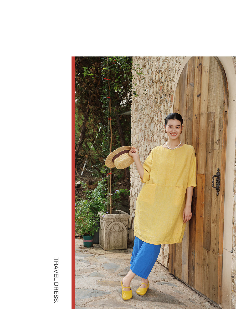 以天然亚麻为载体,融合热烈色彩与自在剪裁为身在城市、心怀远方的女性提供兼具美学与舒适的旅行着装