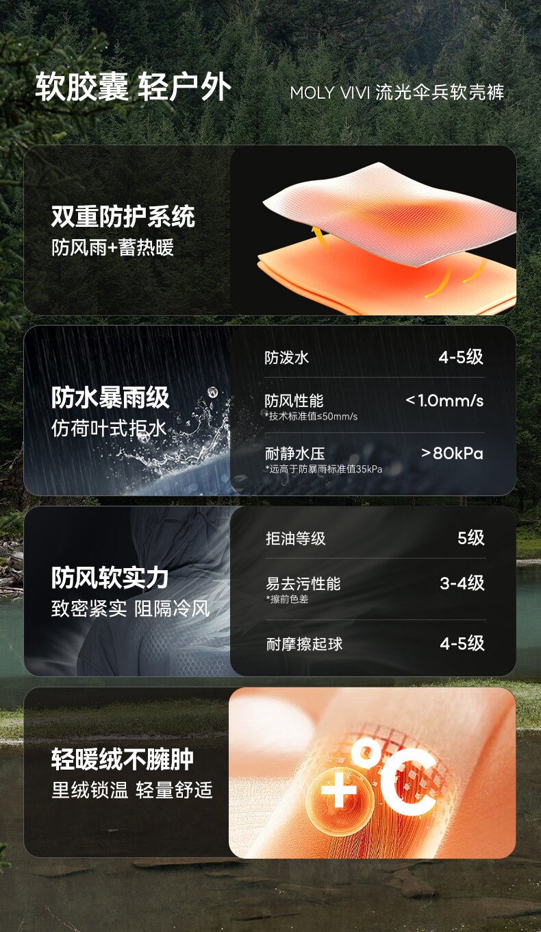 MOLYVIVI流光伞兵软壳裤2024秋冬新款女户外加绒防风防水透气运动登山长裤
