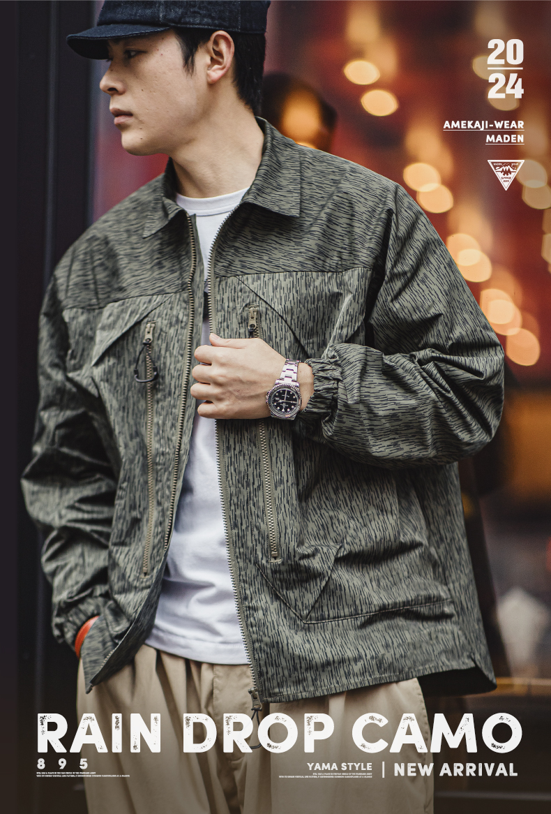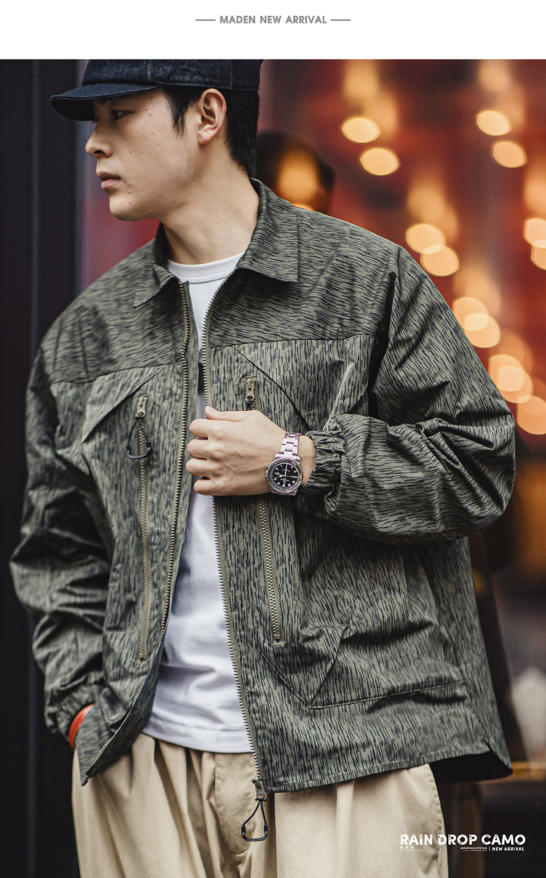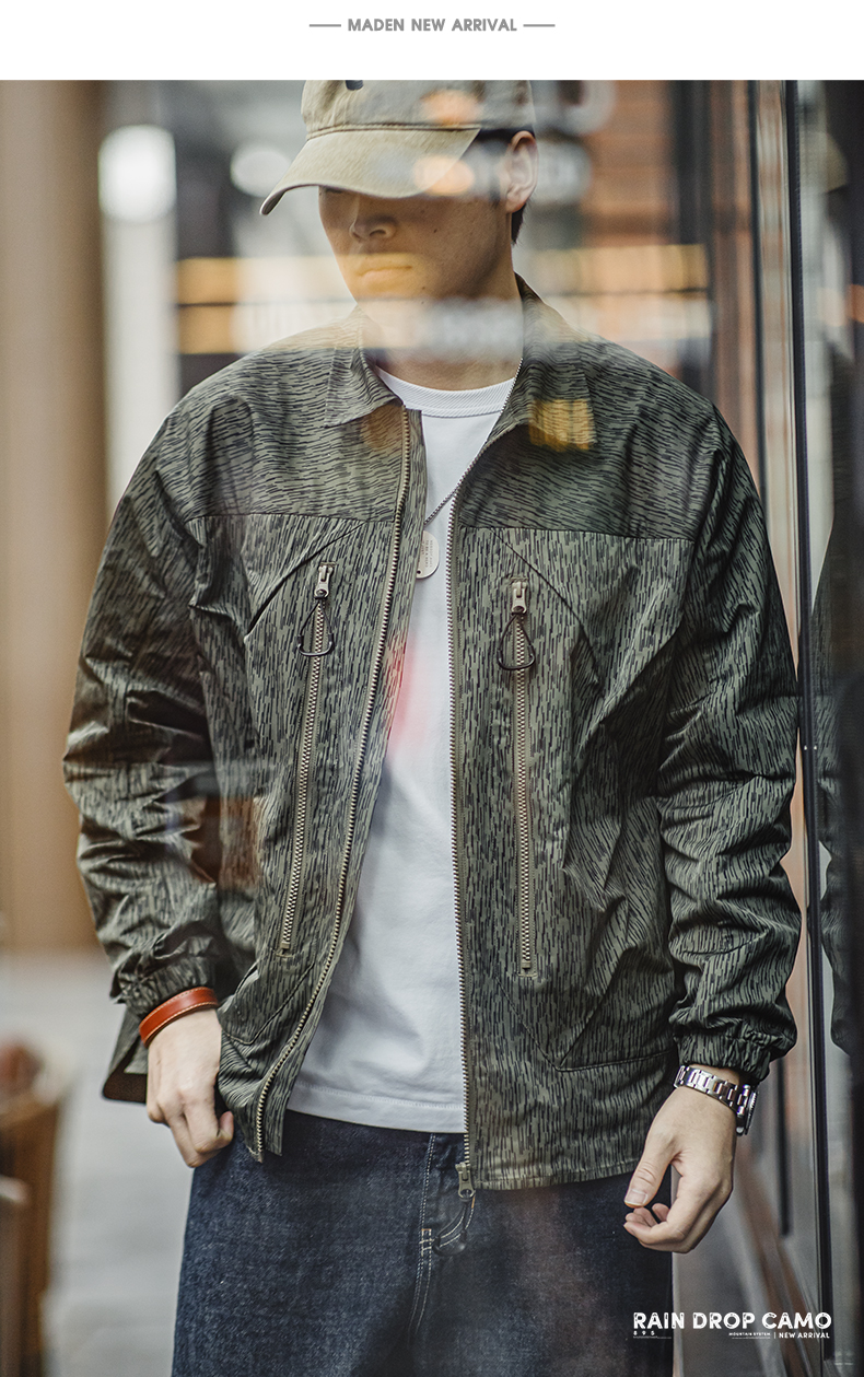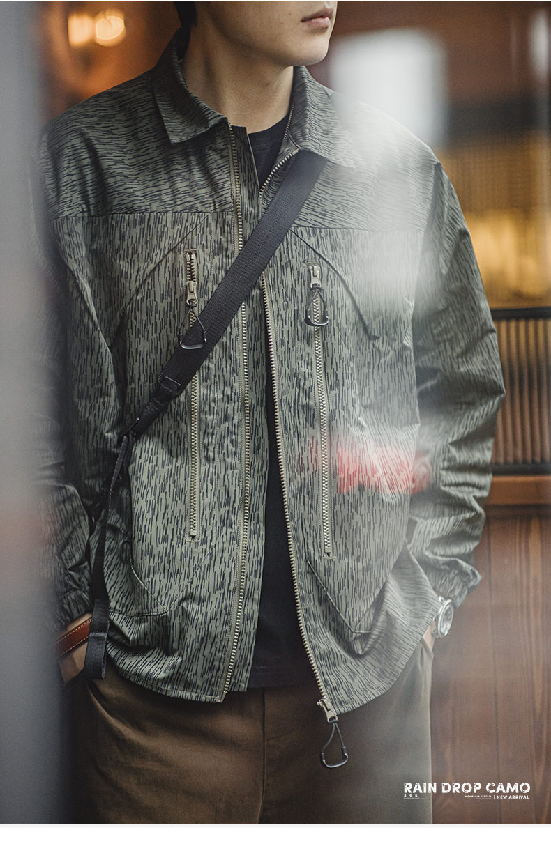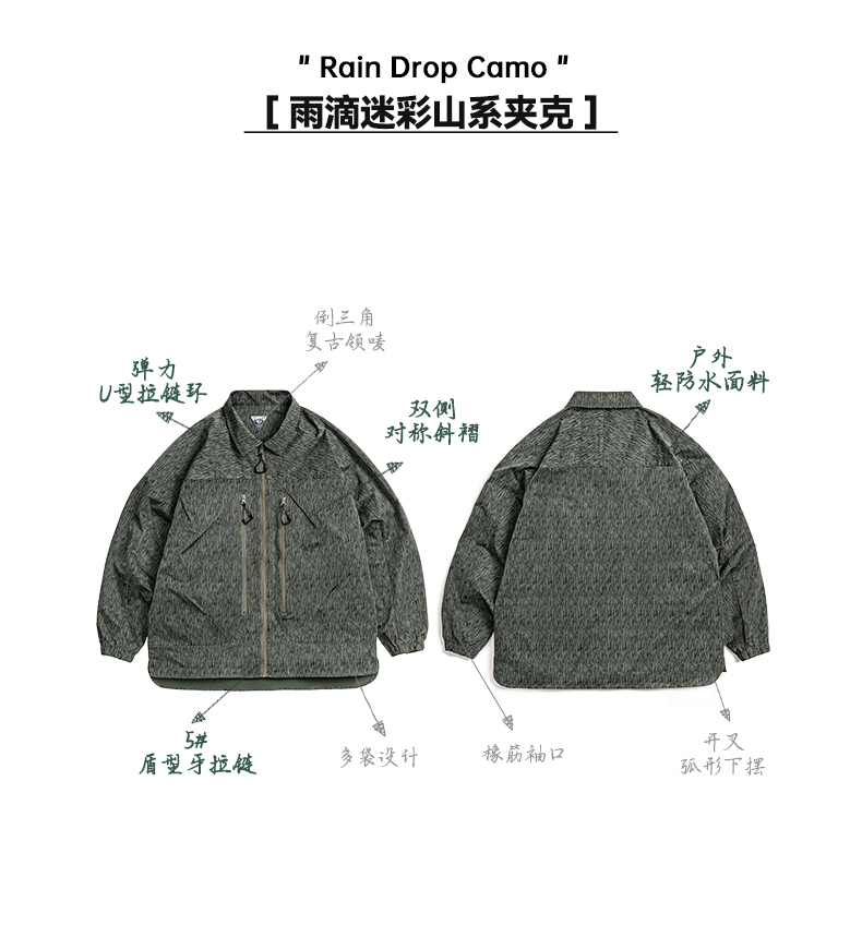 工装优选山系户外雨滴迷彩机能夹克军事风宽松翻领拉链外套男春秋