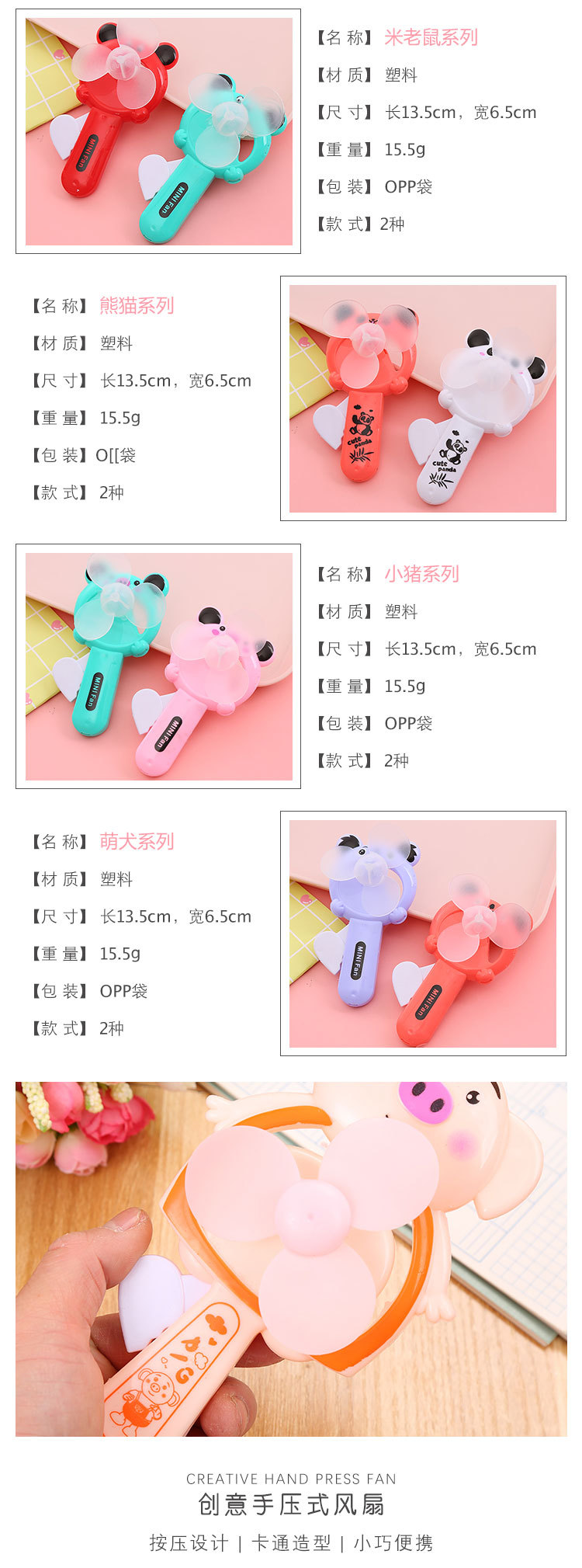 卡通手压小风扇手持手动便携式随身迷你风扇可爱学生儿童玩具 40g