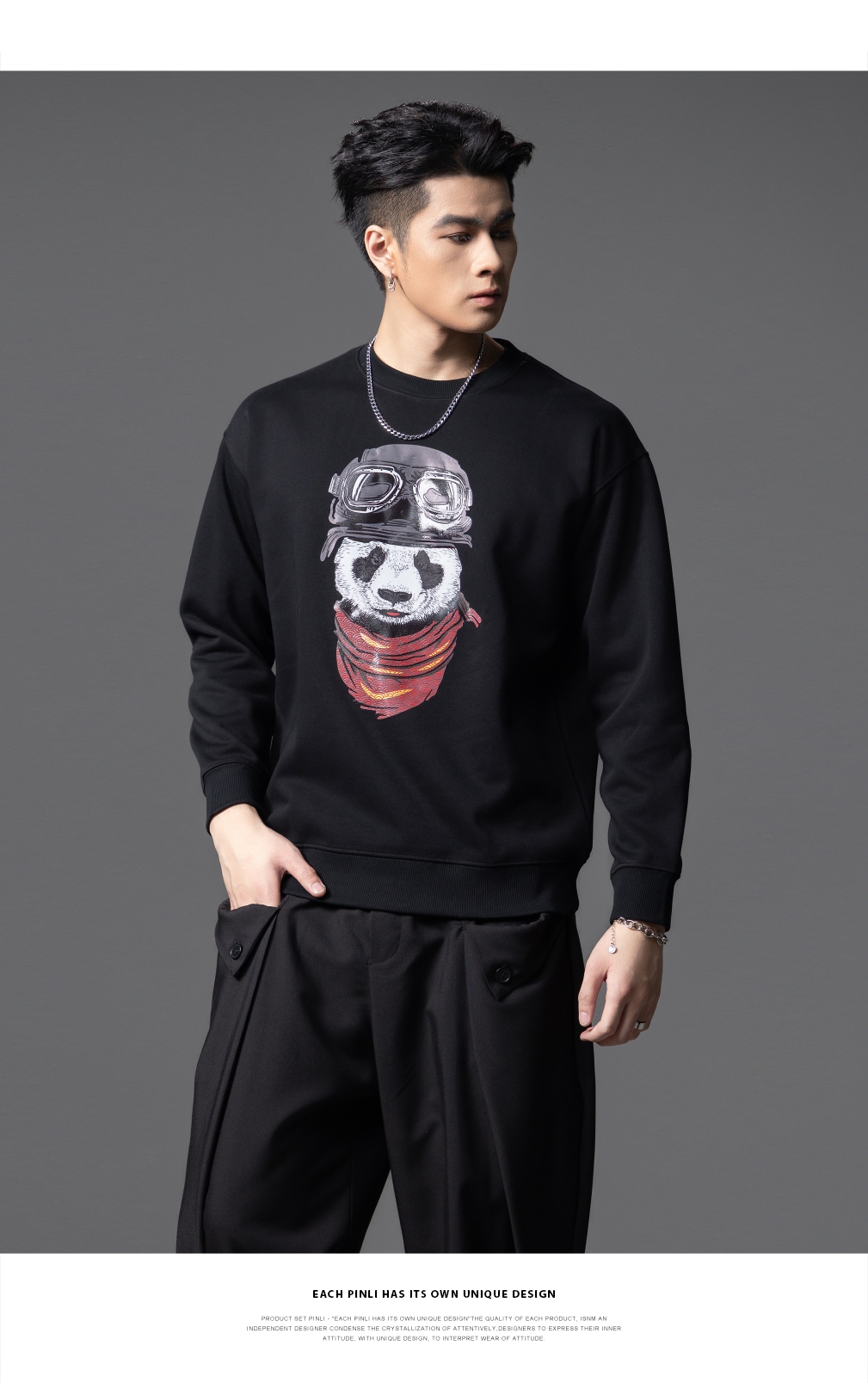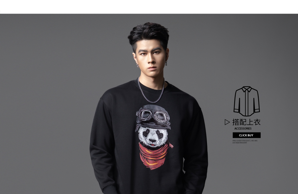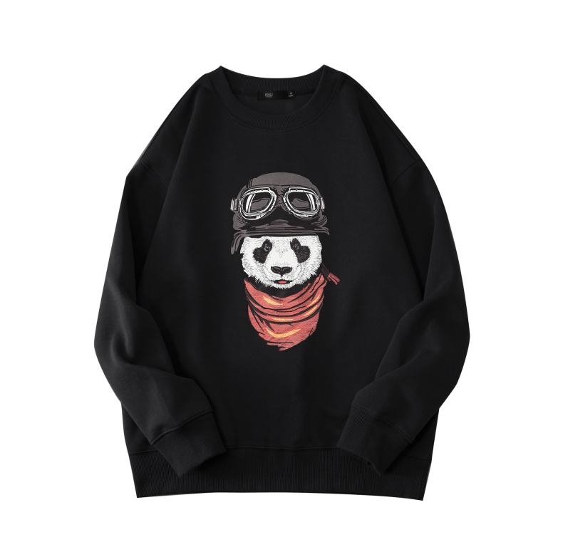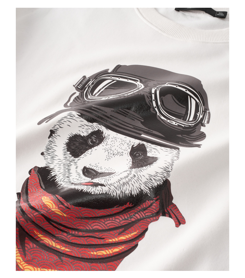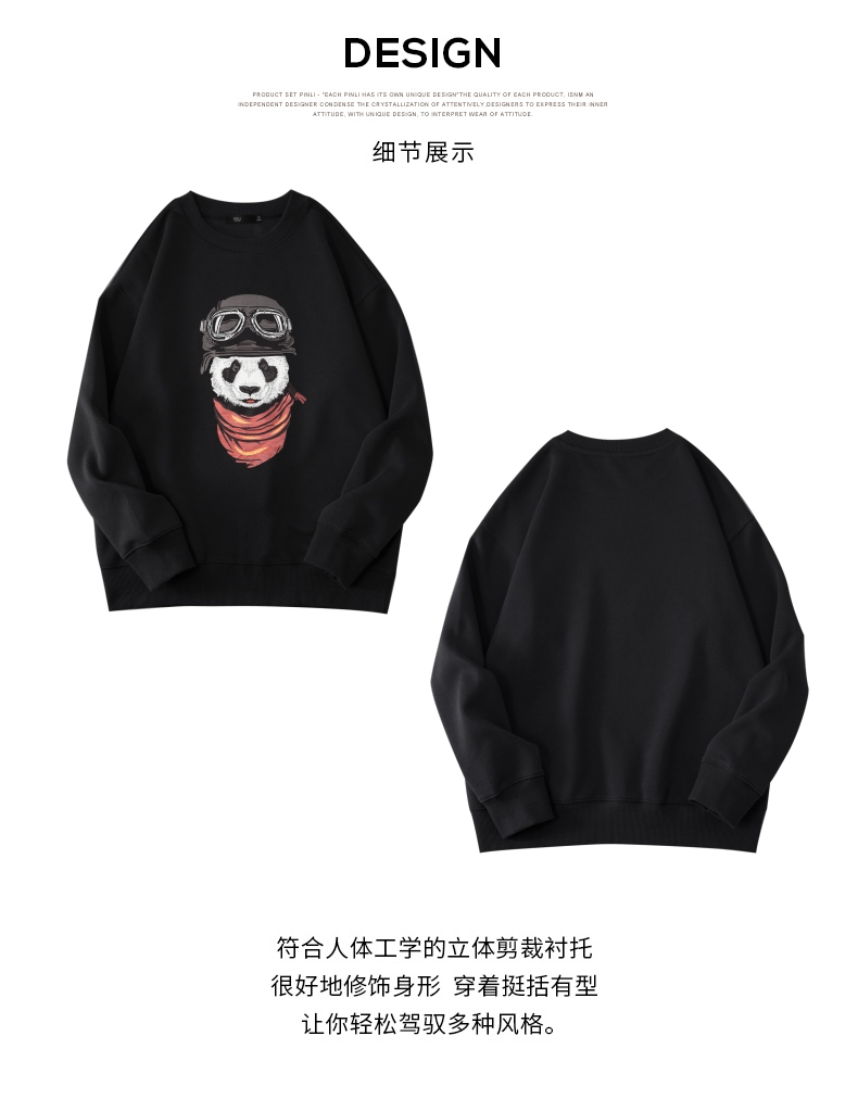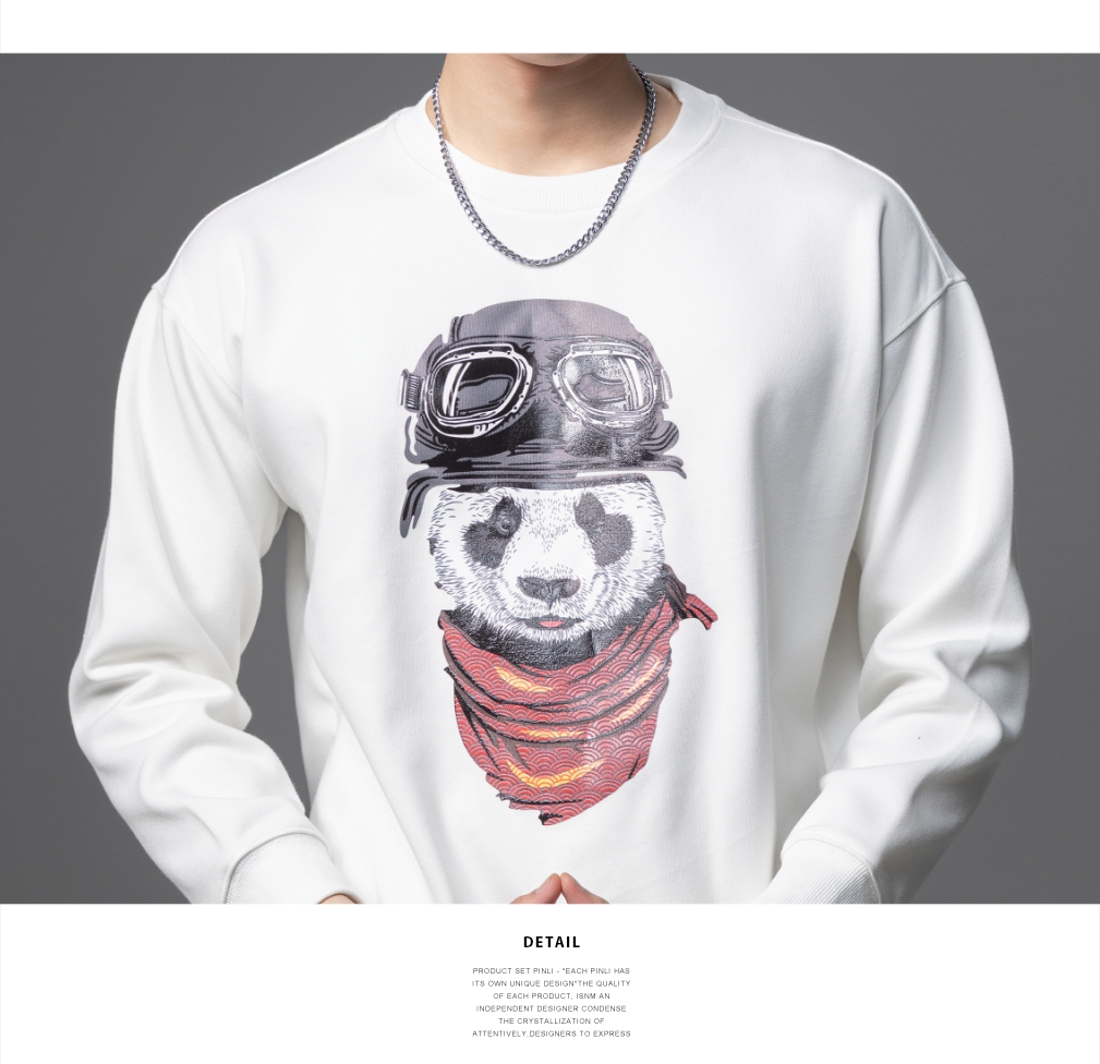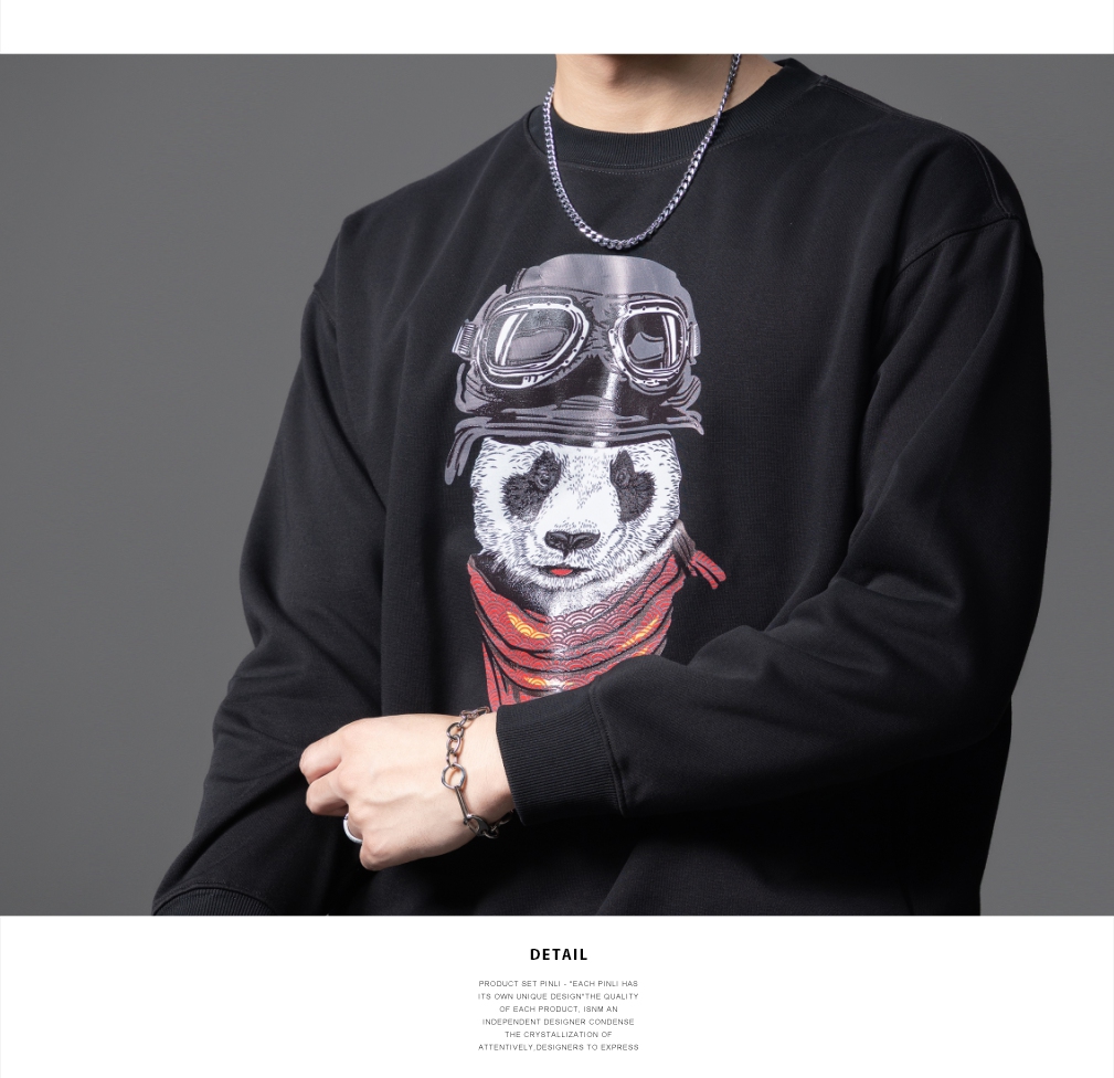 PINLI品立2025秋季新款印花熊猫套头卫衣男士潮牌落肩袖圆领上衣BG253109008