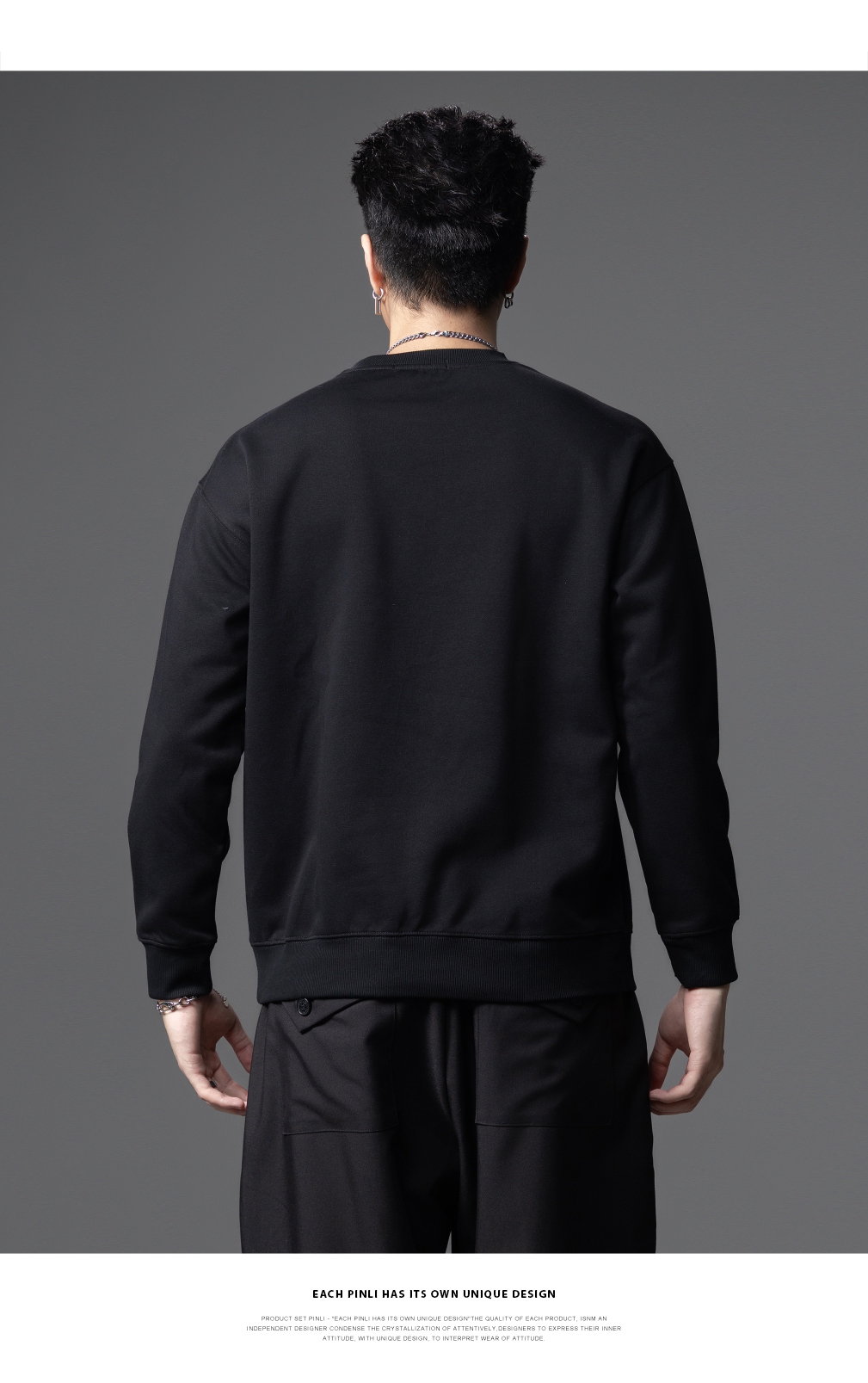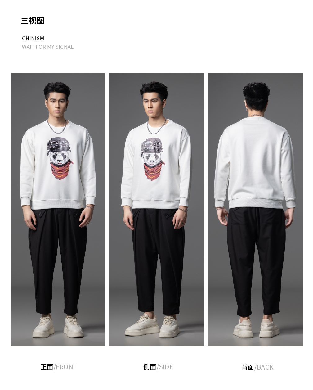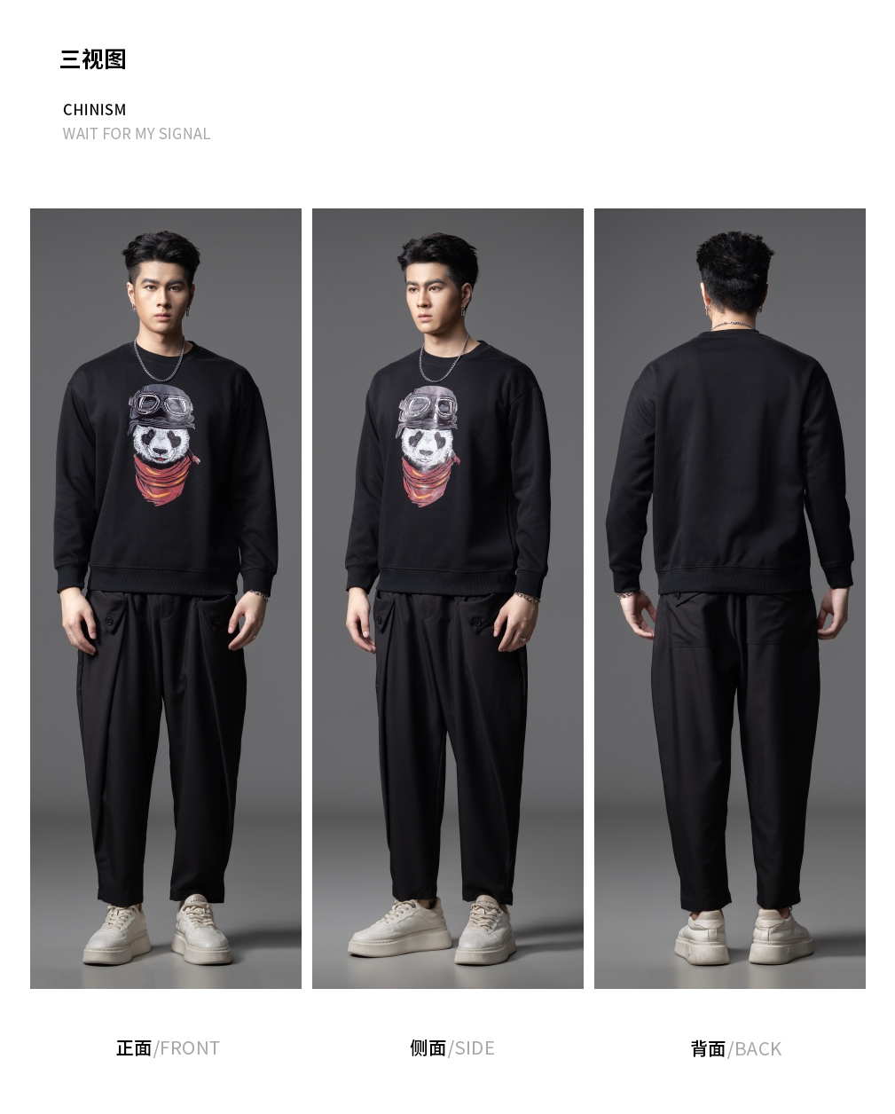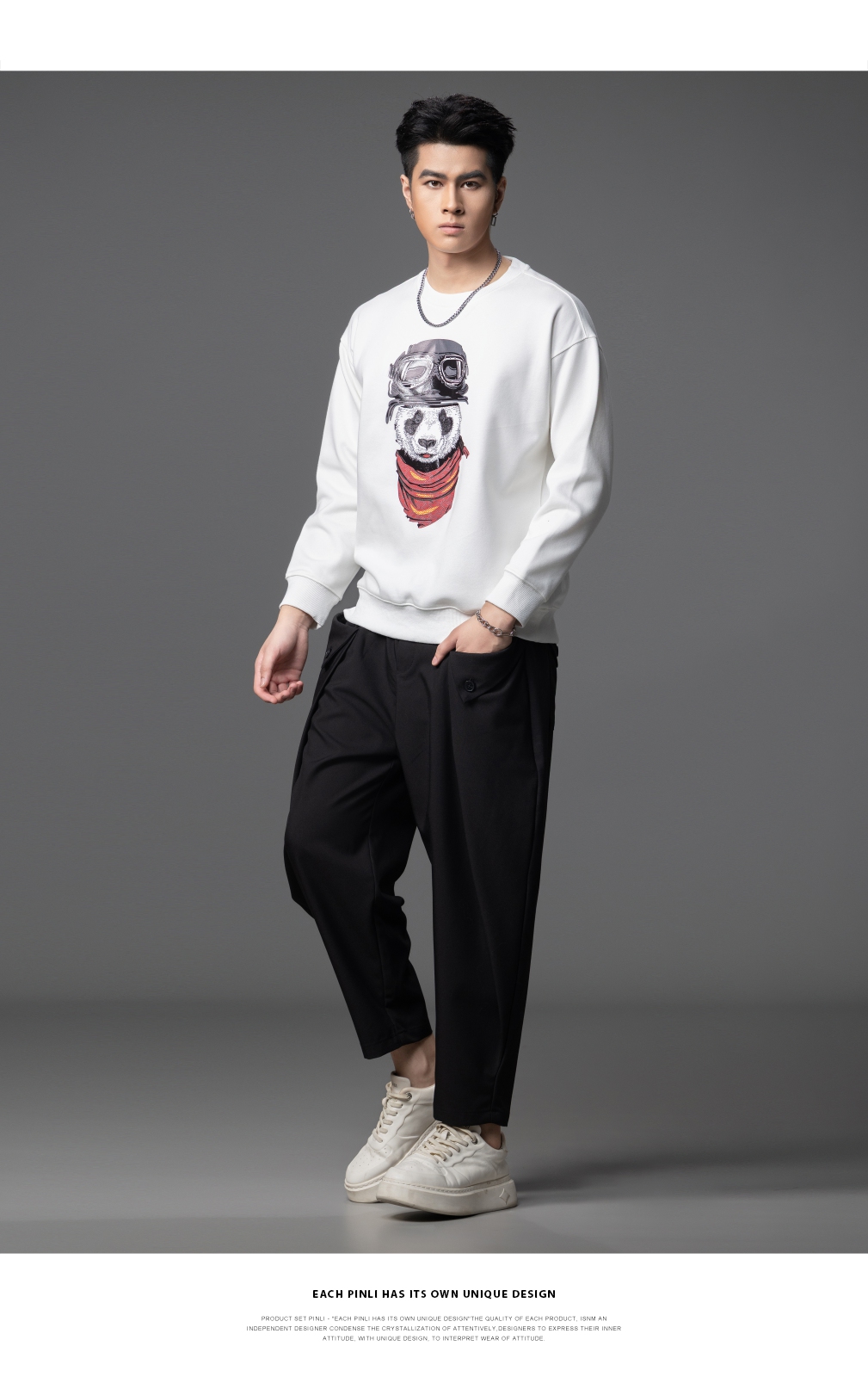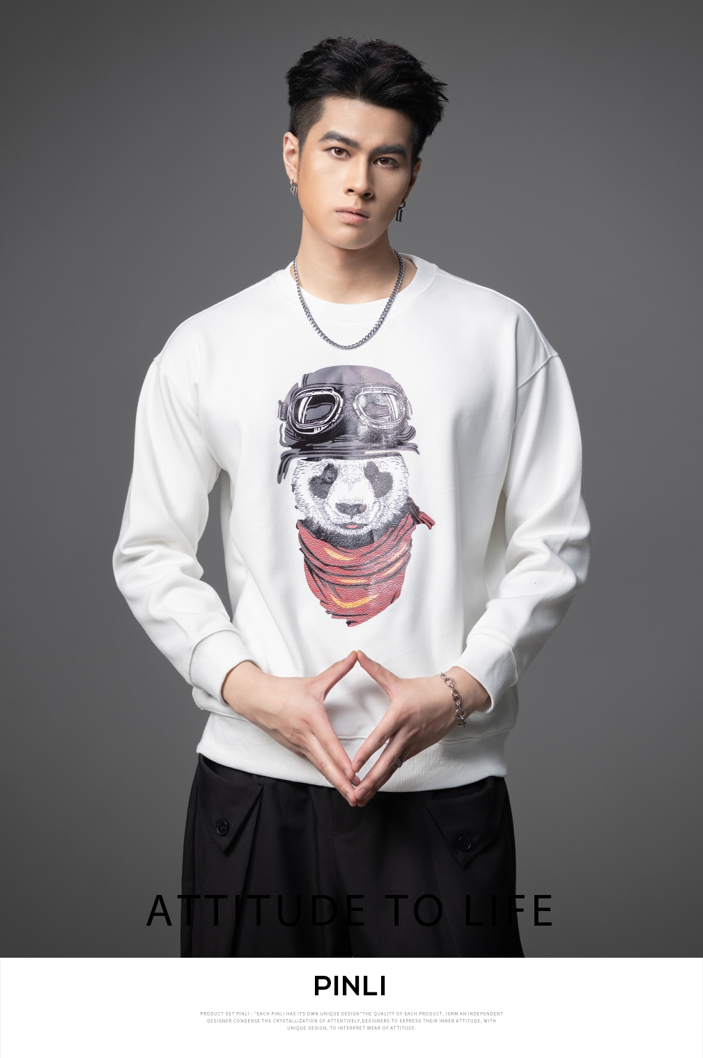 PINLI品立2025秋季新款印花熊猫套头卫衣男士潮牌落肩袖圆领上衣BG253109008