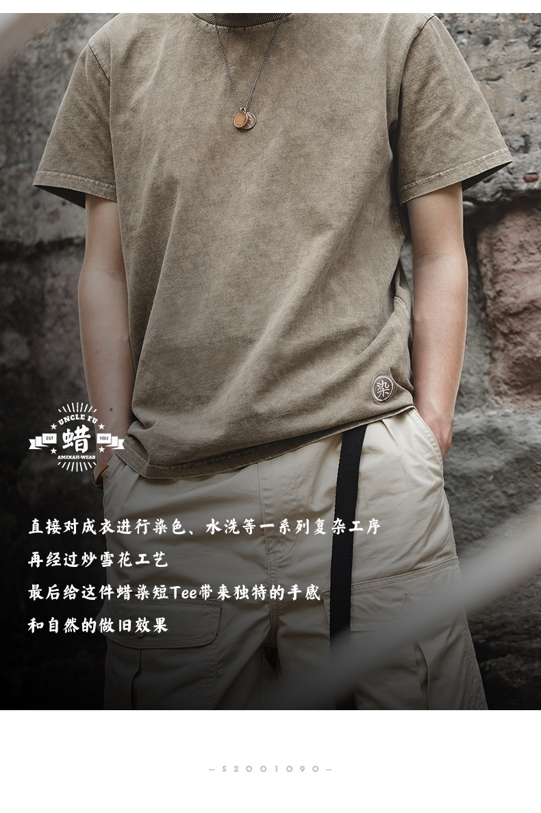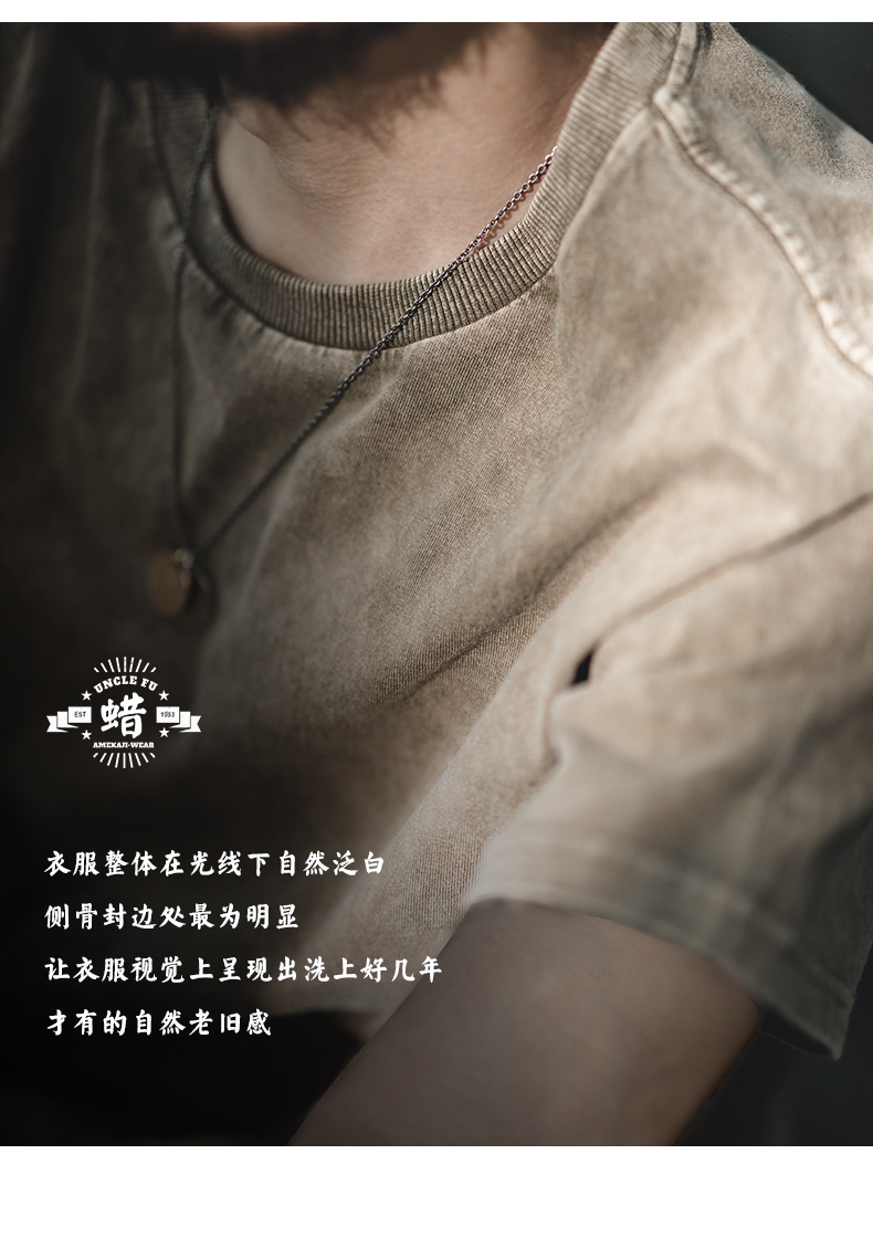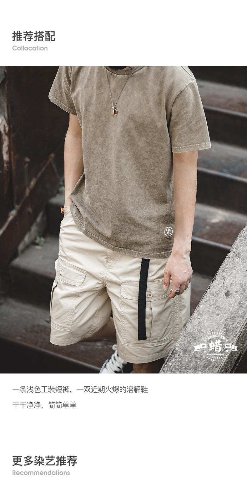 马登工装 日系复古水洗做旧蜡染短Tee阿美咔叽夏季休闲短袖T恤男