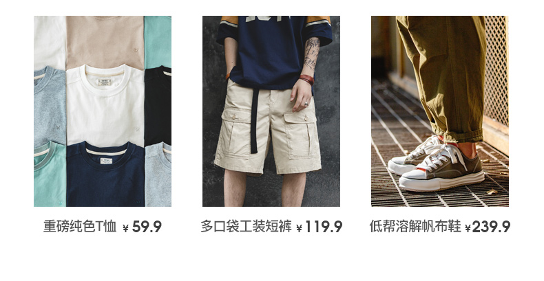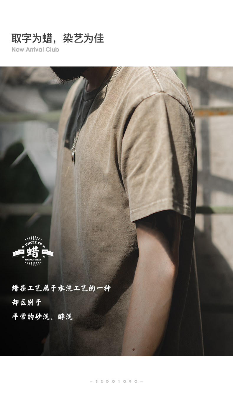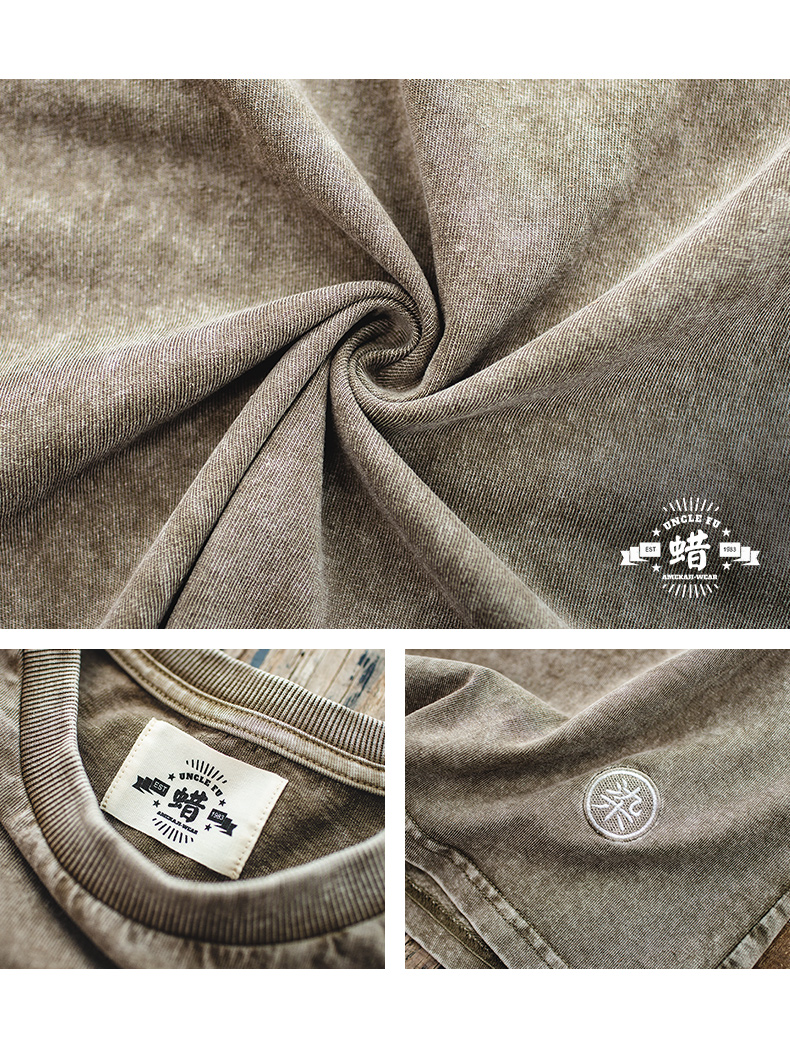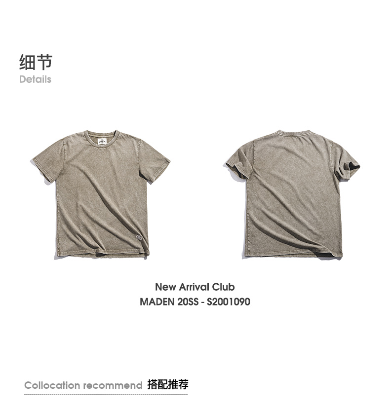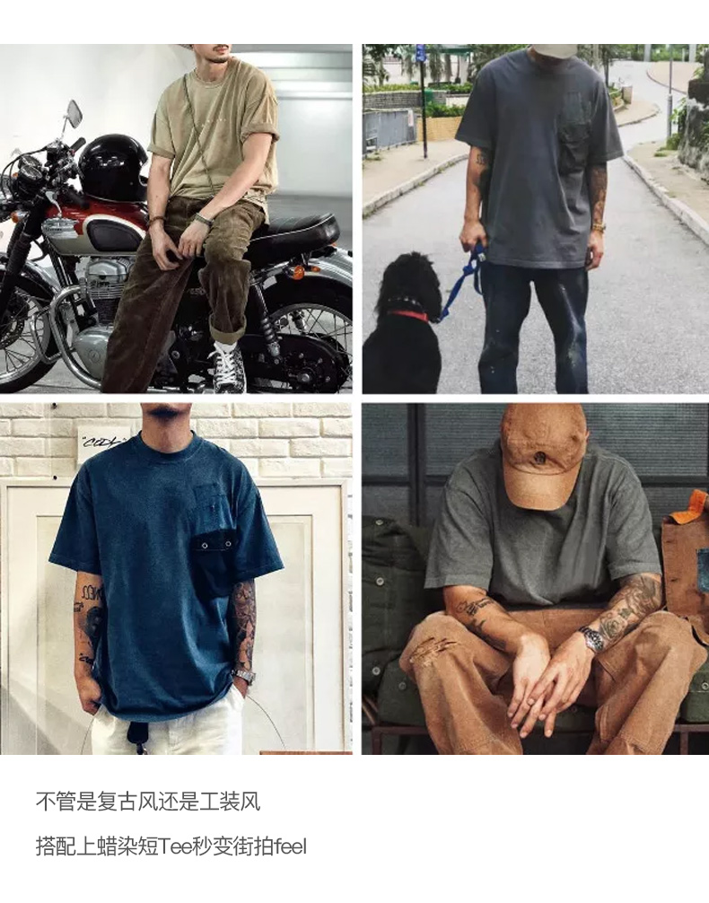马登工装 日系复古水洗做旧蜡染短Tee阿美咔叽夏季休闲短袖T恤男