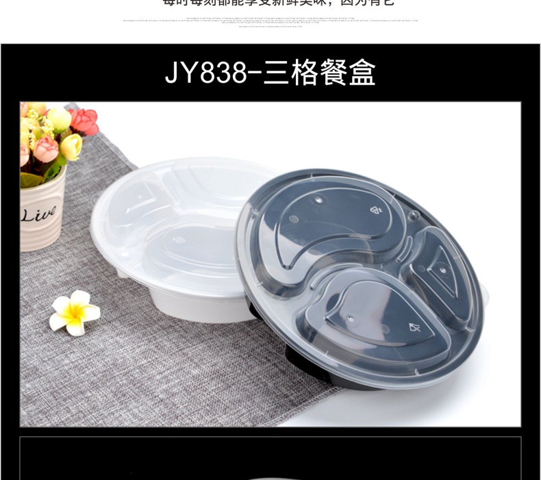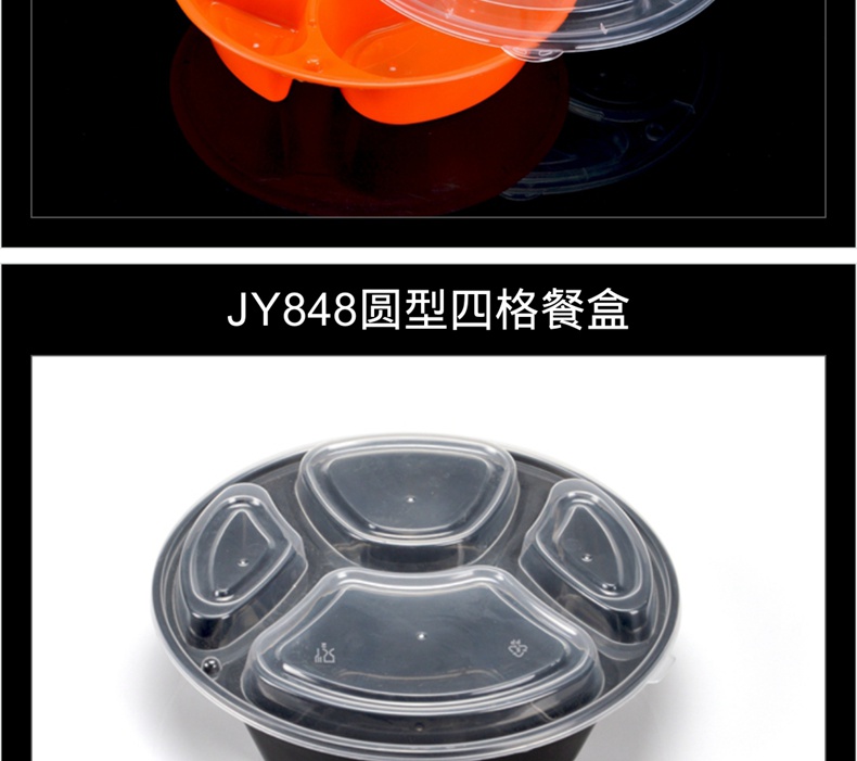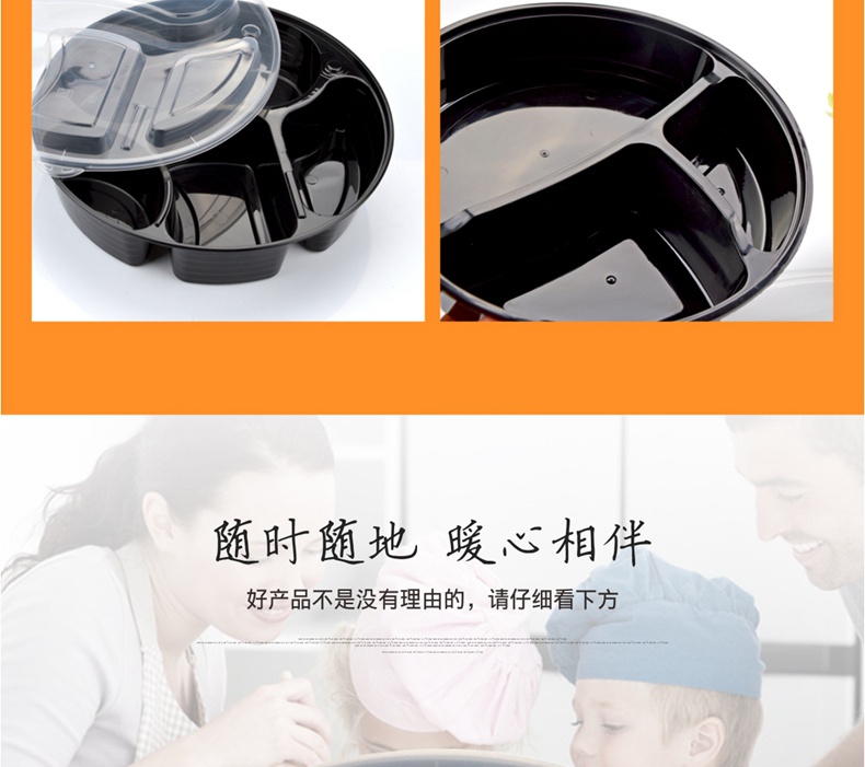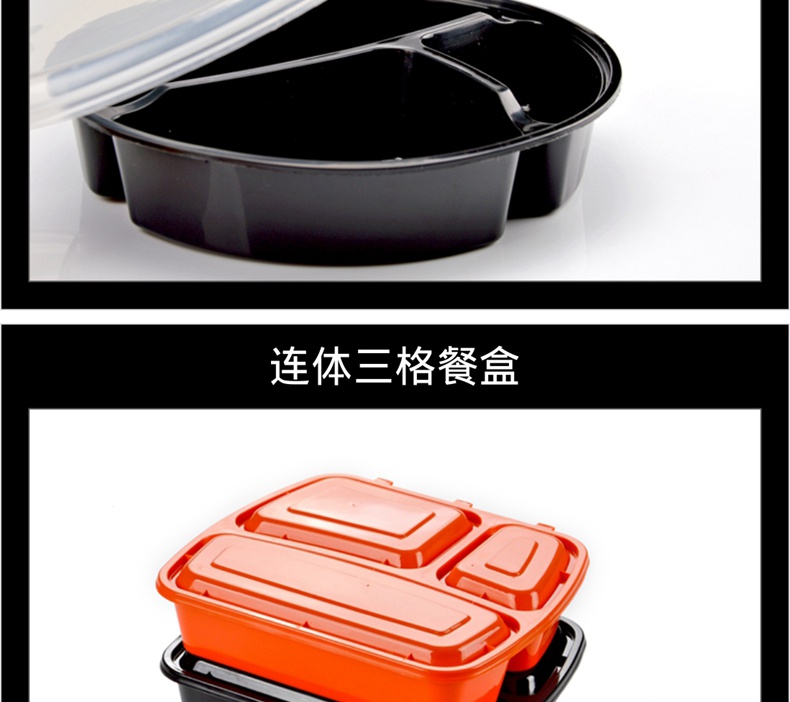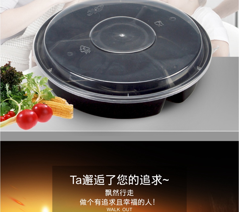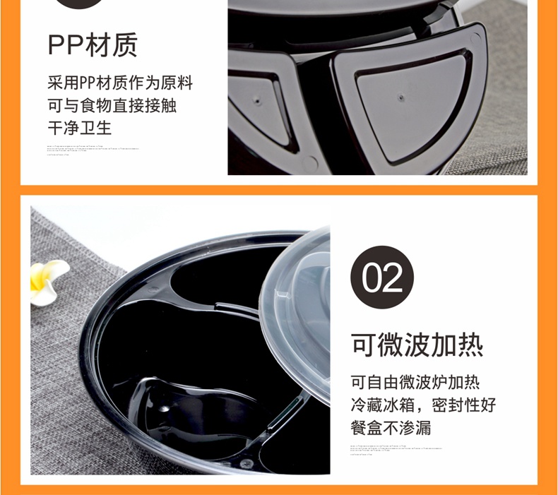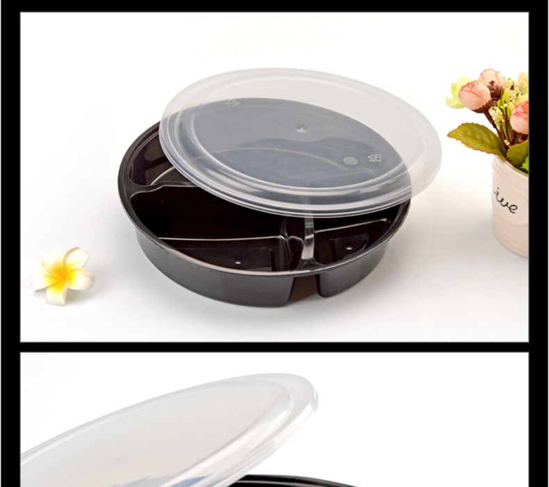 喇叭花一次性餐盒三格四格快餐盒加厚黑色圆形外卖打包盒150套