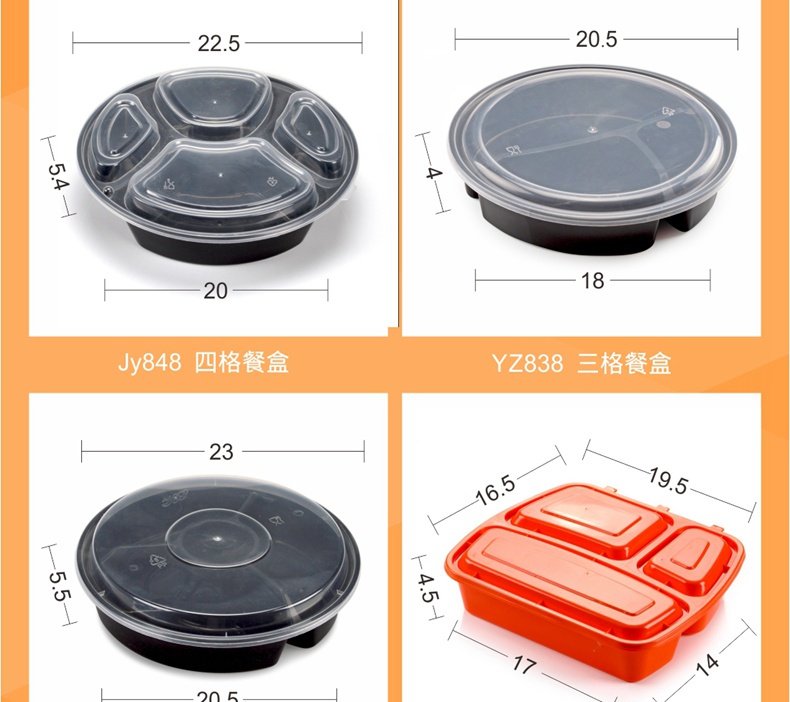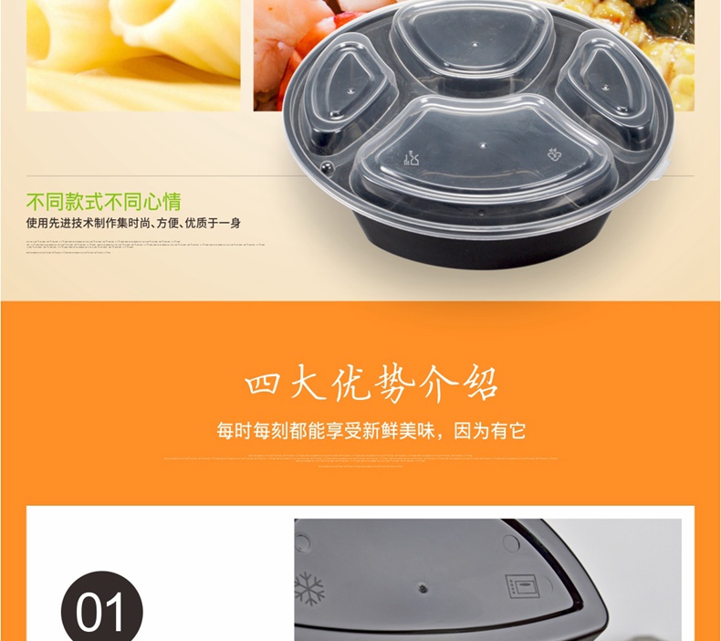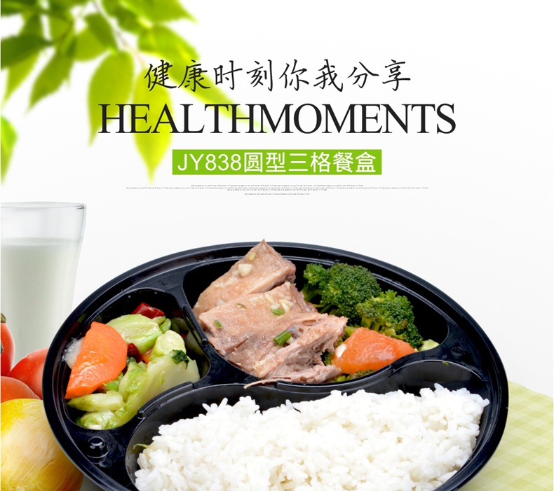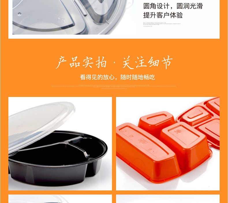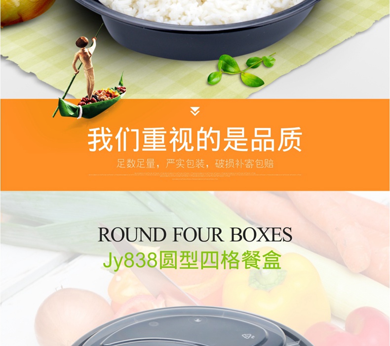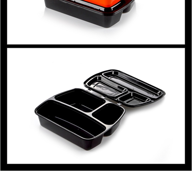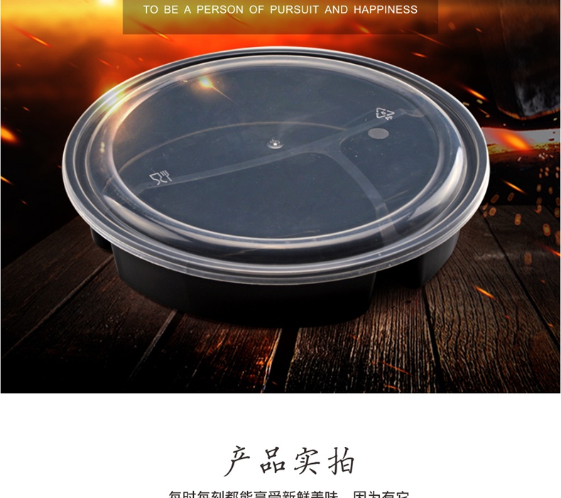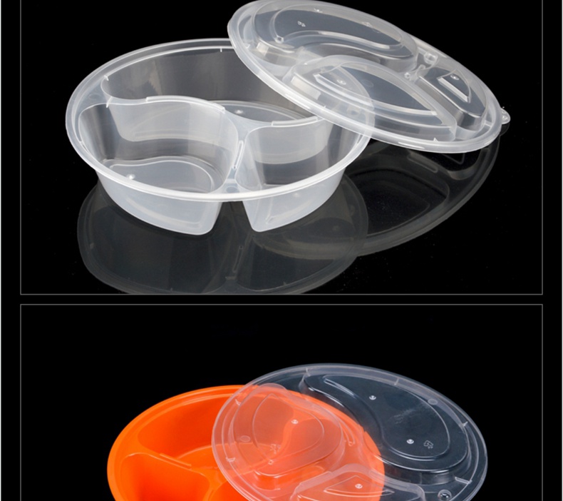 喇叭花一次性餐盒三格四格快餐盒加厚黑色圆形外卖打包盒150套