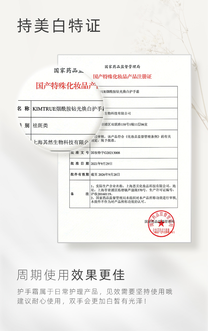 KIMTRUE且初 烟酰胺钻光焕白护手霜 (葡萄味)50g 清爽版 特证版