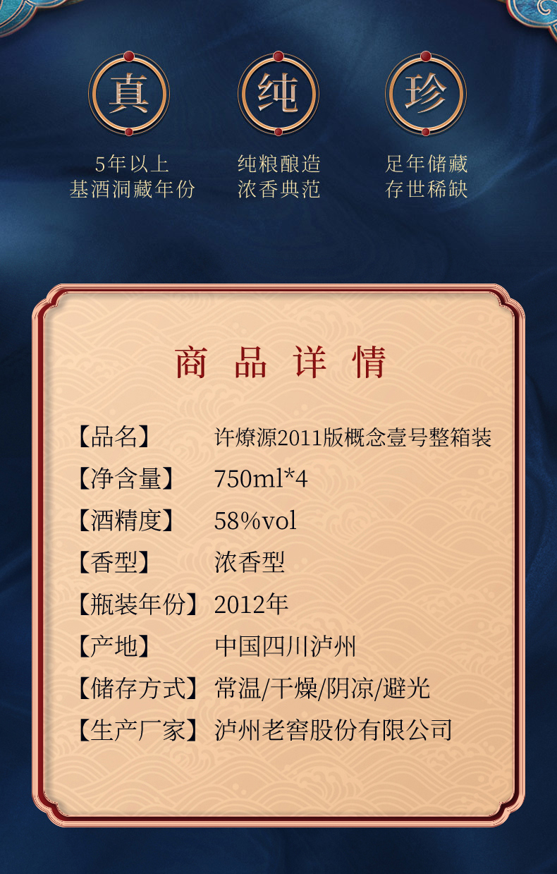 【2012年产】瓶储年份酒 国窖1573 许燎源2011概念壹号58度 750ml*4 泸州老窖官方旗舰店