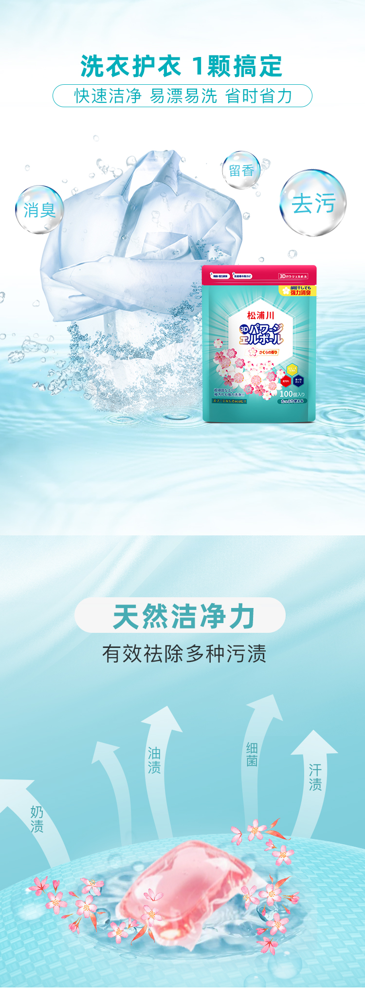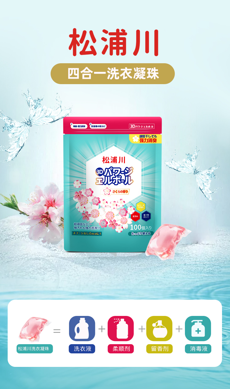 【一般贸易】日本进口松浦川 洗衣凝珠持久留香洗衣液低泡留香洗衣服除螨柔顺 100粒