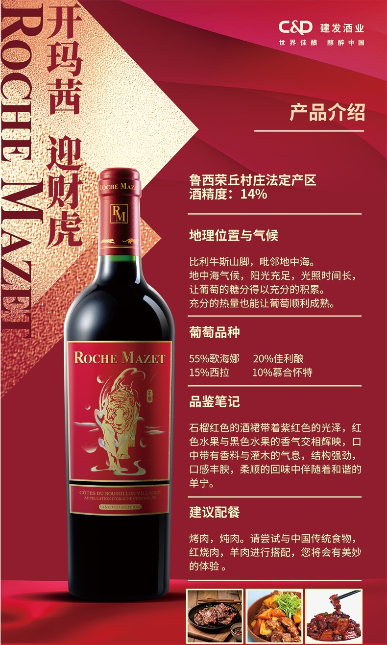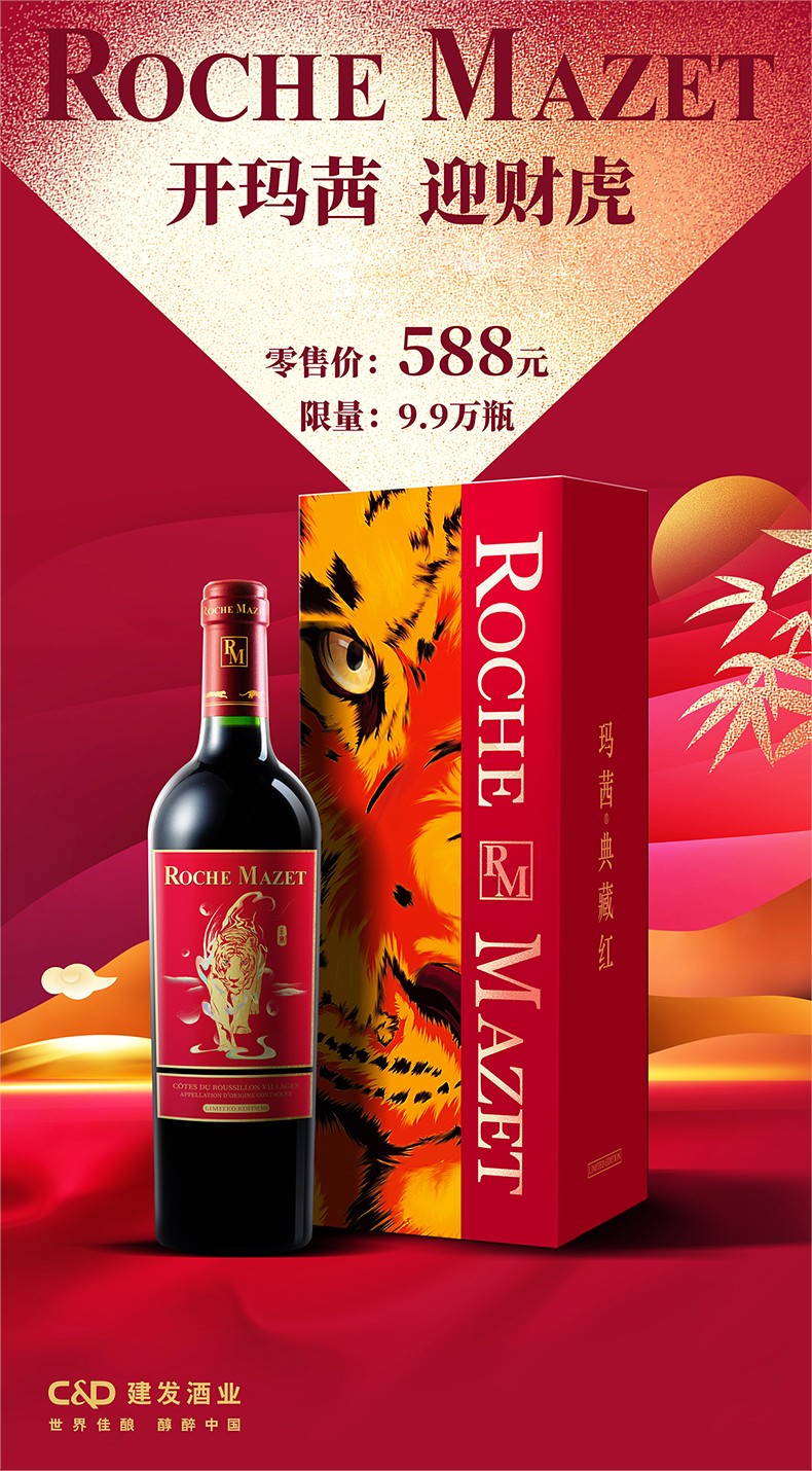 建发酒业 法国原瓶进口红酒 干红玛茜典藏红葡萄酒虎年纪念版14度 750ml 红酒 单支 虎年纪念酒单瓶
