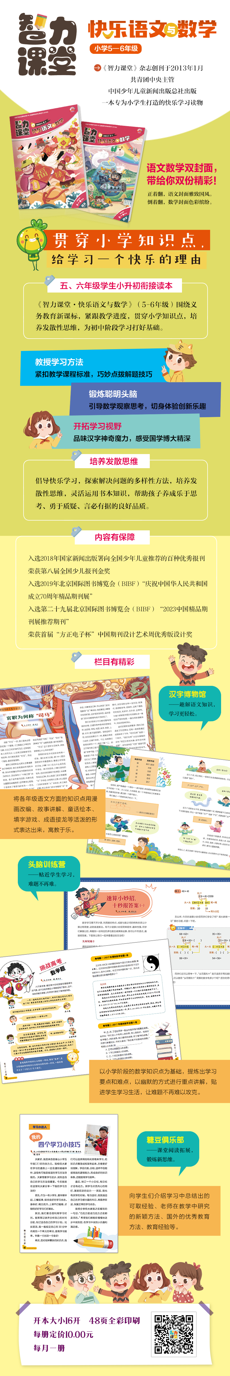 【2025年订阅】助学读物《中国少年英语报》5-6年级 +《智力课堂快乐语文与数学》5-6年级 全年或半年任选