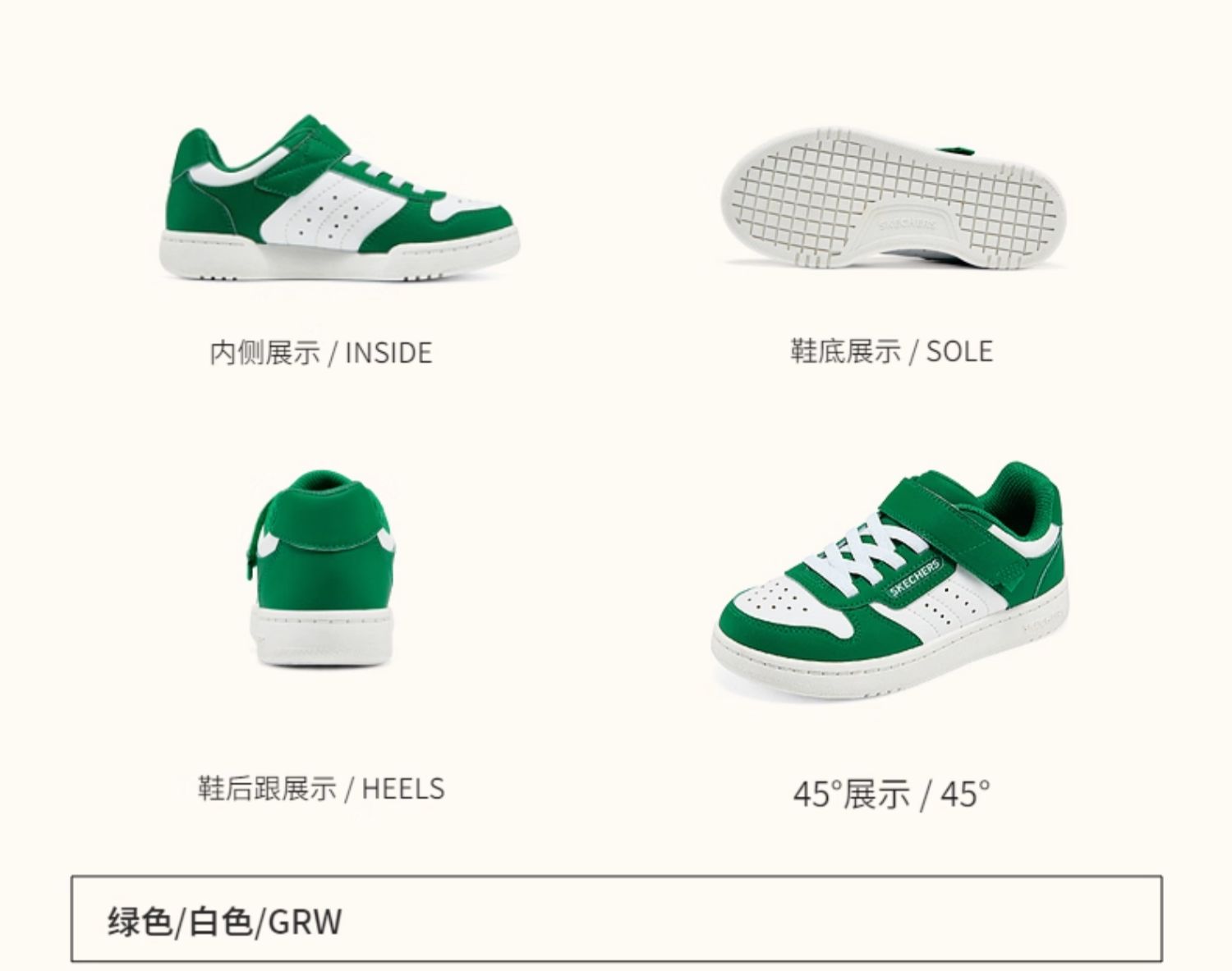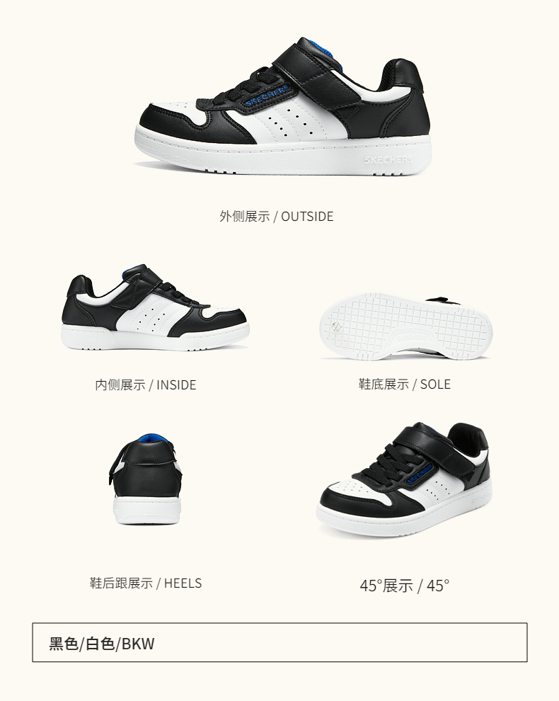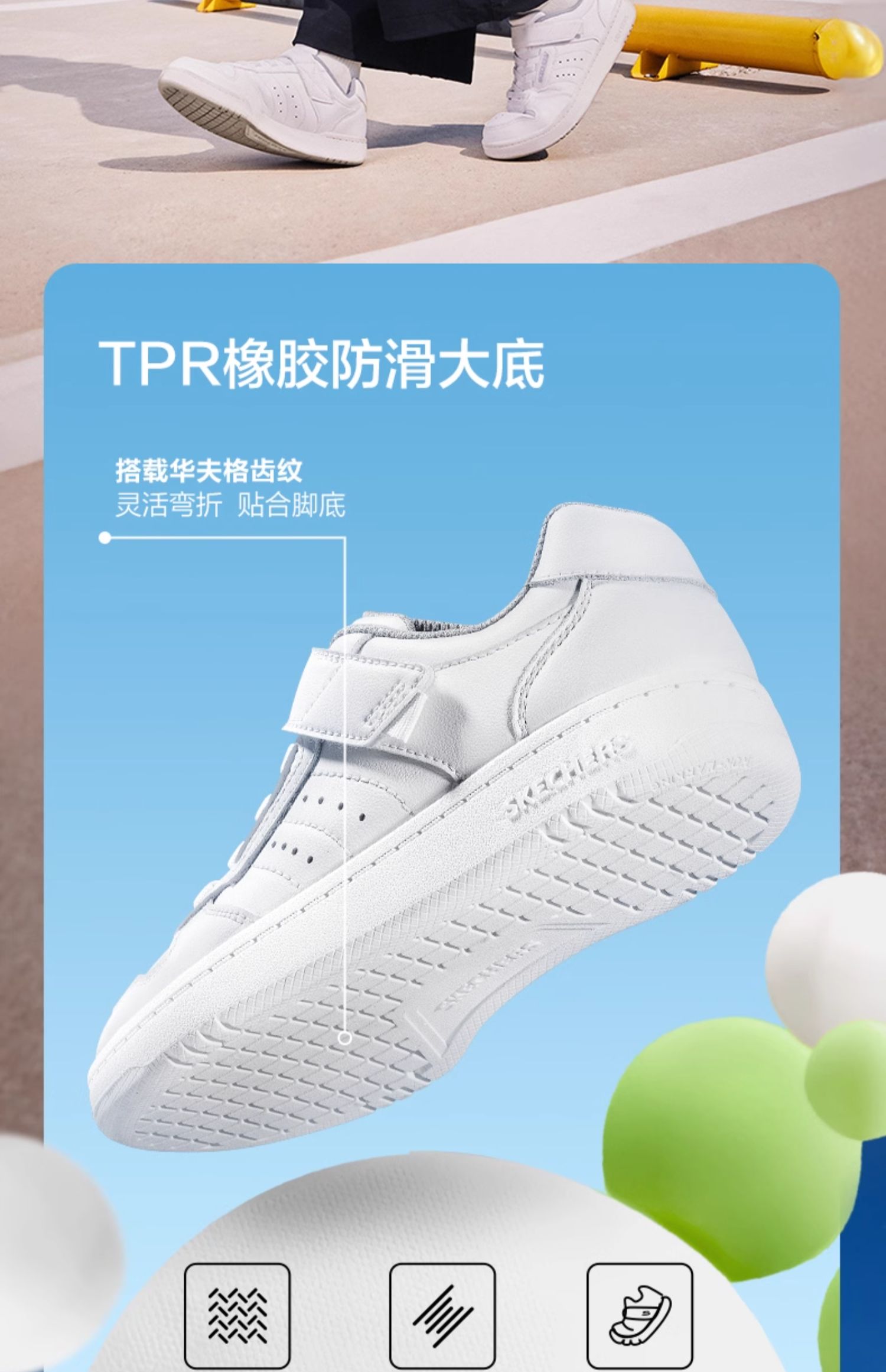 Skechers斯凯奇儿童校园休闲板鞋男女同款秋季运动鞋学生小白鞋405638L