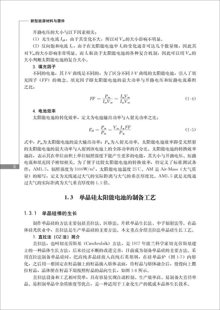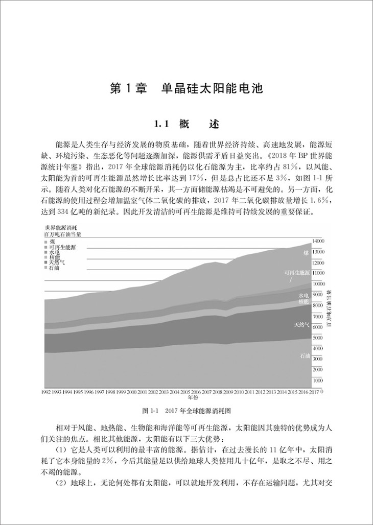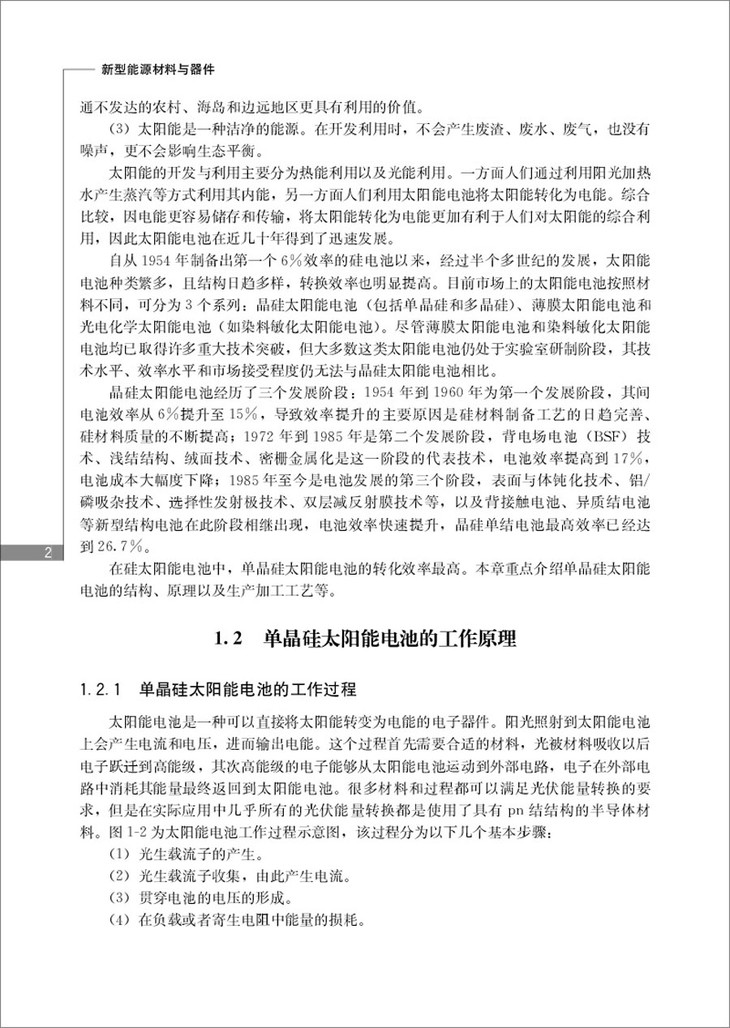 全教材共18章,主要介绍了太阳能电池(包括单晶硅太阳能电池、多晶硅太阳能电池、薄膜太阳能电池、有机太阳能电池、染料敏化太阳能电池、钙钛矿太阳能电池、量子点太阳能电池等)、燃料电池(包括质子交换膜燃料电池、固体氧化物燃料电池、熔融碳酸盐燃料电池、碱性燃料电池、磷酸燃料电池、直接甲醇燃料电池、半导体离子导体燃料电池等)、新型二次电池(包括镍/金属氢化物电池、锂离子电池、锂硫二次电池、金属空气电池等)、超级电容器(包括碳基超级电容器、金属氧化物超级电容器、导电聚合物超级电容器等)等。第1章由河北英利集团宋登元和李锋编写;第2章由石家庄铁道大学王育华和晶龙实业集团有限公司闫广宁编写;第3章由西安建筑科技大学张强和管婧编写;第4章由太原理工大学郝玉英和刘成元编写;第5章由西安建筑科技大学云斯宁编写;第6章由西安交通大学杨冠军和西安石油大学李燕、周勇编写;第7章由新疆大学谢亚红编写;第8章由西安电子科技大学贾斐编写;第9章由中国地质大学(武汉)吴艳编写;第10章由湖北大学王浚英和朱斌编写;第11章由西安建筑科技大学杨春利编写;第12章由四川大学周万海、陈云贵等编写;第13章由深圳大学米宏伟和张培新编写;第14章由西安理工大学李喜飞、熊东彬、郝猷琛、范林林、田自然编写;第15章由深圳大学李永亮和张培新编写;第16章由陕西师范大学雷志斌编写;第17章由陕西师范大学刘宗怀、何学侠、李琪编写;第18章由西安交通大学孙孝飞编写。