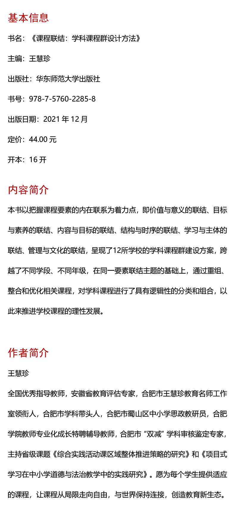 课程联结 学科课程群设计 品质课程聚焦丛书 多学科课程群建设方案 王慧珍